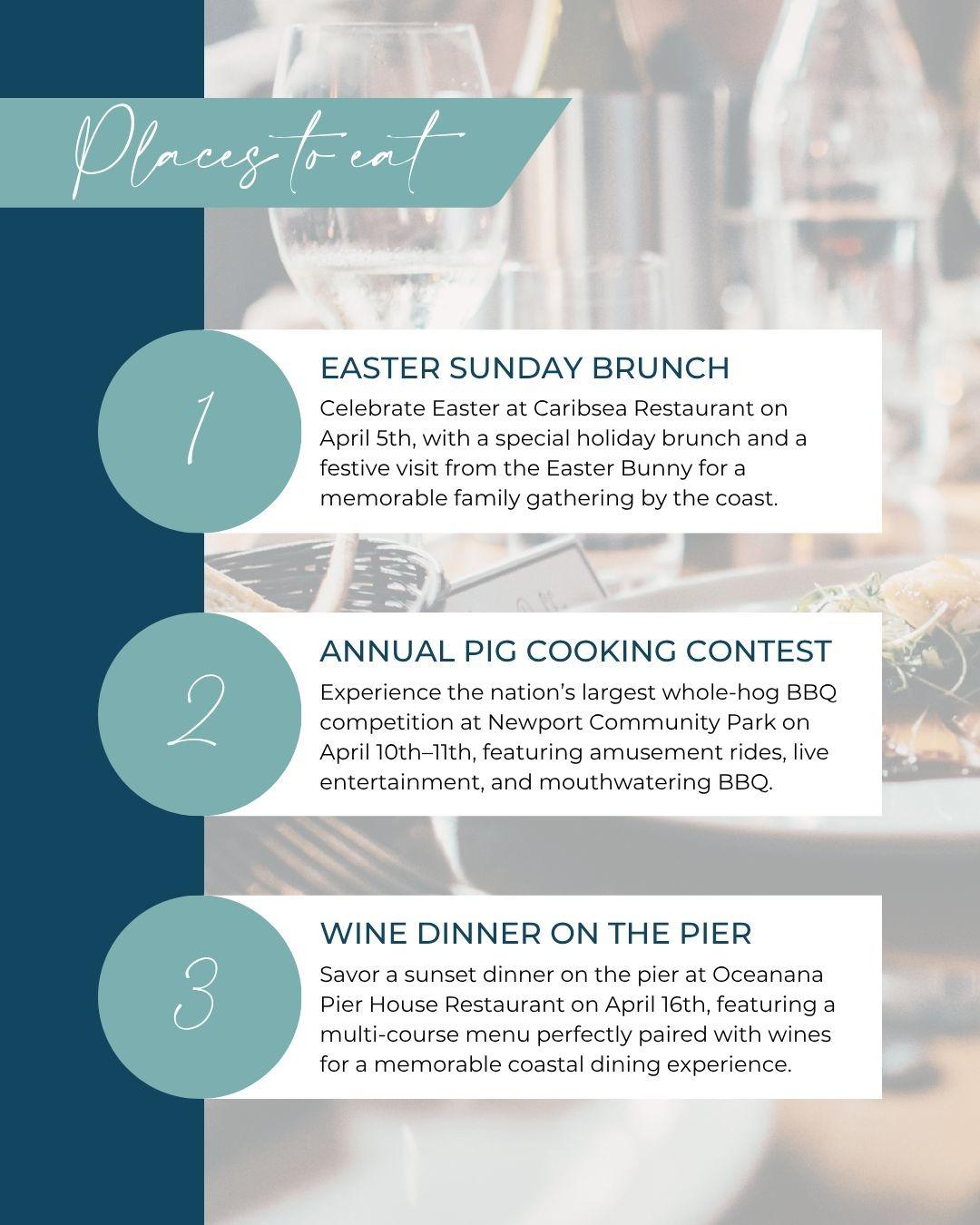 1. Easter Sunday Brunch - Celebrate Easter at Caribsea Restaurant on April 5th, with a special holiday brunch and a festive visit from the Easter Bunny for a memorable family gathering by the coast.
