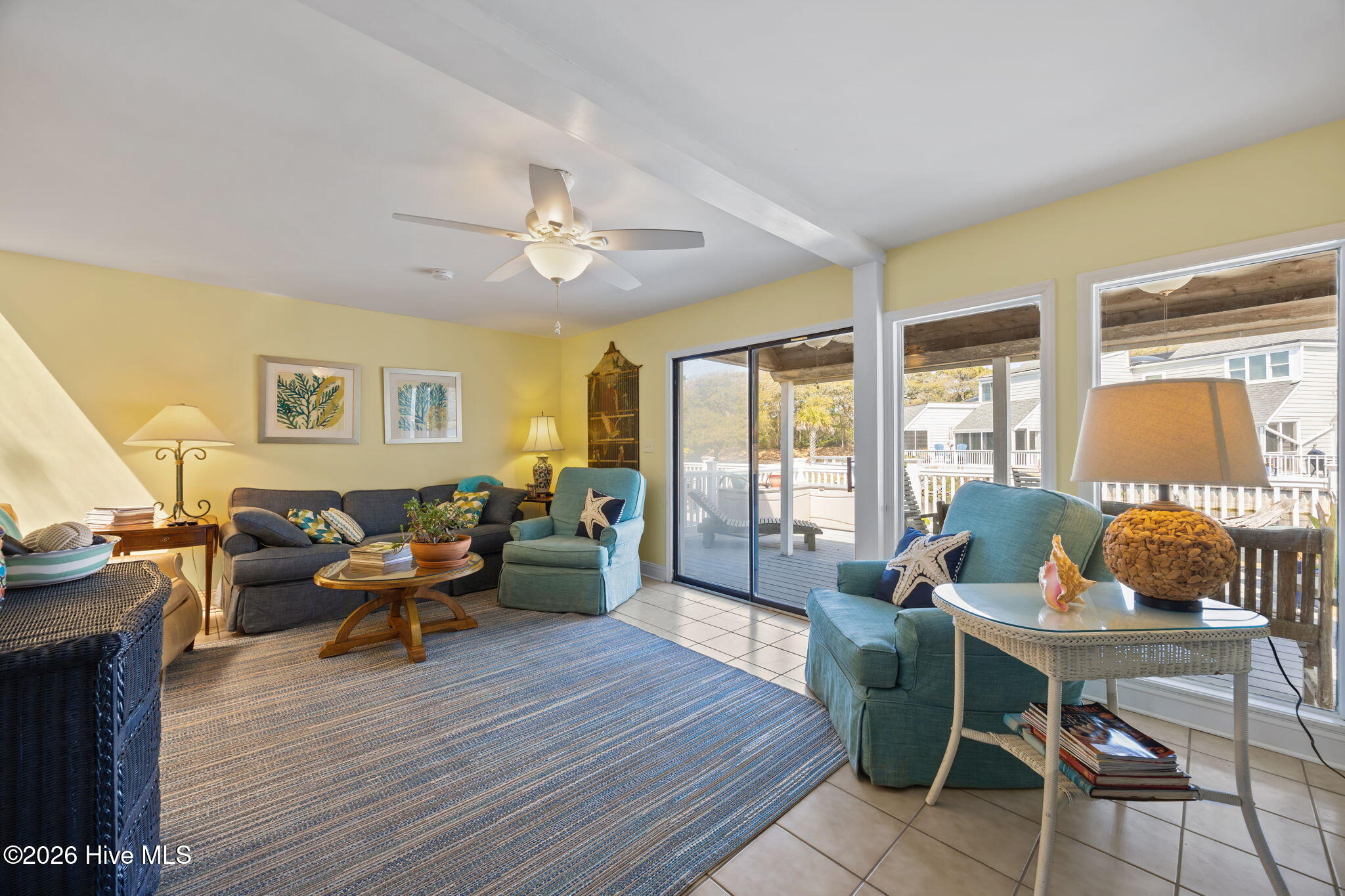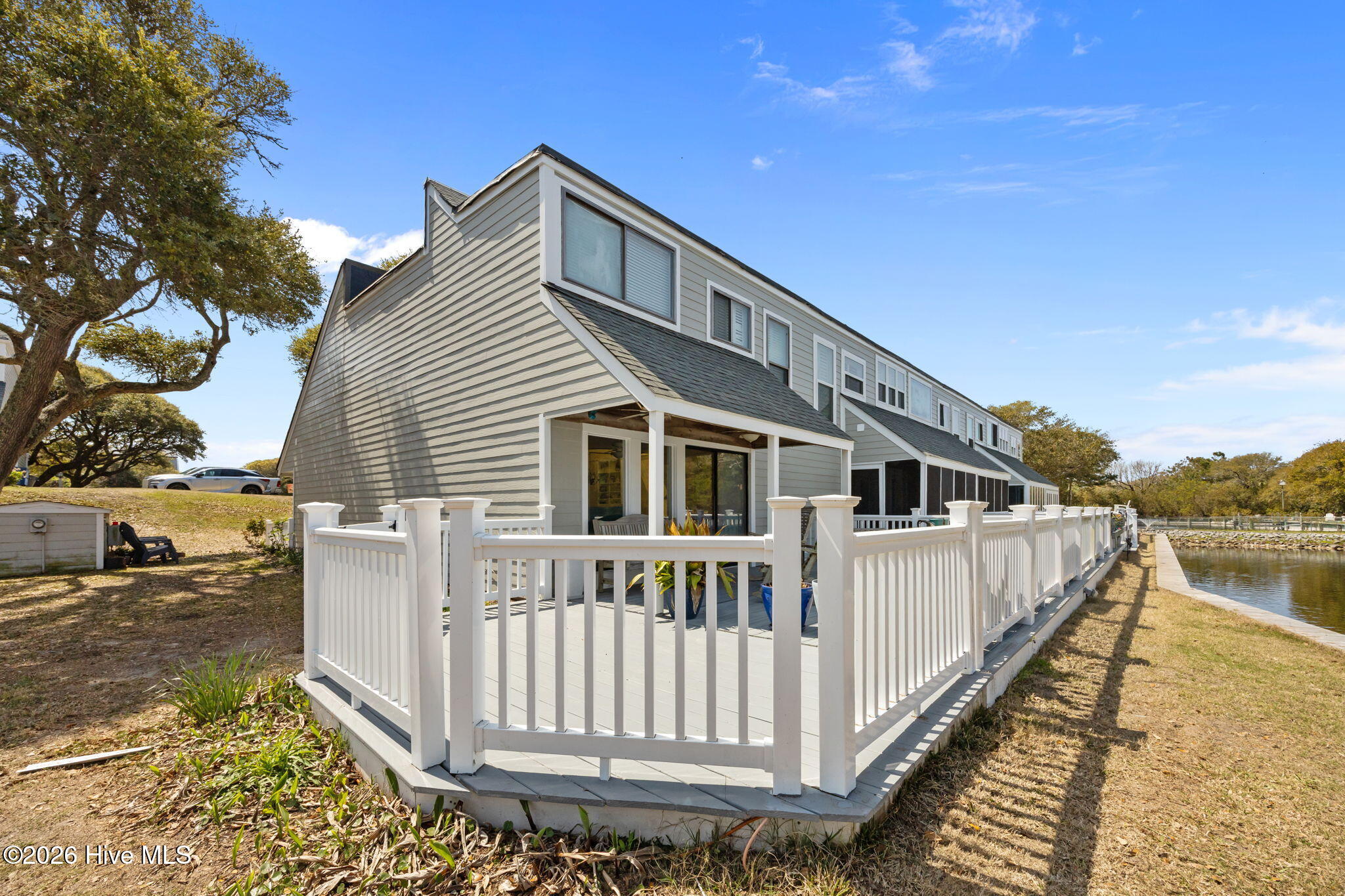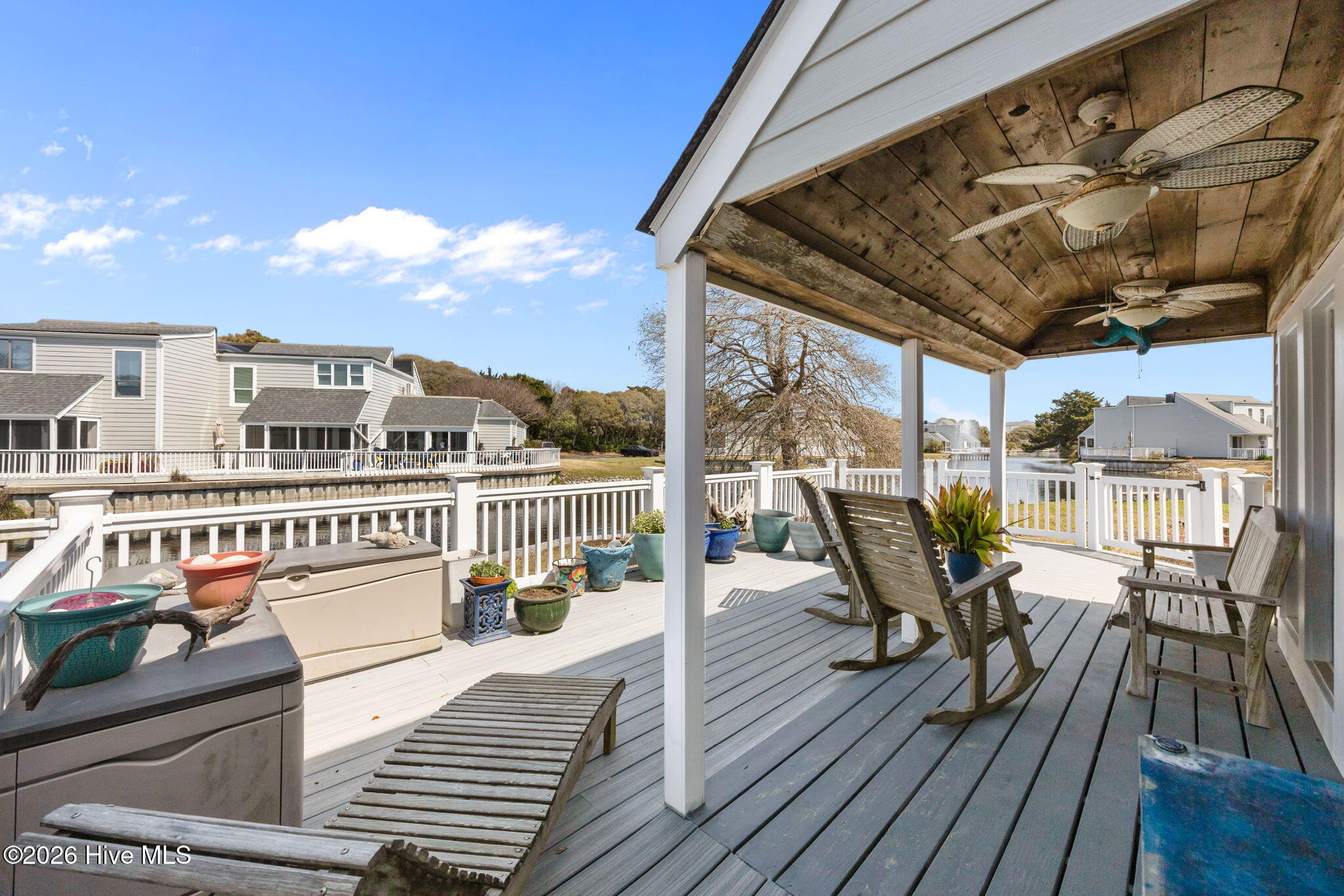 Inside, you'll find 2 spacious bedrooms, 2.5 baths, sleek tile floors throughout, and an abundance of natural light. The open-concept kitchen and living spaces flow seamlessly out to an extra-large deck overlooking a peaceful pond. It's the perfect spot for entertaining friends or enjoying a quiet morning coffee. Out front, a private patio provides even more outdoor living space to soak in the coastal breeze.