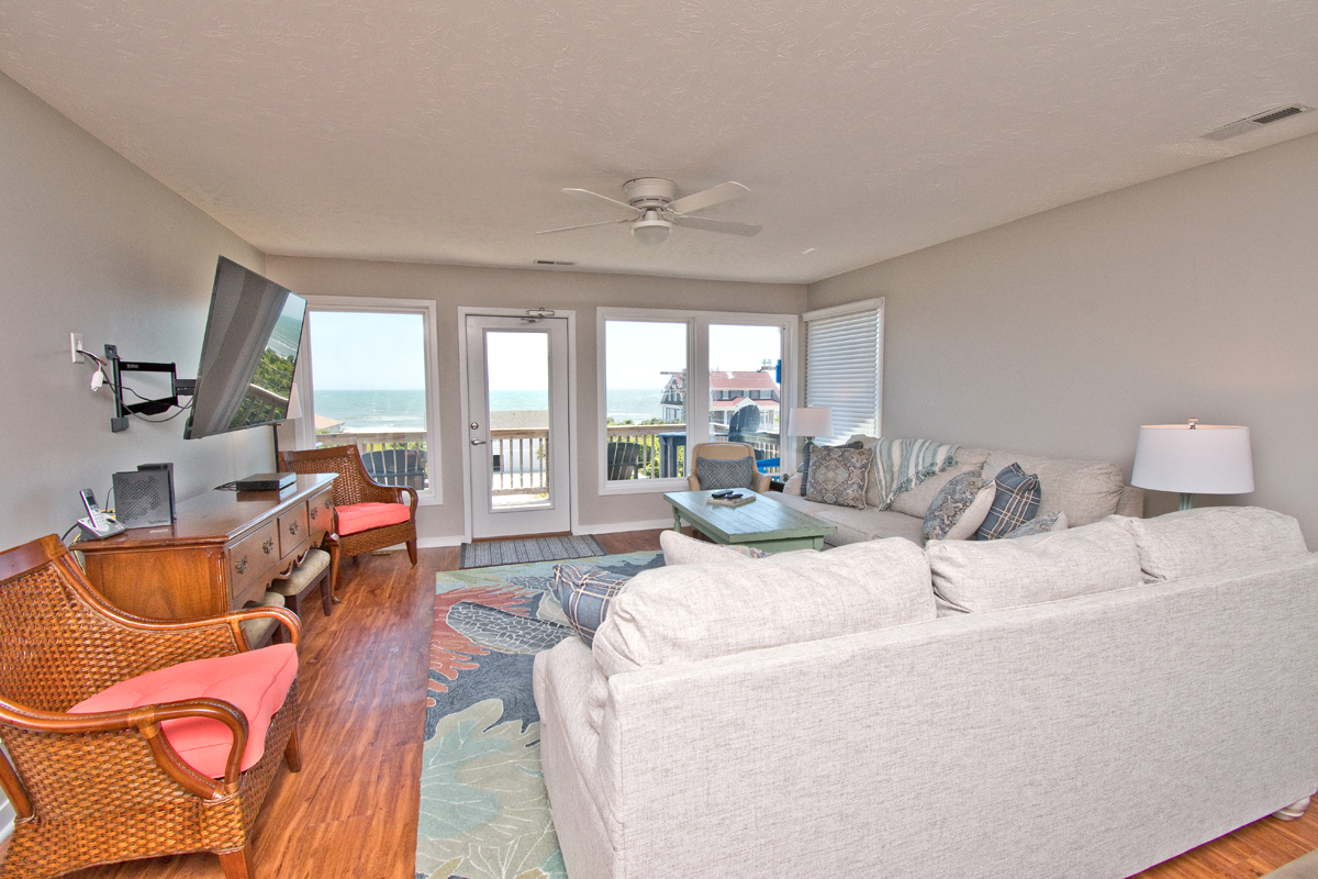 Welcome to 2 Seasters’ Cottage – your beachy home base in Emerald Isle with epic ocean views that's just steps from the sand! This four bedroom, three and a half bathroom almost-oceanfront duplex has all the perks for a laid-back coastal getaway. All the bedrooms, on the middle & upper levels, open up to breezy decks, so everyone gets a slice of that salty sea air. Plus, you're just a short stroll to the beach access across the street, and it's an easy walk to the pier, local shops, and tasty restaurants.