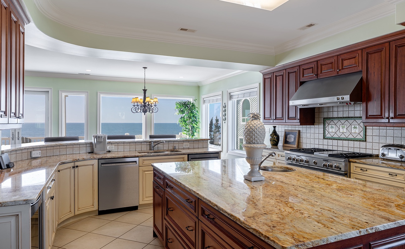 This home has 8-bedrooms (with en-suite bathrooms), and 9 full baths, 1 half-bath, with sweeping panoramic ocean views! Grill seafood or steaks on the grill while still enjoying the weather and view!