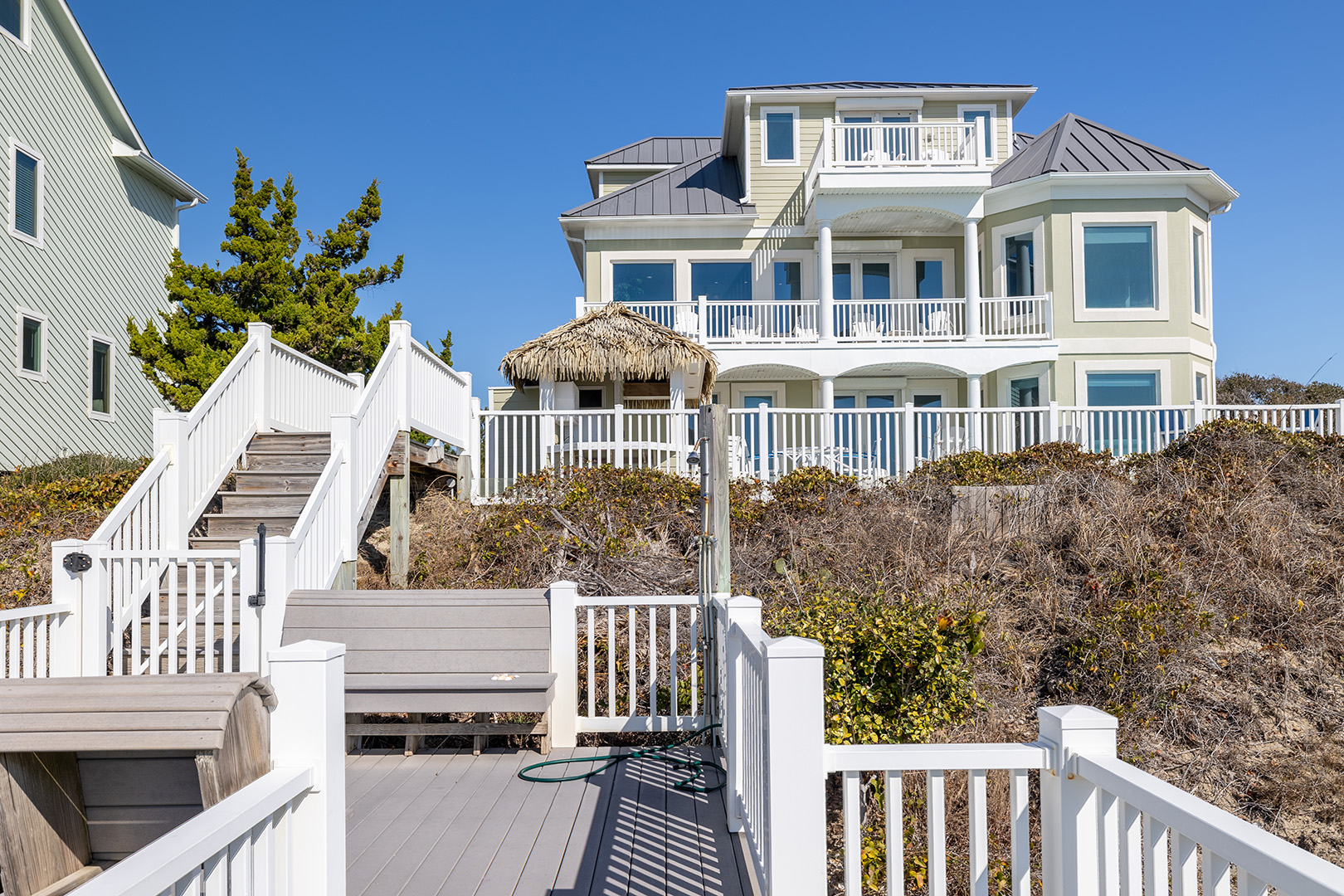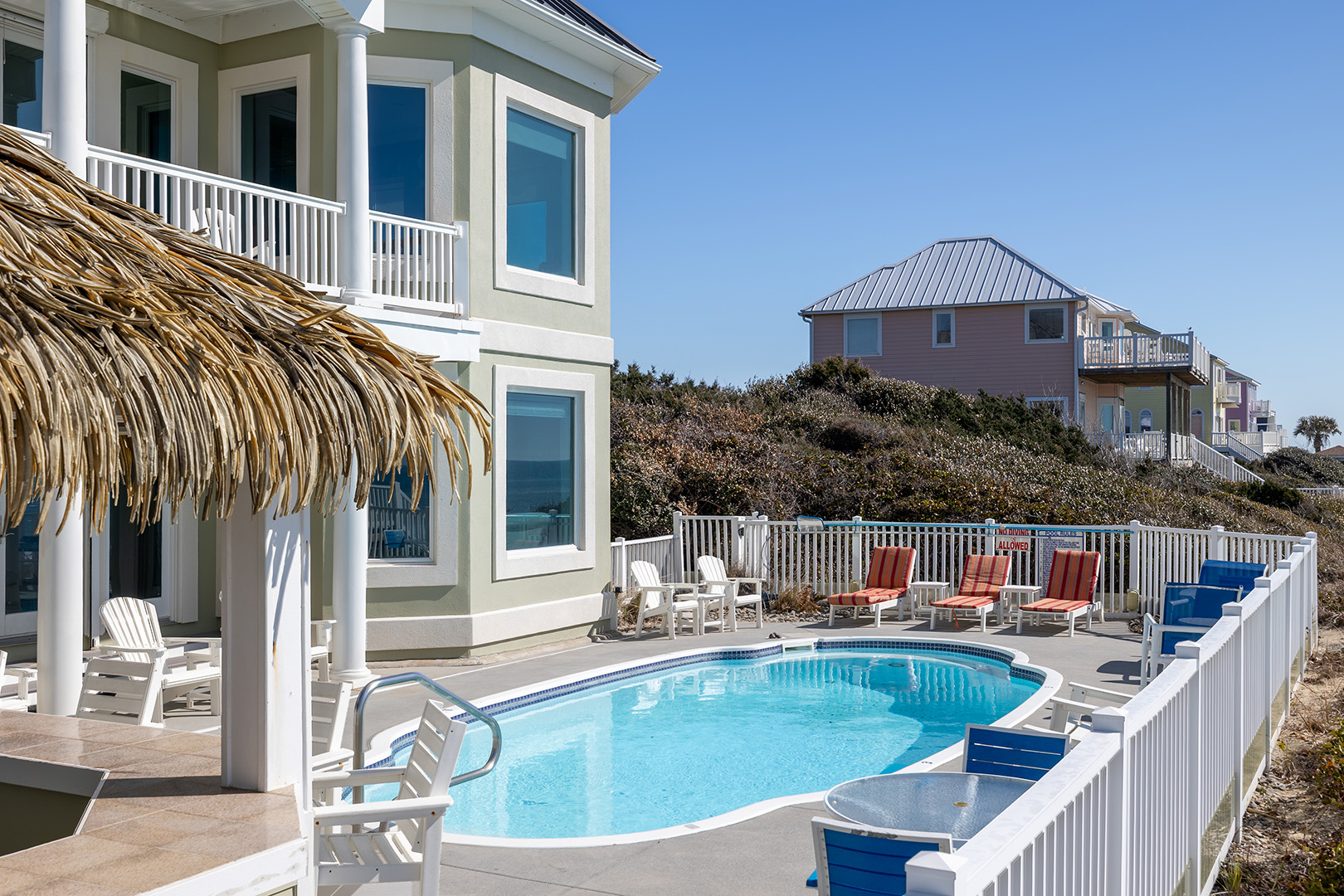 You'll want to stay in Emerald Isle forever after you've stayed in this gorgeous, Oceanfront home. 3 Palms has many fantastic amenities including elevator, pool, hot tub, private beach access and outside showers and a private pool, which can be heated for $650/week + tax!Â