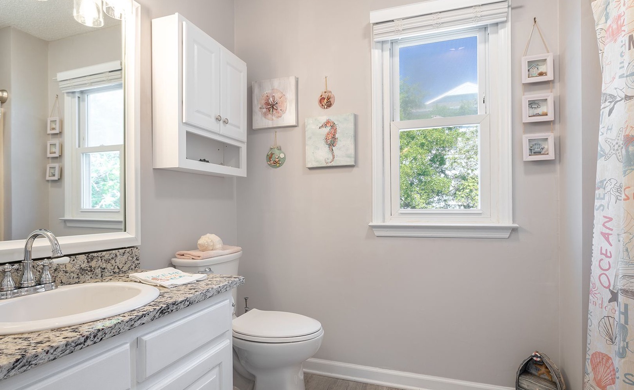 Welcome to A Wizards Wynd! Enjoy beautiful ocean views at this 4 Bedroom, 2 Bath, Oceanview home with private pool, located on a quiet cul-de-sac,1 block from The Point in Emerald Isle! This beautiful home offers a floor-plan with the main living area including living room with games and board games for rainy day activities, dining area and fully equipped kitchen featuring granite countertops and stainless appliances including a Keurig coffee maker, blender, waffle maker and slow cooker. Enjoy the convenience of ceiling fans and hard surface flooring throughout. Downstairs, Bedroom #1 has a King Bed and TV. Upstairs, Bedroom #2 has a King Bed, TV, and private upper deck with serene ocean views and a table and chairs; Bedroom #3 has a Queen Bed and TV; and Bedroom #4 has 2 Twin Beds and TV. A full bathroom is located on each level.
