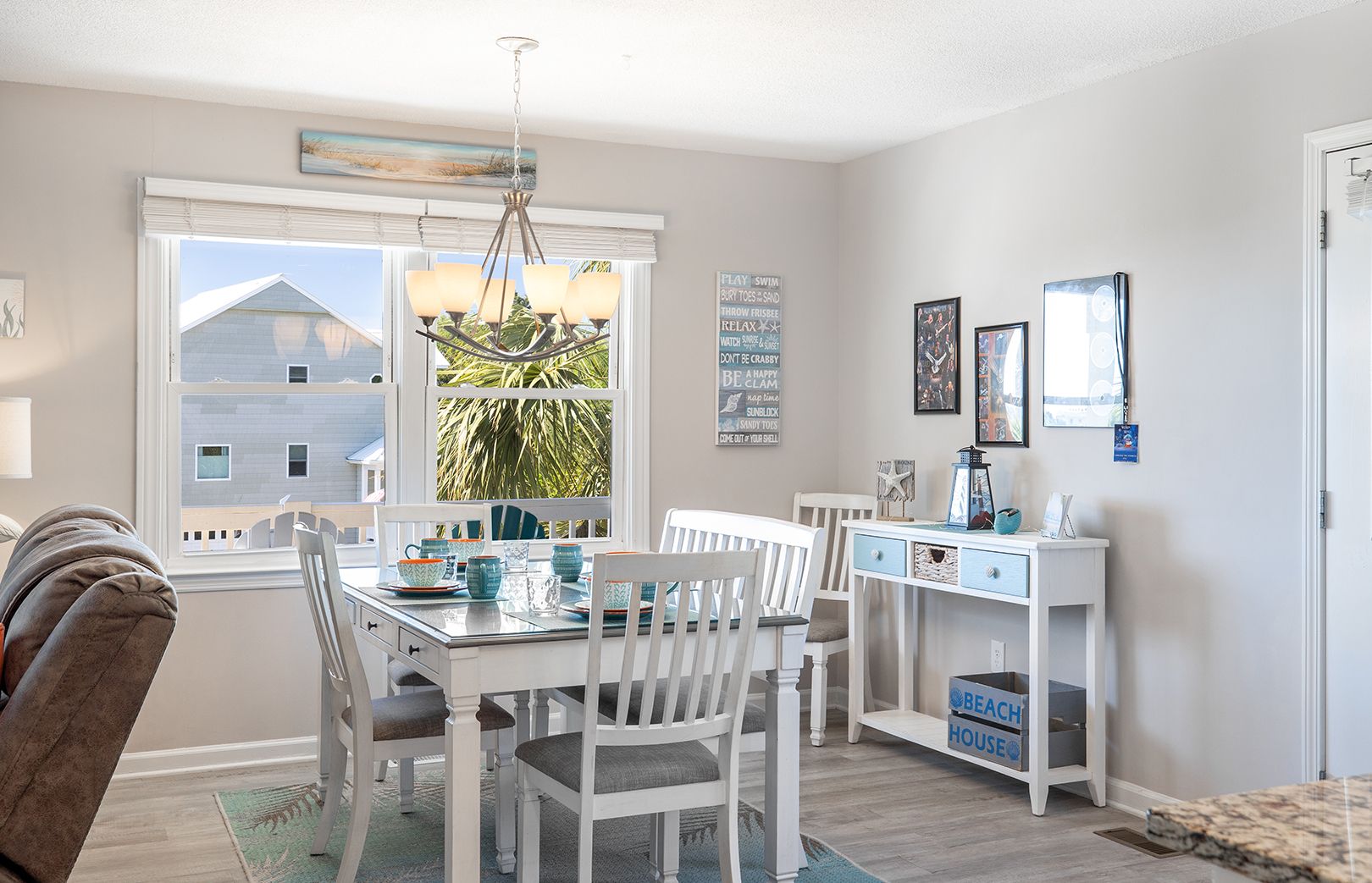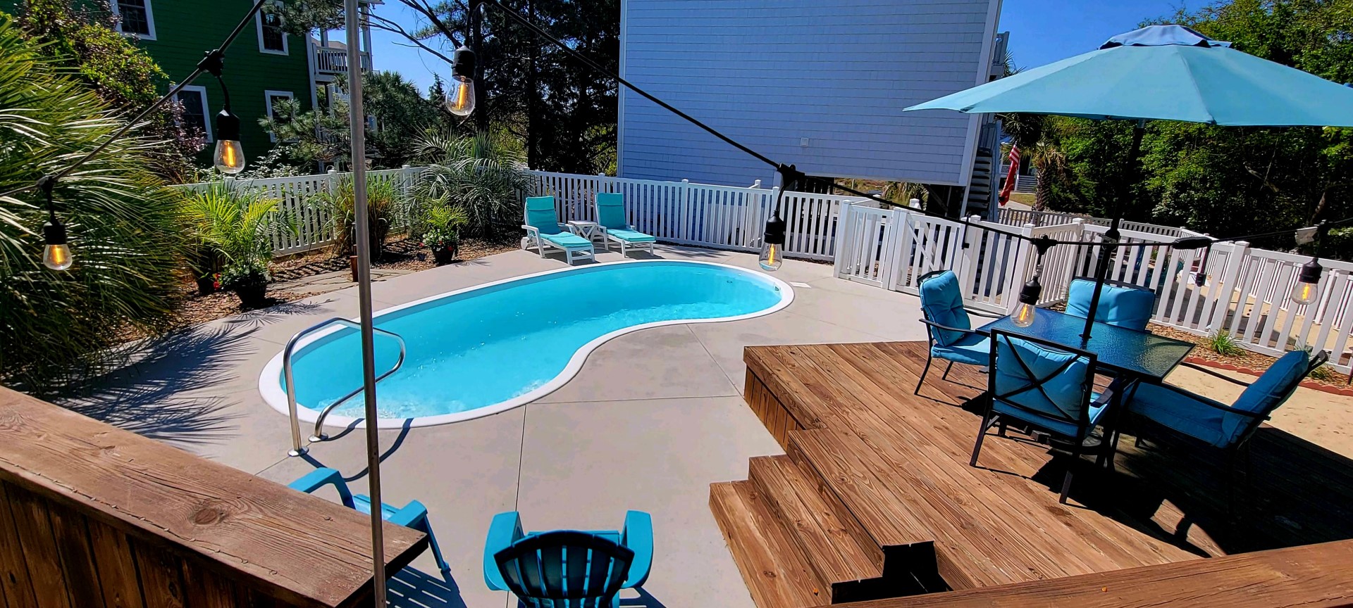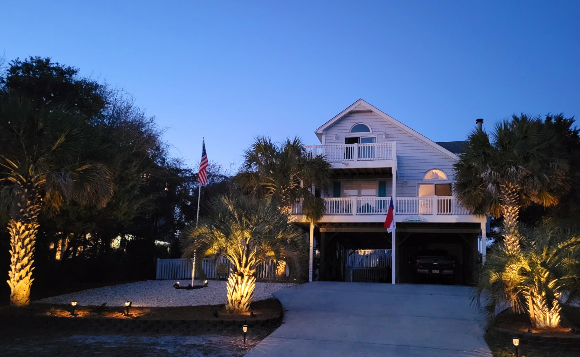 Step out on the spacious walk-around lower covered deck area complete with furniture including Adirondack chairs to enjoy the beautiful palm trees, ocean breeze and sunny seaside locale. Enjoy the side yard patio, Adirondack chairs, Propane Fire Pit table, and Yard games including Corn Hole, Yard Yahtzee, and Ladder Golf provided.