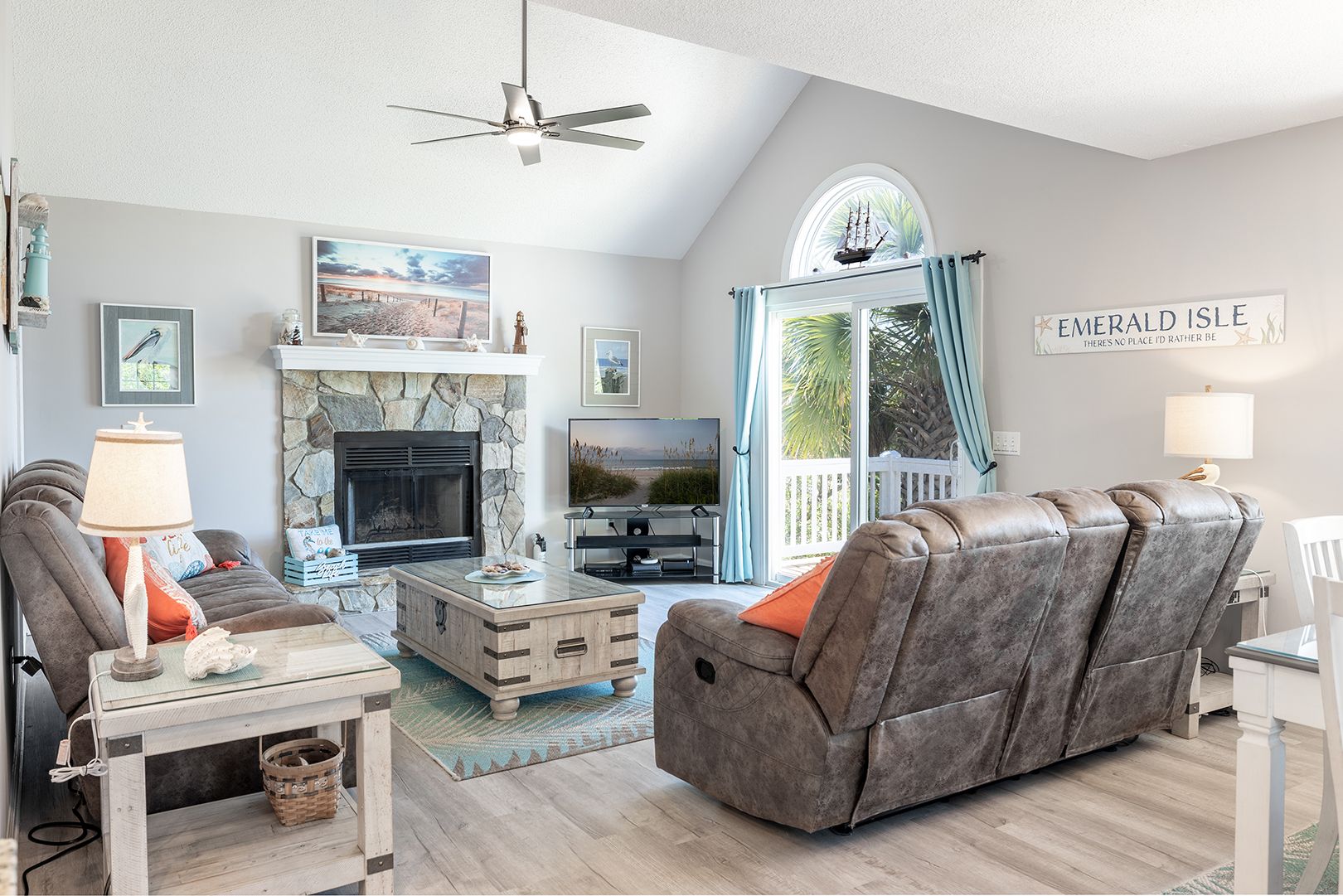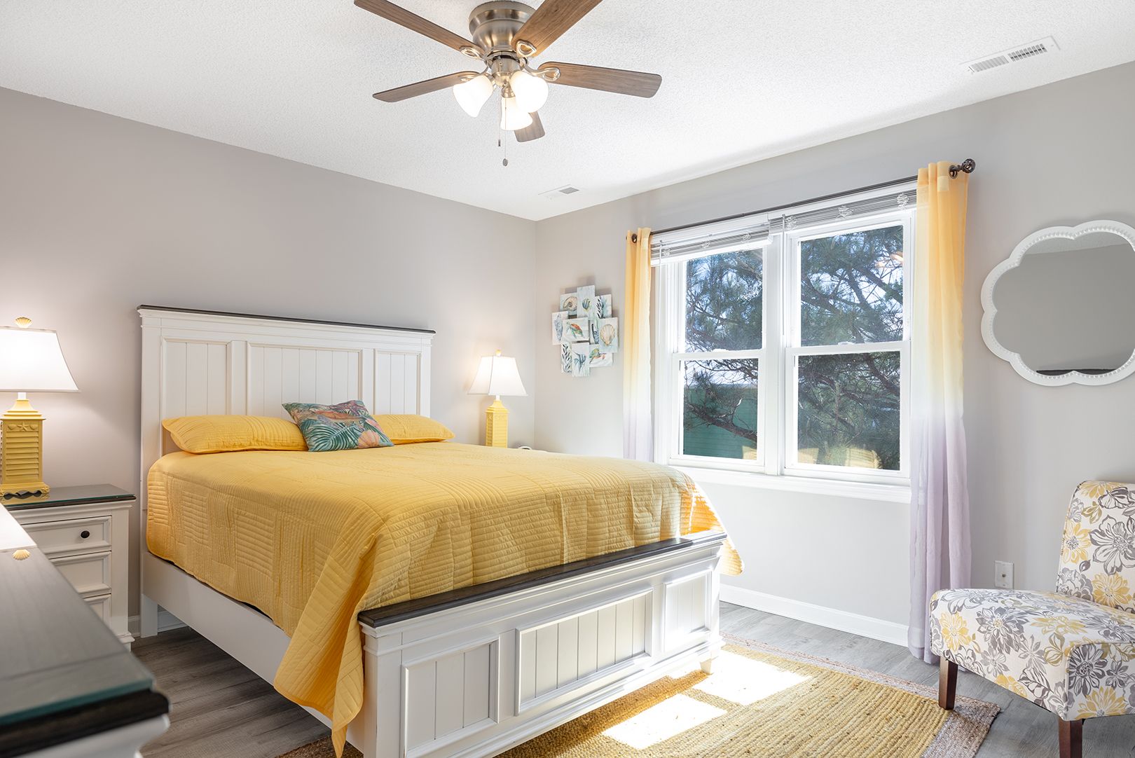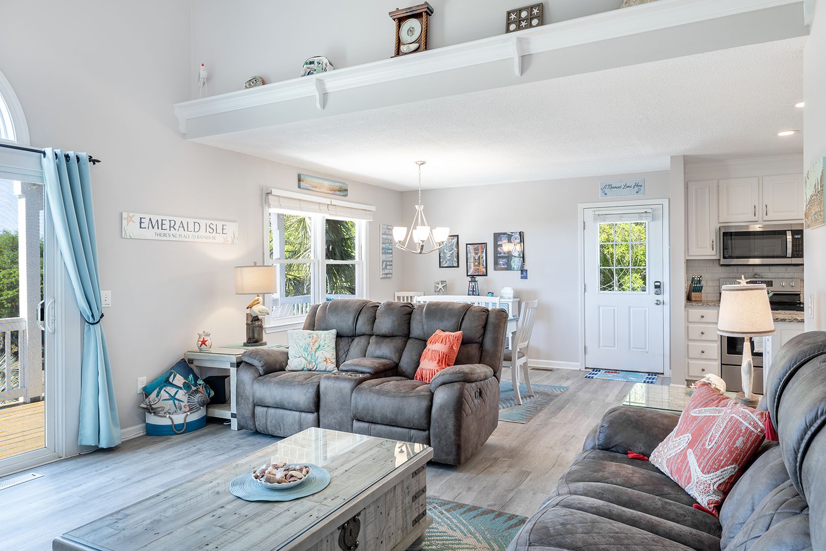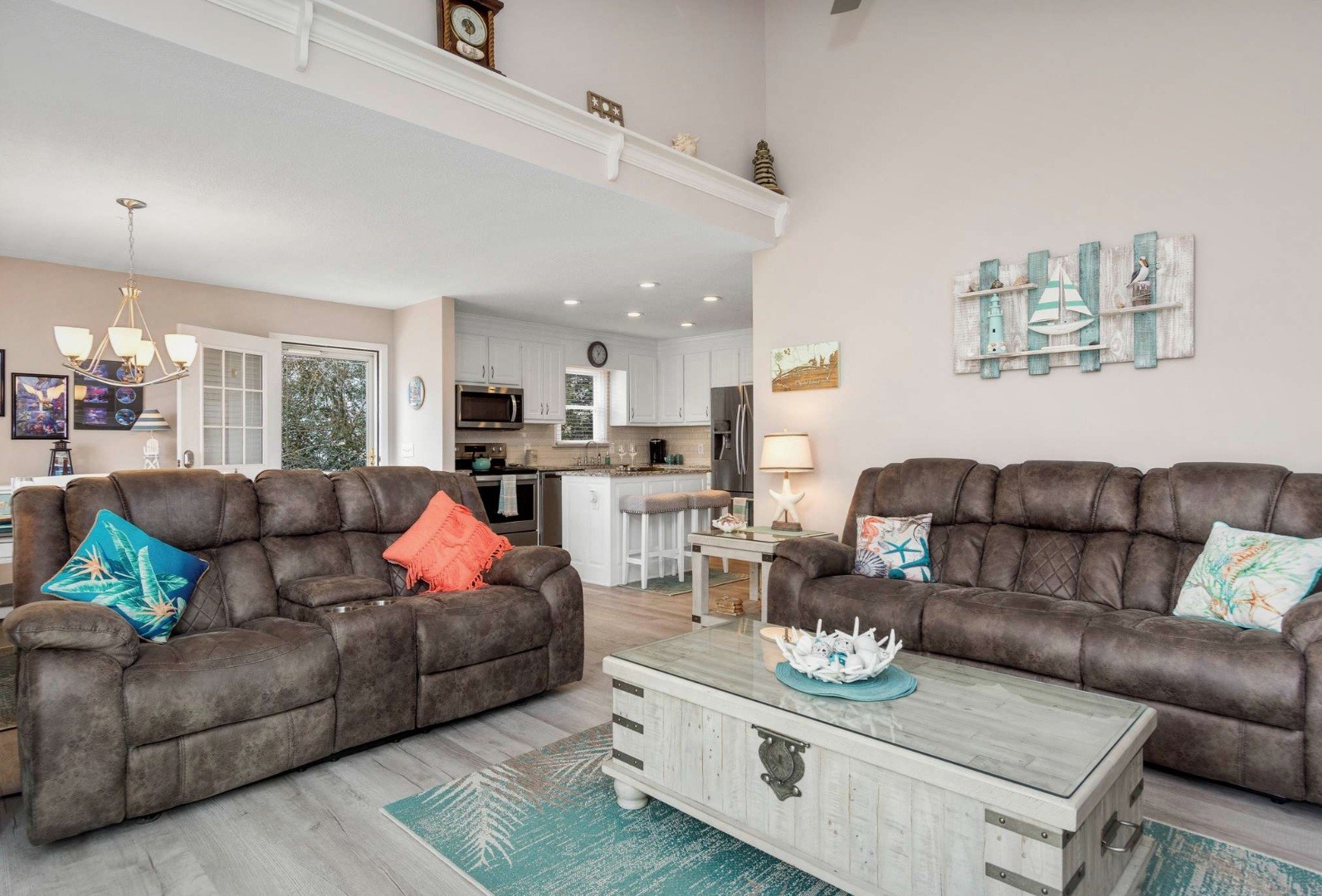 Step out on the spacious walk-around lower covered deck area complete with furniture including Adirondack chairs to enjoy the beautiful palm trees, ocean breeze and sunny seaside locale. Enjoy the side yard patio, Adirondack chairs, Propane Fire Pit table, and Yard games including Corn Hole, Yard Yahtzee, and Ladder Golf provided.