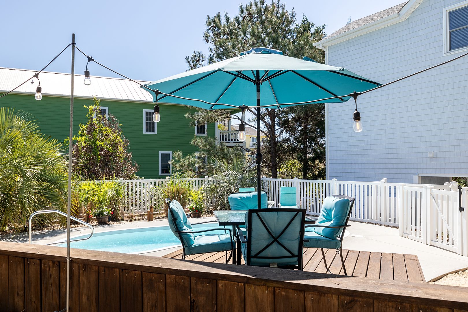 5 Roku TVs, Blu-Ray Player, DVD Player, Central Air/Heat. Washer/Dryer. Covered Deck with Furniture. Indoor Fireplace not to be used. Enclosed outside shower with hot and cold water. Private saltwater pool (seasonal availability) also includes poolside dining patio table with chairs and umbrella as well as poolside chairs and loungers. Wooded walk way to the beach at end of Cul de Sac. Beach carts and sand toys provided. Bike path at the end of the street.