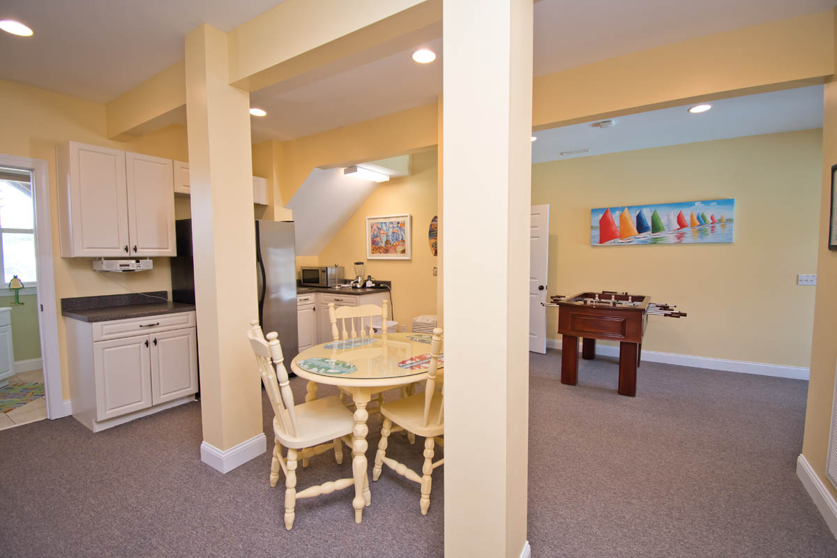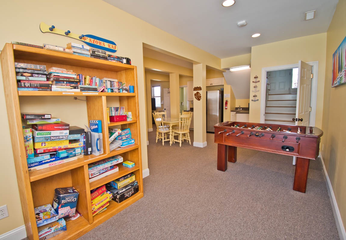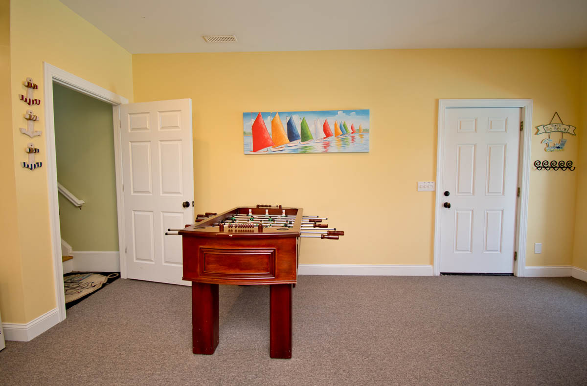 Ground Level: The Game Room has a Queen Sleeper Sofa, Ping Pong Table, Foosball Table, X-Box, Wet Bar, Refrigerator, Microwave, and Full Bath.