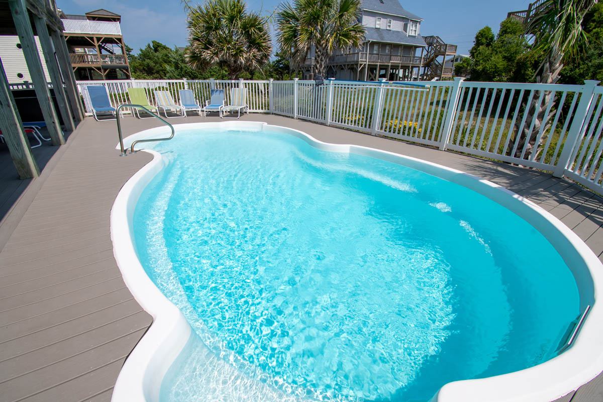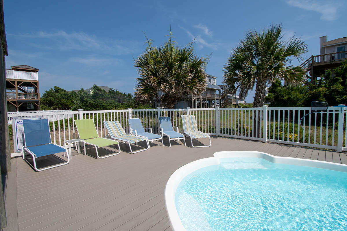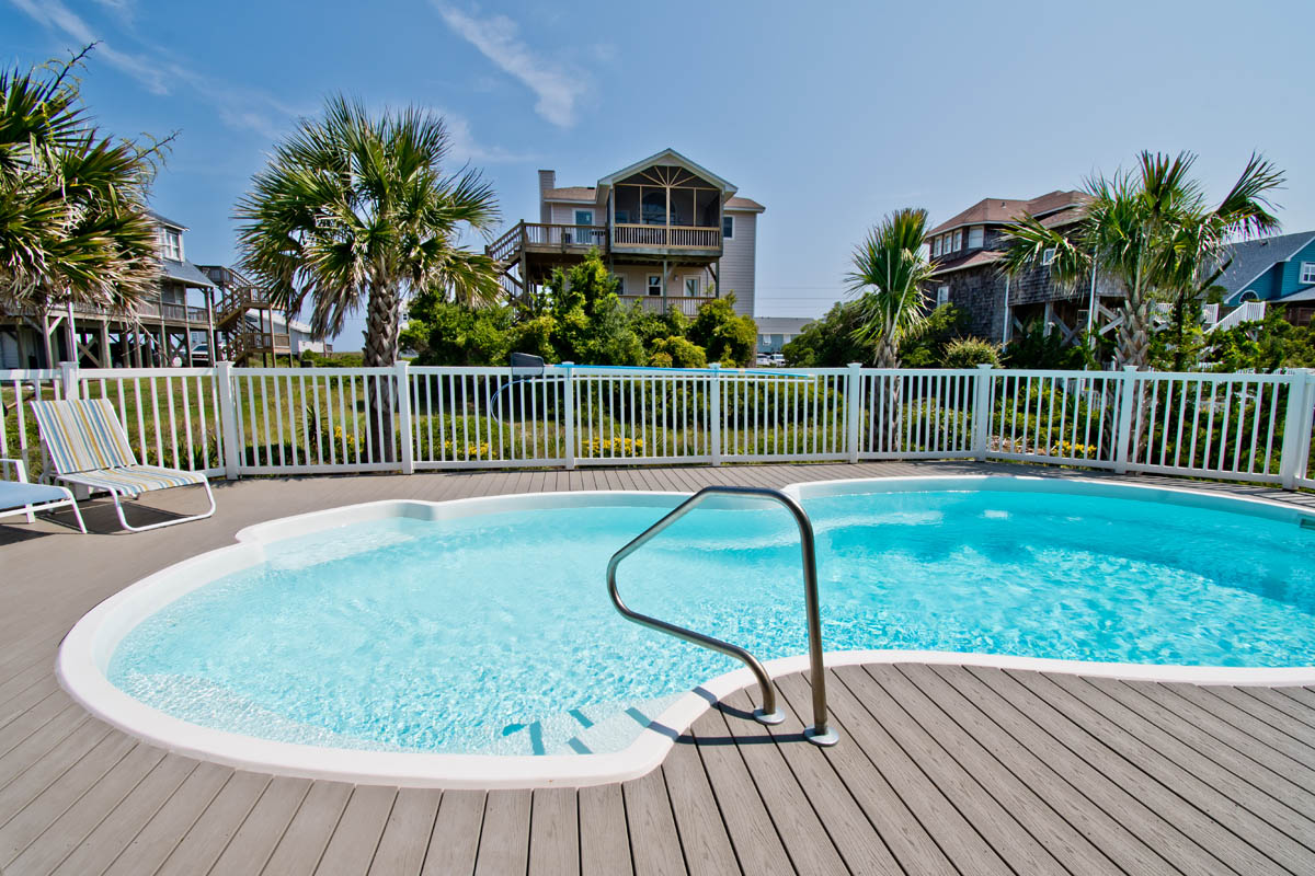 Say Aloha Kai in Emerald Isle! This 4-Bedroom, 5 1/2- Bath, Almost Oceanfront Home is just 2 lots from the ocean! Aloha Kai is one of our exclusive Blue Pearl Homes. Exquisitely furnished and exceptionally appointed, these luxurious beach vacation rentals are draped like pearls all along our Crystal Coast. Blue Pearl Homes are top-of-the-line vacation homes. Each property has been carefully selected and singled out for its unique qualities. Such as the Large Private 15 x 32 Pool (which can be heated for $650/week + tax - only available mid-April thru mid-October; if the temp goes below 55° the heat pump will not work), a Private Hot Tub (see item #19 below) and an Elevator (to all levels)!