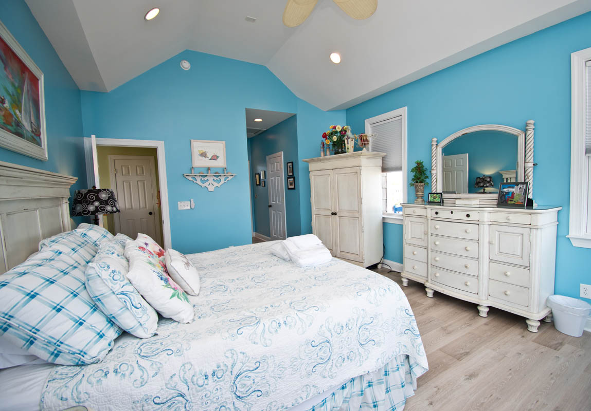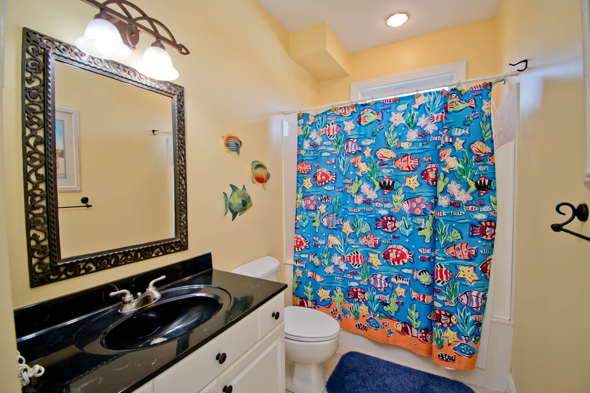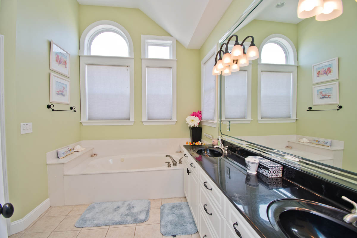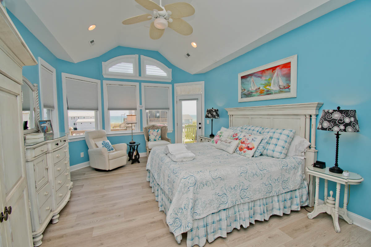 Level One: Bedroom #1 is an Oceanside Master Suite and has a Queen Bed, a Private Bath with a marble Jacuzzi Tub, and a Private Deck. Bedroom #2 has a Queen Bed, and a Private Bath, and Deck Access. Bedroom #3 has a Queen Bed, and Access to the Shared Full Bath this level, and Deck Access. Bonus Room has a Twin/Double Bunk Set and Deck Access.
