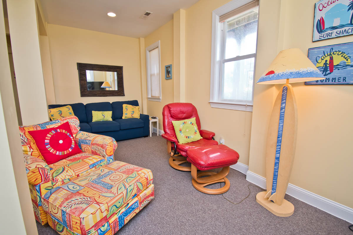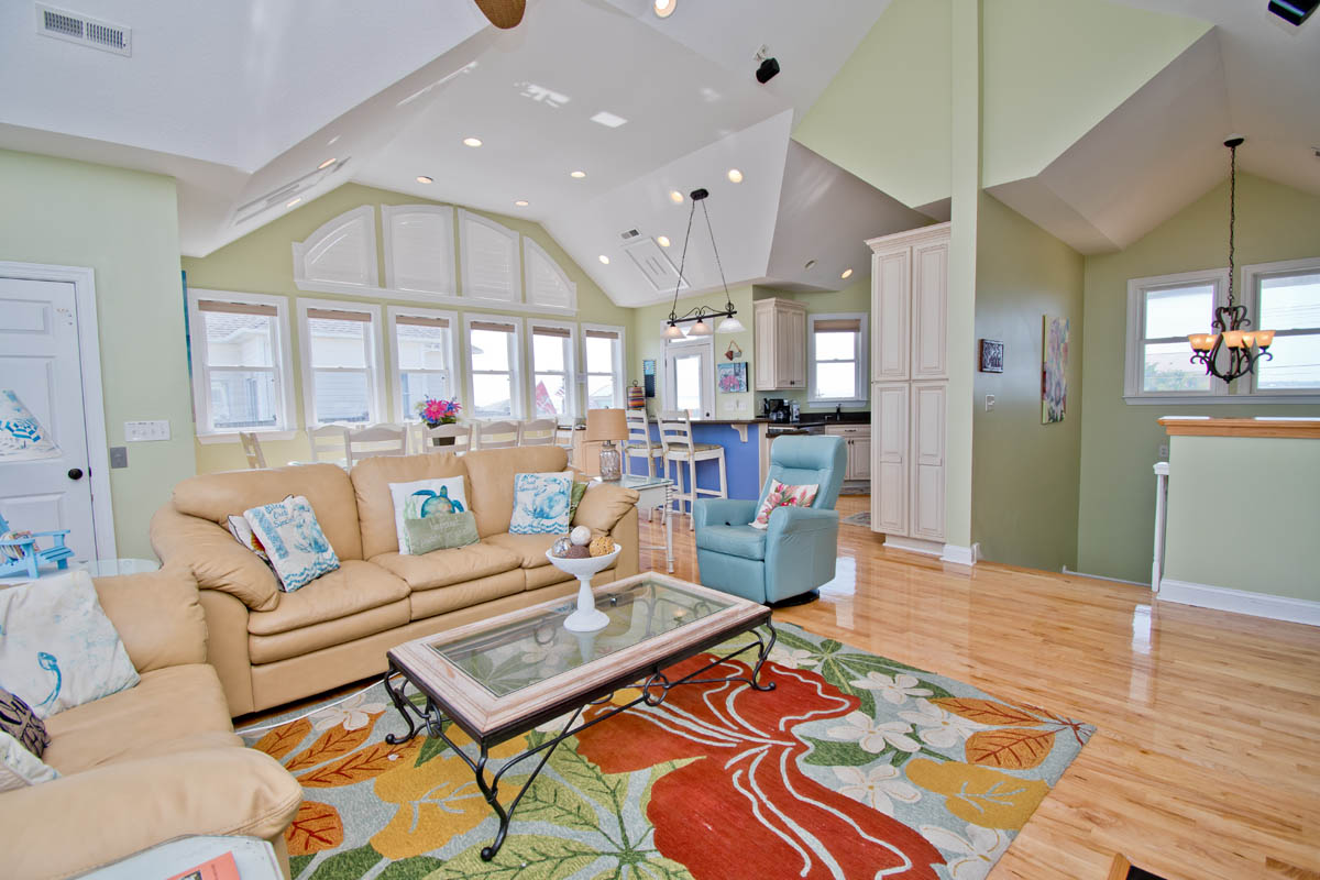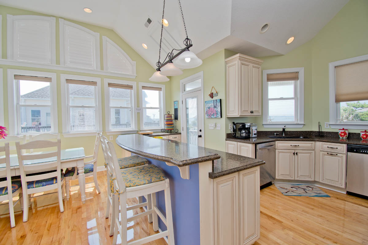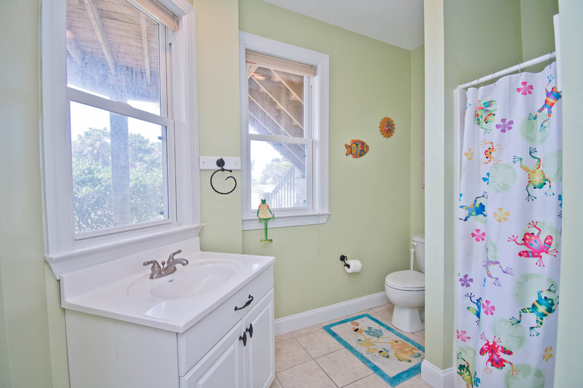 Level One: Bedroom #1 is an Oceanside Master Suite and has a Queen Bed, a Private Bath with a marble Jacuzzi Tub, and a Private Deck. Bedroom #2 has a Queen Bed, and a Private Bath, and Deck Access. Bedroom #3 has a Queen Bed, and Access to the Shared Full Bath this level, and Deck Access. Bonus Room has a Twin/Double Bunk Set and Deck Access.