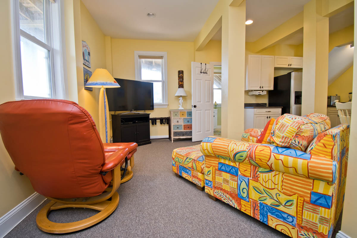 Floor #2 - Living Room TV - Shared Half Bath - Deck Access |