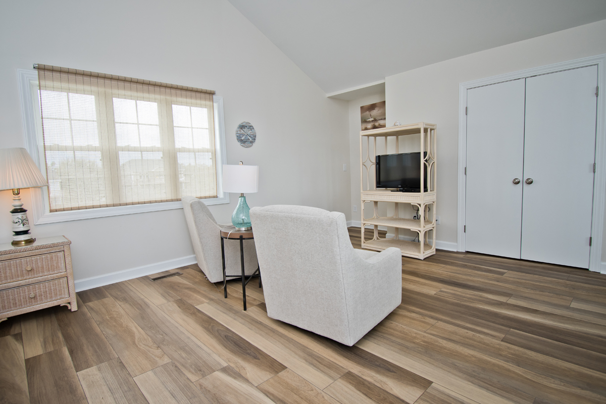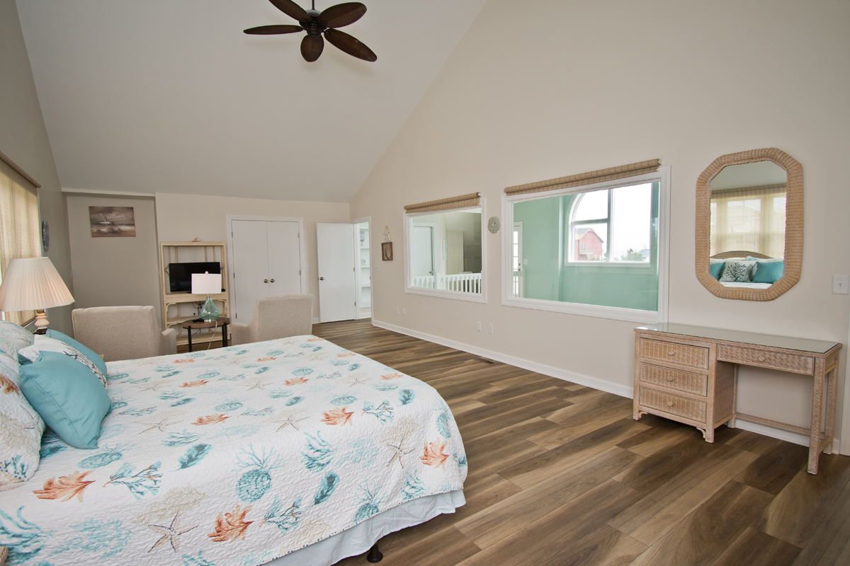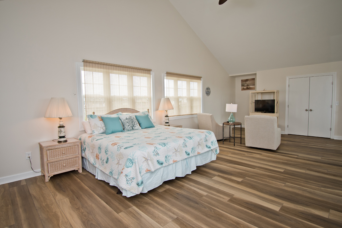 Level Two: Huge Master Suite (Bedroom #4) has a King Bed, a Full-Bath, a Sitting area, newly added Roku TV and a Bar.