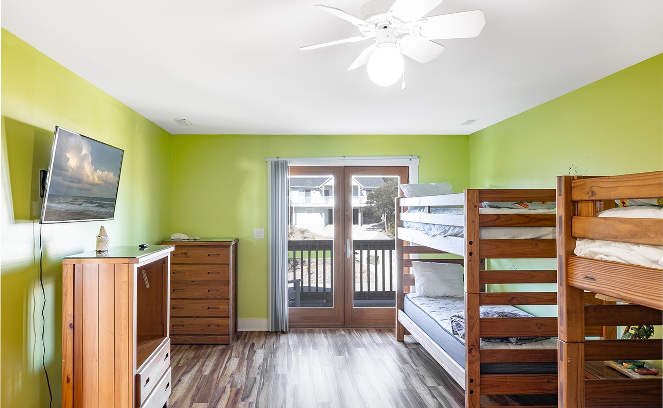 Floor #1 - Bedroom #3 Twin Bunk Beds - TV - Balcony Access |