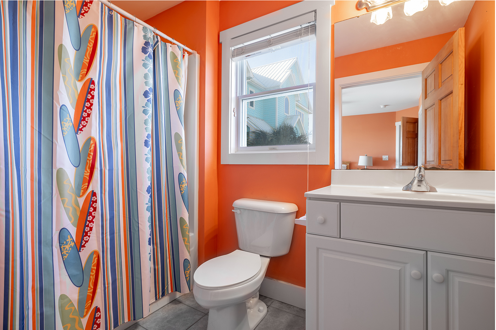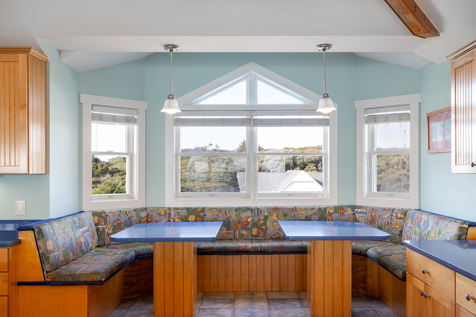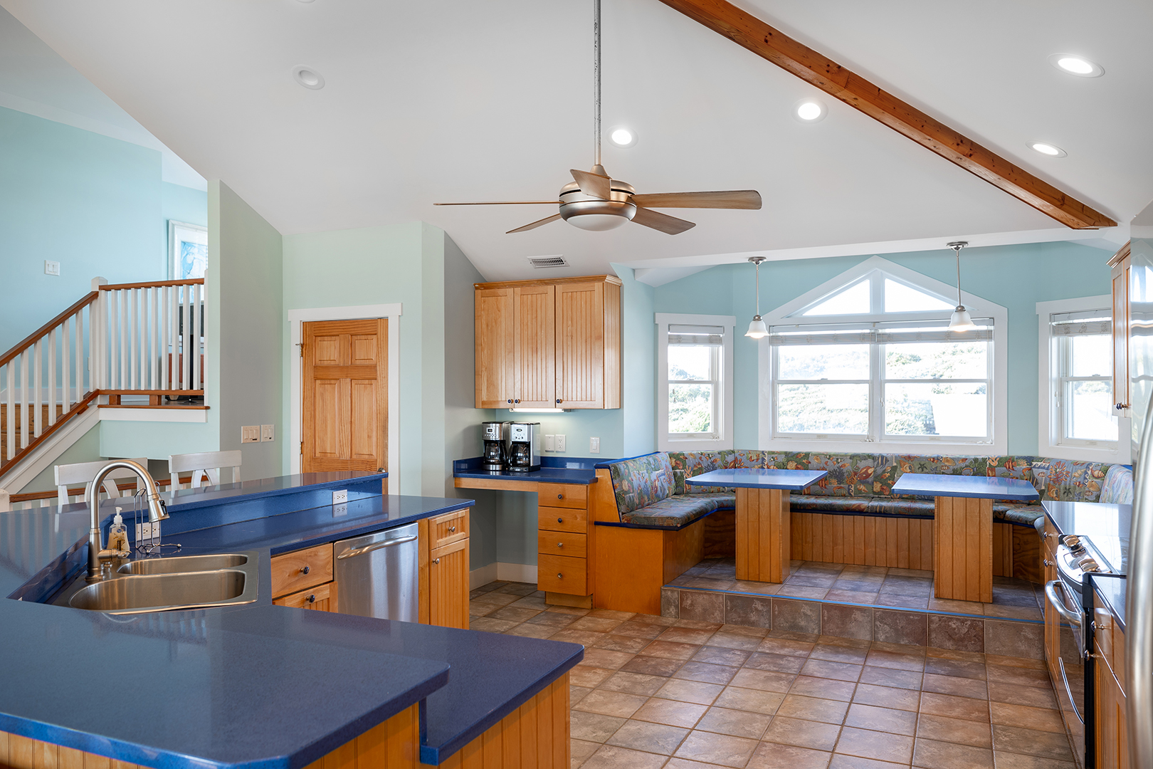 Floor #1 - Laundry room, kitchenette, and recreation room with pool table are all located on this floor. Streetside Bedroom #1 - has 2 Twin Bunk Sets and there is a full hall bath. Oceanfront Bedroom #2 has a king bed and a private full bath. Streetside Bedroom #3 has queen bed and a private full bath.