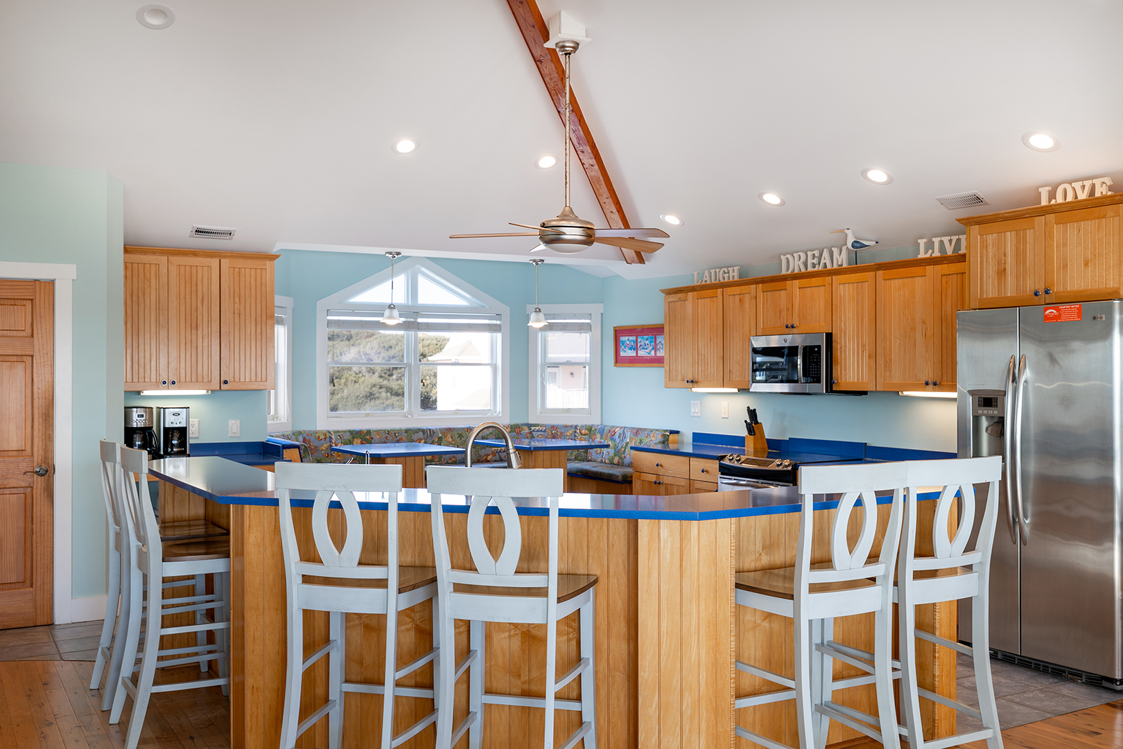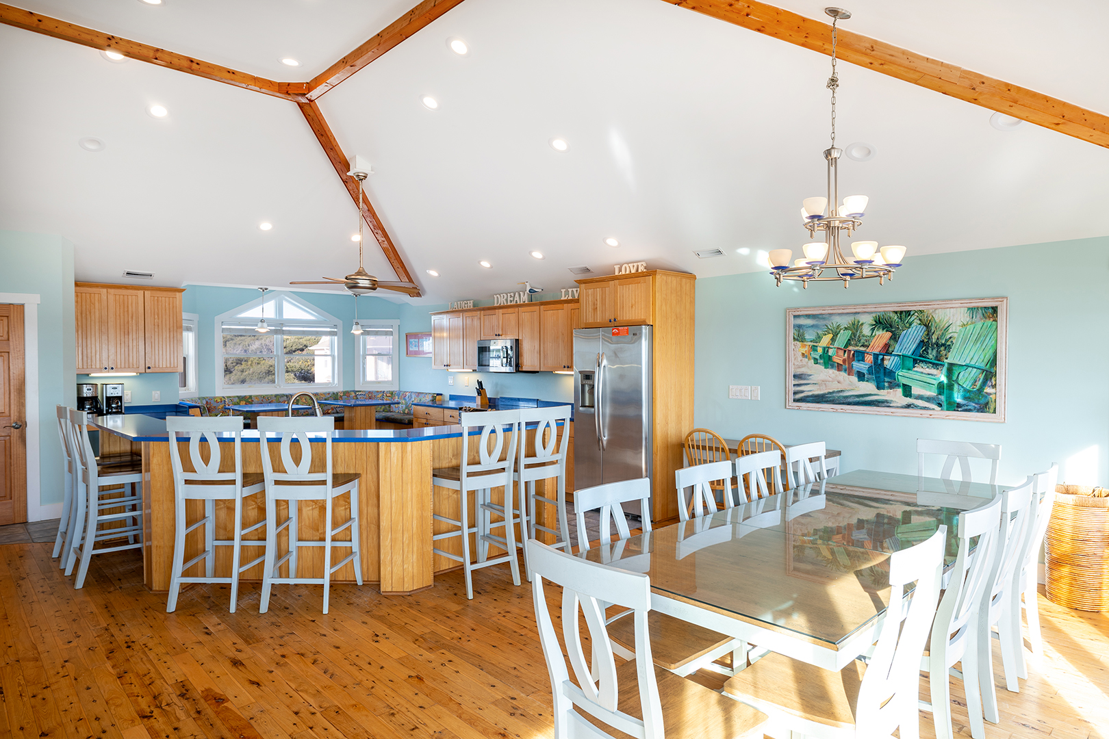 Floor #3 - The Kitchen and Living Room are located on this floor. Additionally, this floor provides Bedroom #8 with king bed and private full bath. There is also a foosball table on this floor.