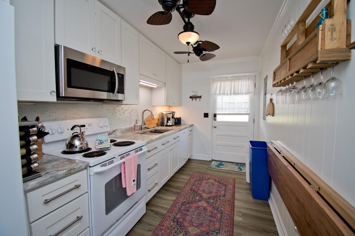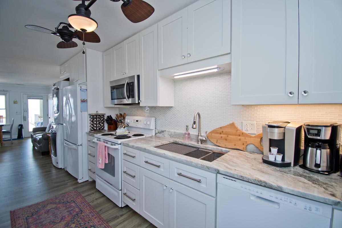At Anchor East Galley Kitchen is fully equipped with a Ruvati workstation, Full Size Microwave, JA Henkels cutlery, Keurig K-Elite coffee maker, BD 12 cup coffee maker, Blender/ Food Processor, Presto Cool Touch Electric Griddle Electric griddle, Waffle maker, 4 slice cool touch toaster, Spice rack, for the Grill king/queen in the family a Park Style Charcoal grill.