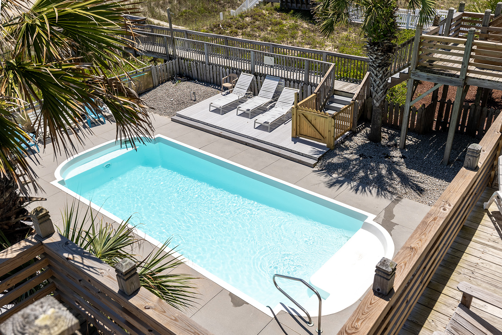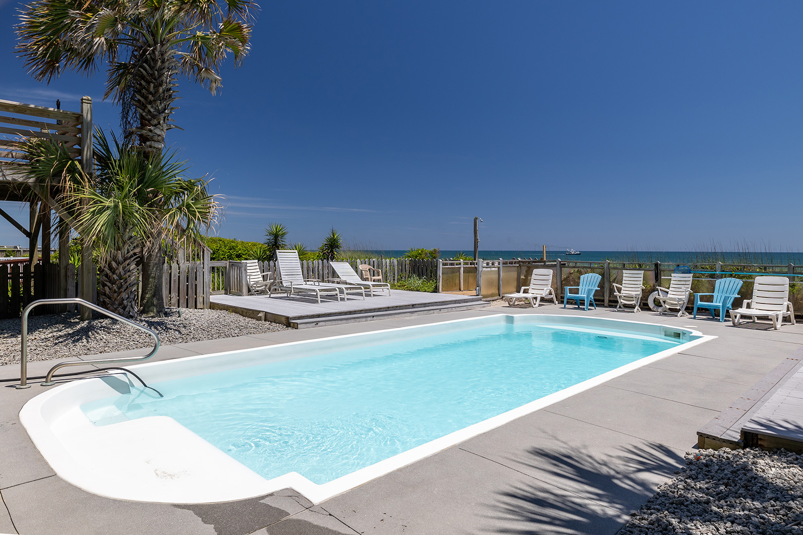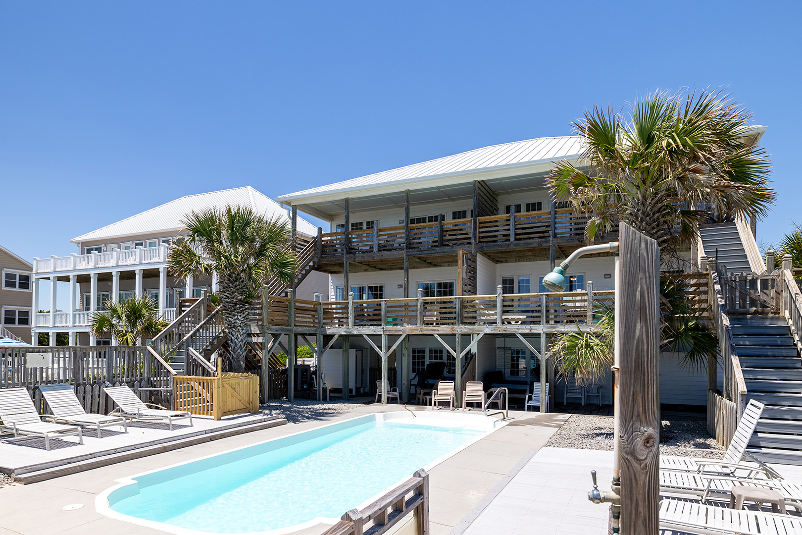 Amenities include: Oceanfront Swimming Pool, a Hot Tub, High Speed Wireless Internet, Storage with Beach Toys, Open and Covered Decks, Beach Chairs, Bicycles, some Sports Equipment, Ceiling Fans in all rooms, Covered Parking, a Game Room, a Foosball Table, a Charcoal Grill, an Enclosed Hot/Cold Outdoor Shower, a Jacuzzi and a Porta-crib.