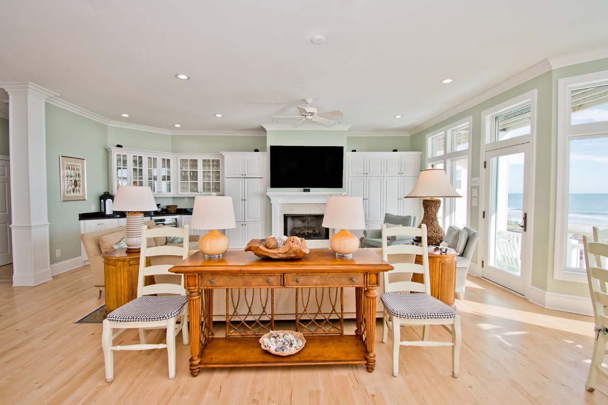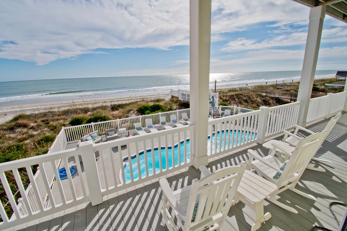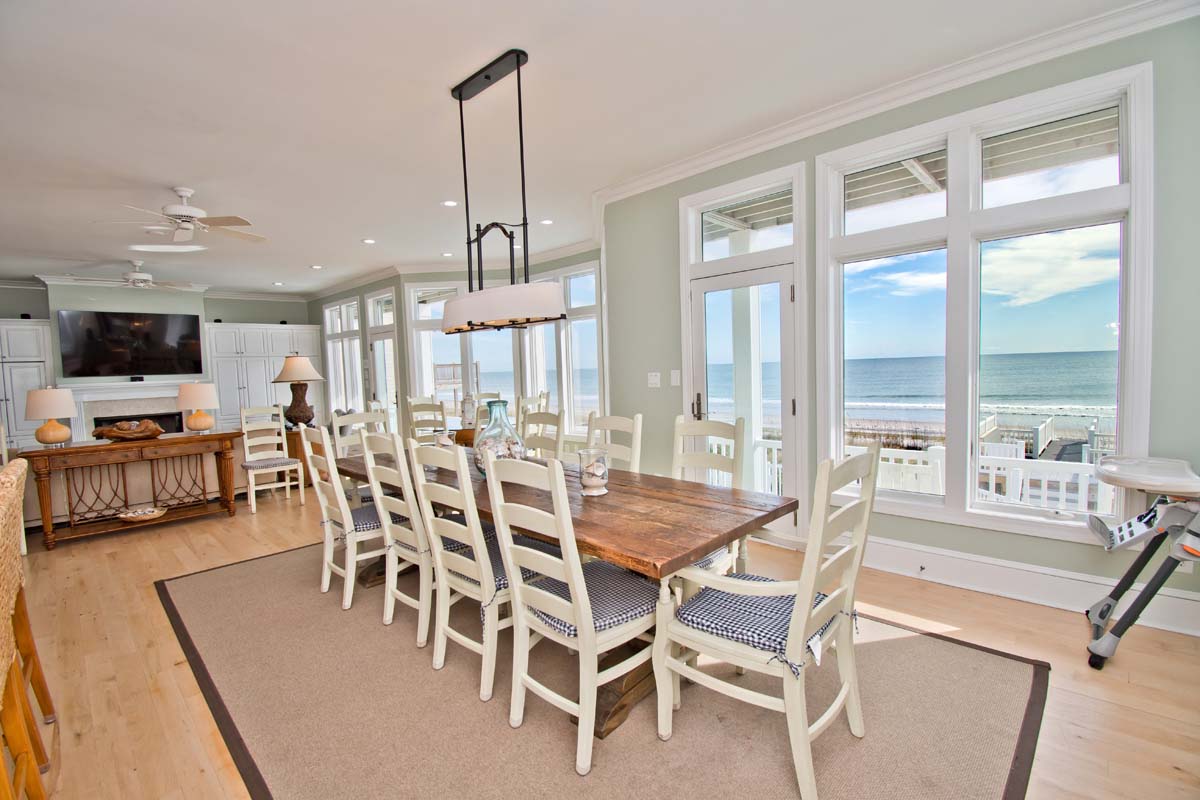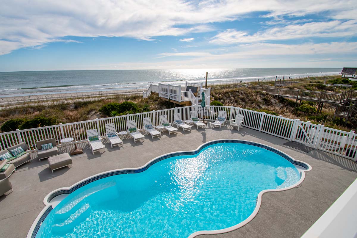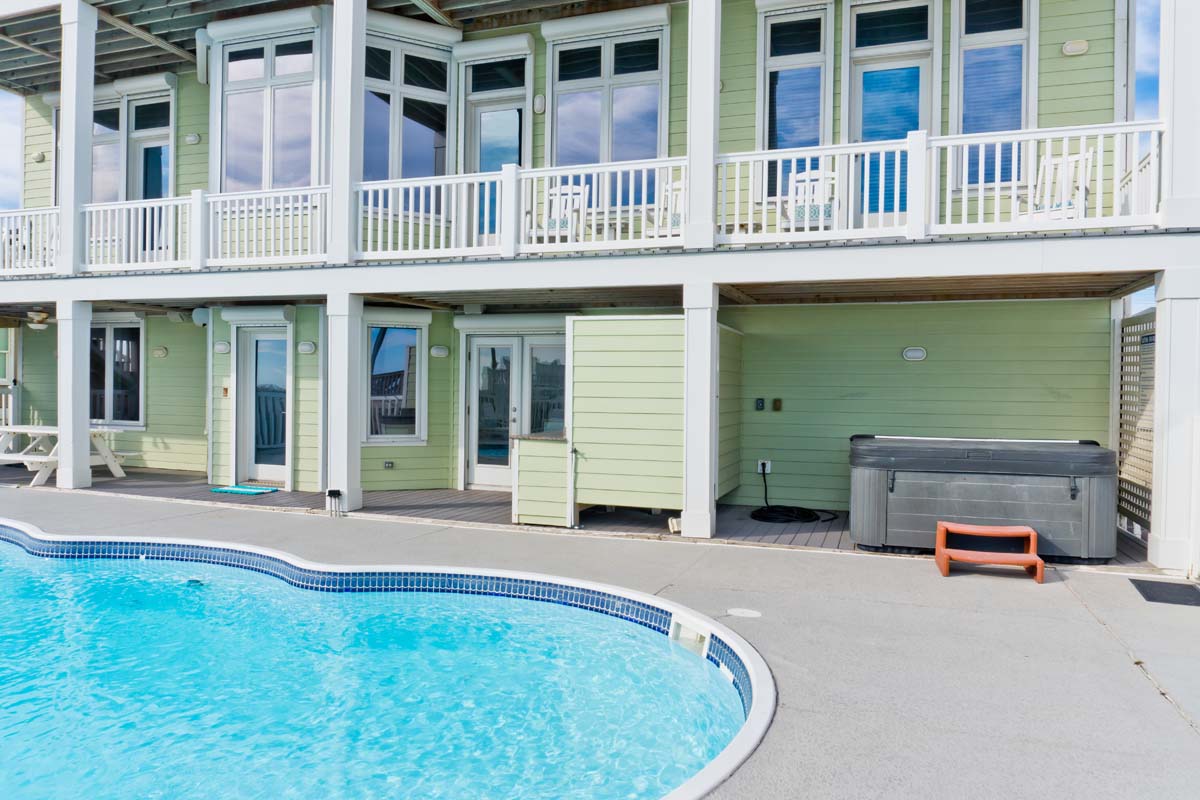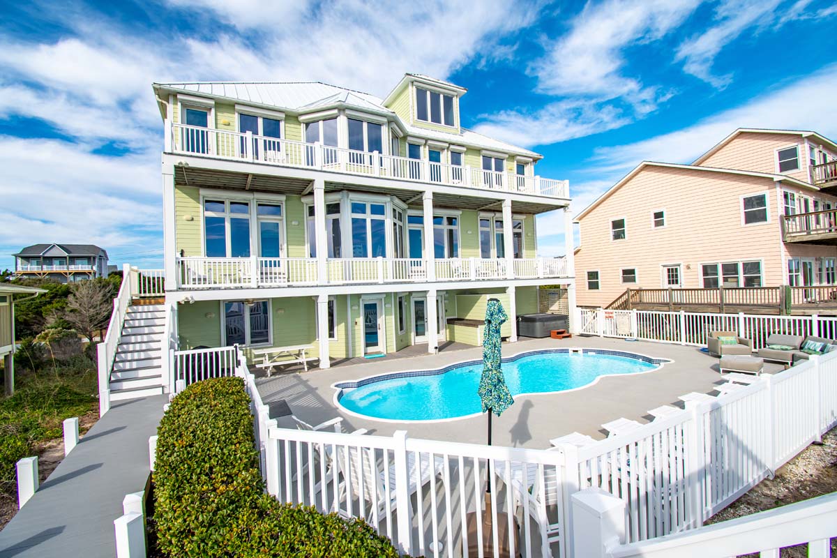 If you want to enjoy the sights and sounds of a tropical paradise, Bahama Breeze is calling your name. This stunningly appointed 10 bedroom, 11 full and 1 half bath oceanfront home overlooks the Atlantic from the pristine dunes of Emerald Isle. Kick up your feet on the open and covered decks in a rocker or lounge chair and soak up the sun and the sounds of the sea. If swimming in the ocean isn¡t your style, slip into the spacious 15' x 33' oceanfront pool or the 6-person hot tub. The Pool can be heated for an additional $650/week + tax; Note: If the temp goes below 55 the pool heat pump will not work. This magnificent home can make several families feel right at home with six oceanfront master suites.