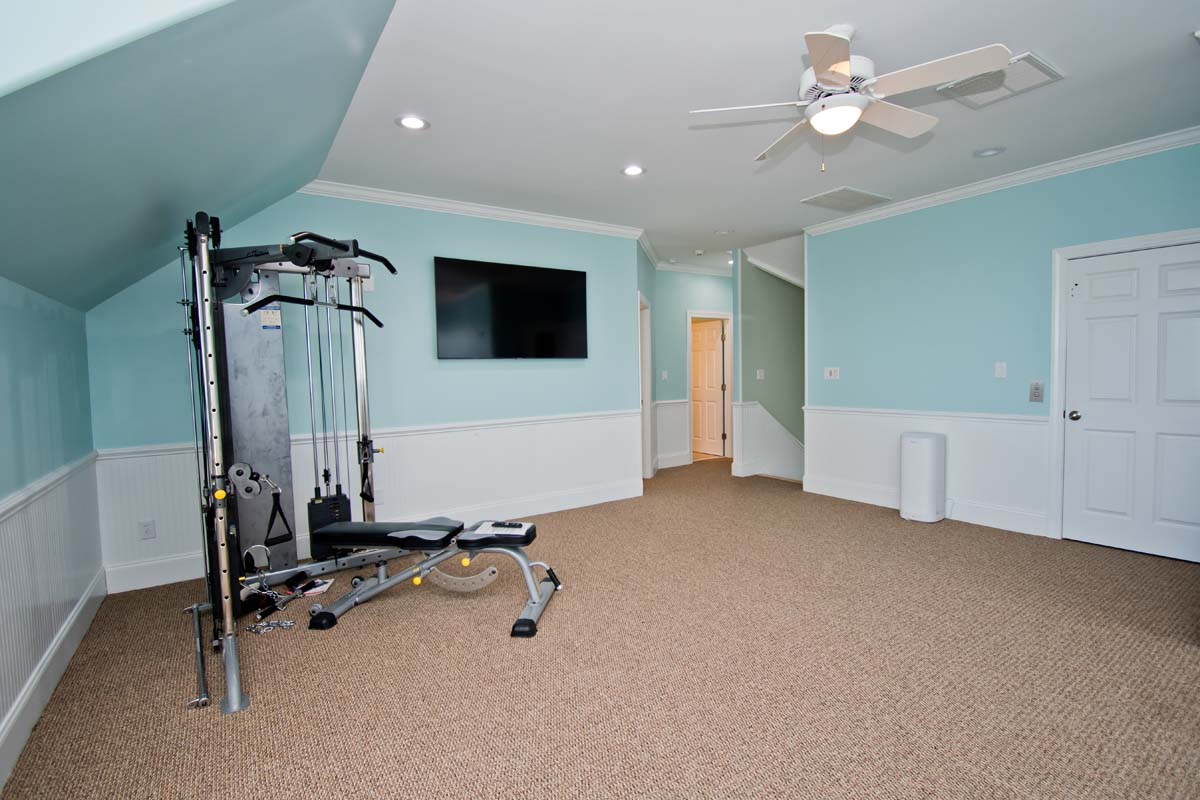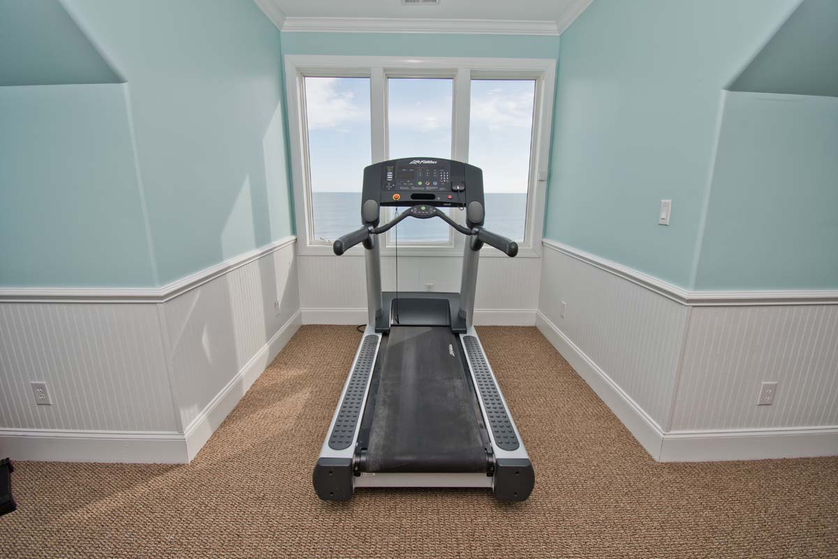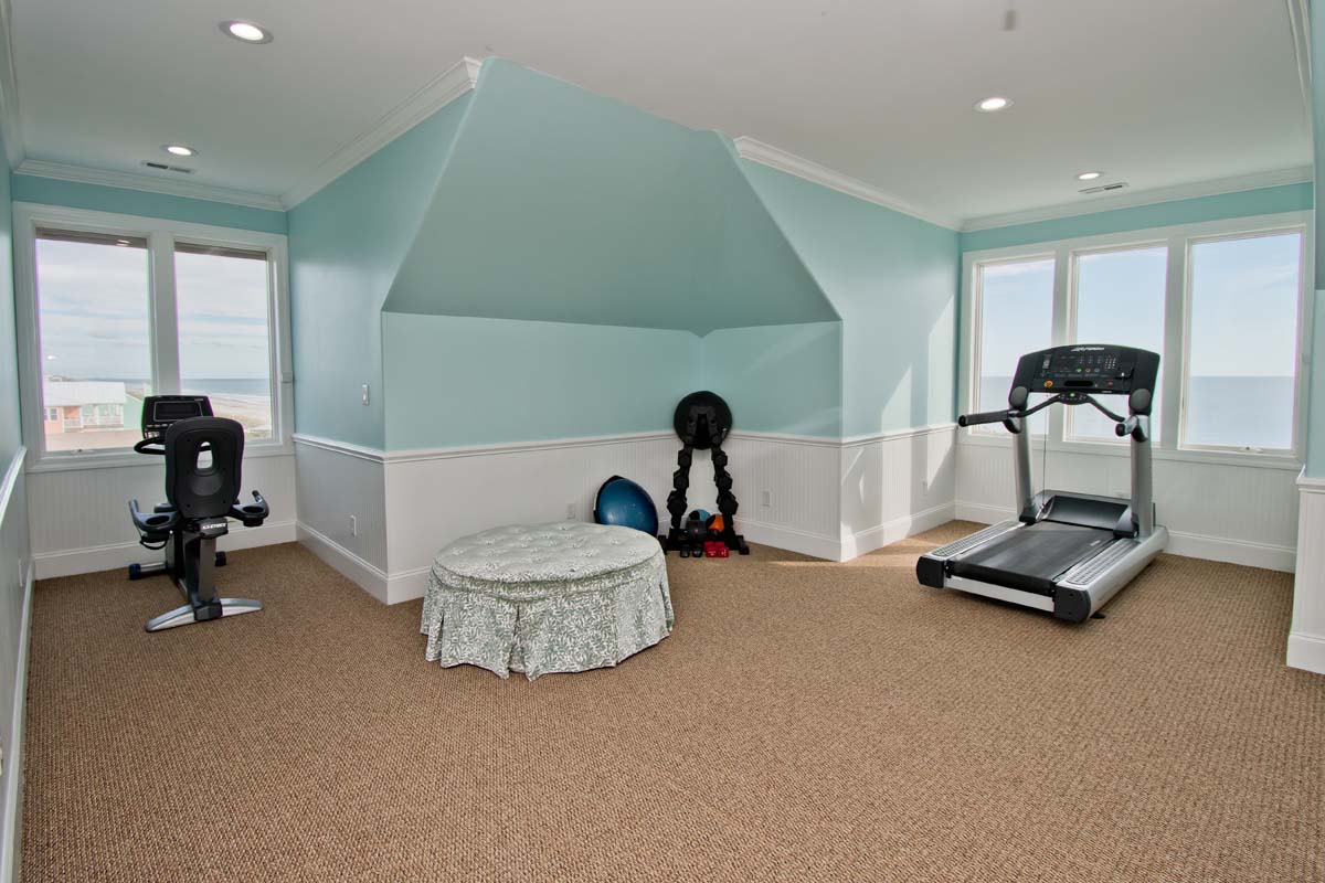 Level Four: A Fully Equipped Gym is located at the top floor with lots of machines, free weights and equipment for those who want to continue their exercise routine while on vacation. Aside from snoozing to the sounds of the ocean, Level Four offers another way to relax during your stay. Rounding out the second floor of this majestic home is a private cedar-paneled sauna room to give you the ultimate in a luxurious vacation escape. A Full bathroom is located directly off the Gym area as well as an additional room. Bedroom #9 is located directly off the Gym and Sauna Area and has a King bed, flat screen TV, Full Private bathroom and beautiful ocean views. Bedroom #10 has one queeen bed.