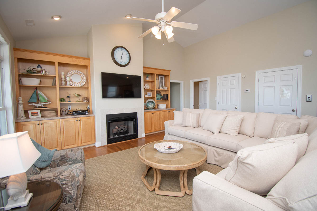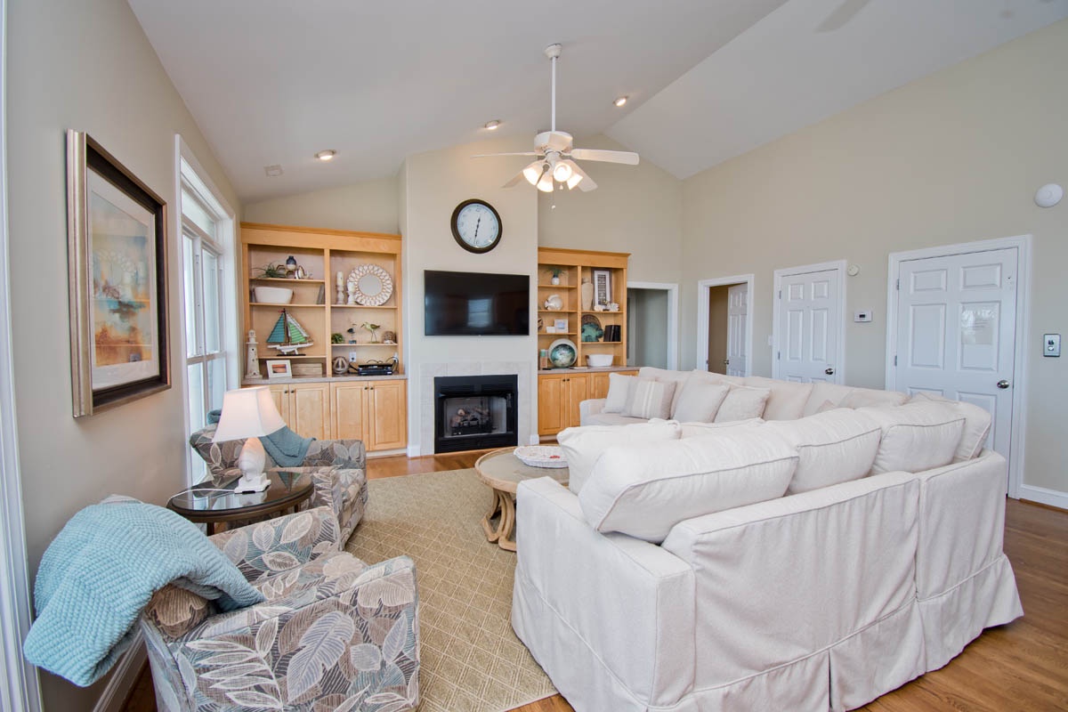 -Living area: TV, Blu-ray player, board games, puzzles, books, and access to the covered porch.
