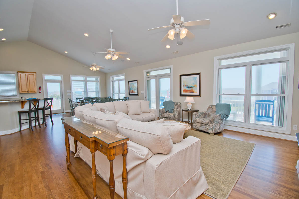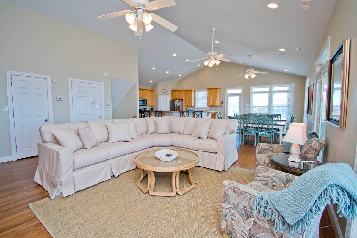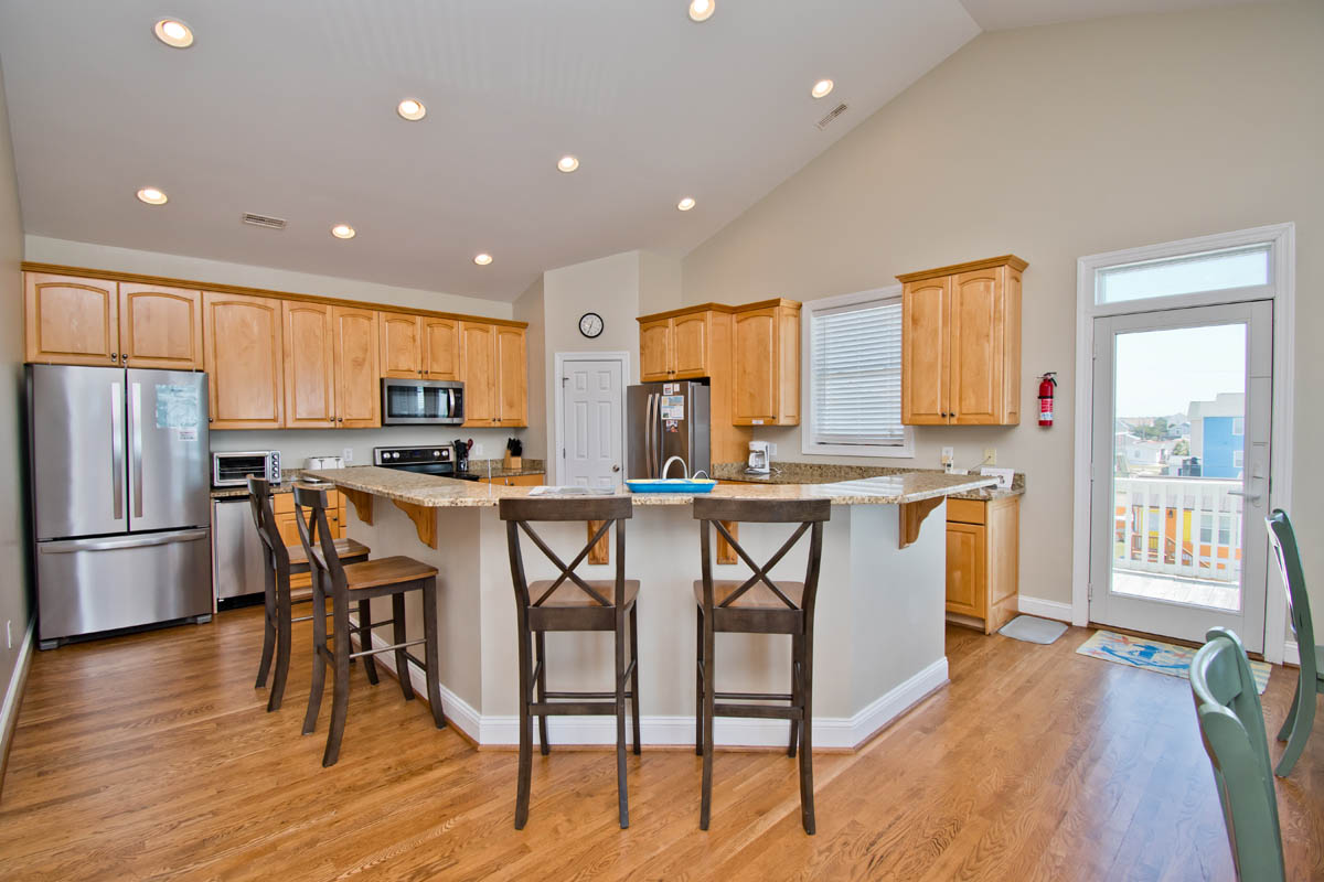 Beach Blessings has gotten a recent facelift with new carpet in all the bedrooms and new lights in all the bathrooms. The three king bedrooms have all new furniture, and the three bedrooms on the west side of the house (top, middle, and ground floors) have new, firmer mattresses. The top floor living area has a new comfy sectional and stylish tables, and the wood floors are all shined up. The kitchen appliances were updated late last summer and are ready for your gourmet cooking.
