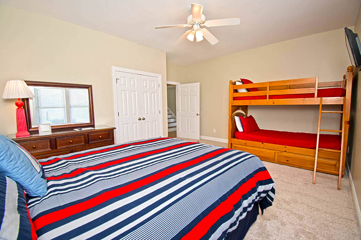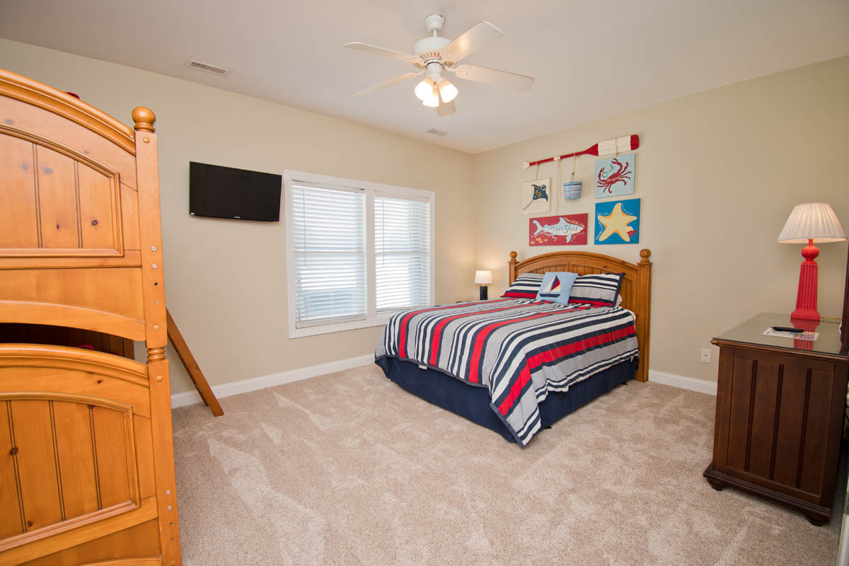 -Bedroom #2: two twin bunk sets, one with trundle, TV