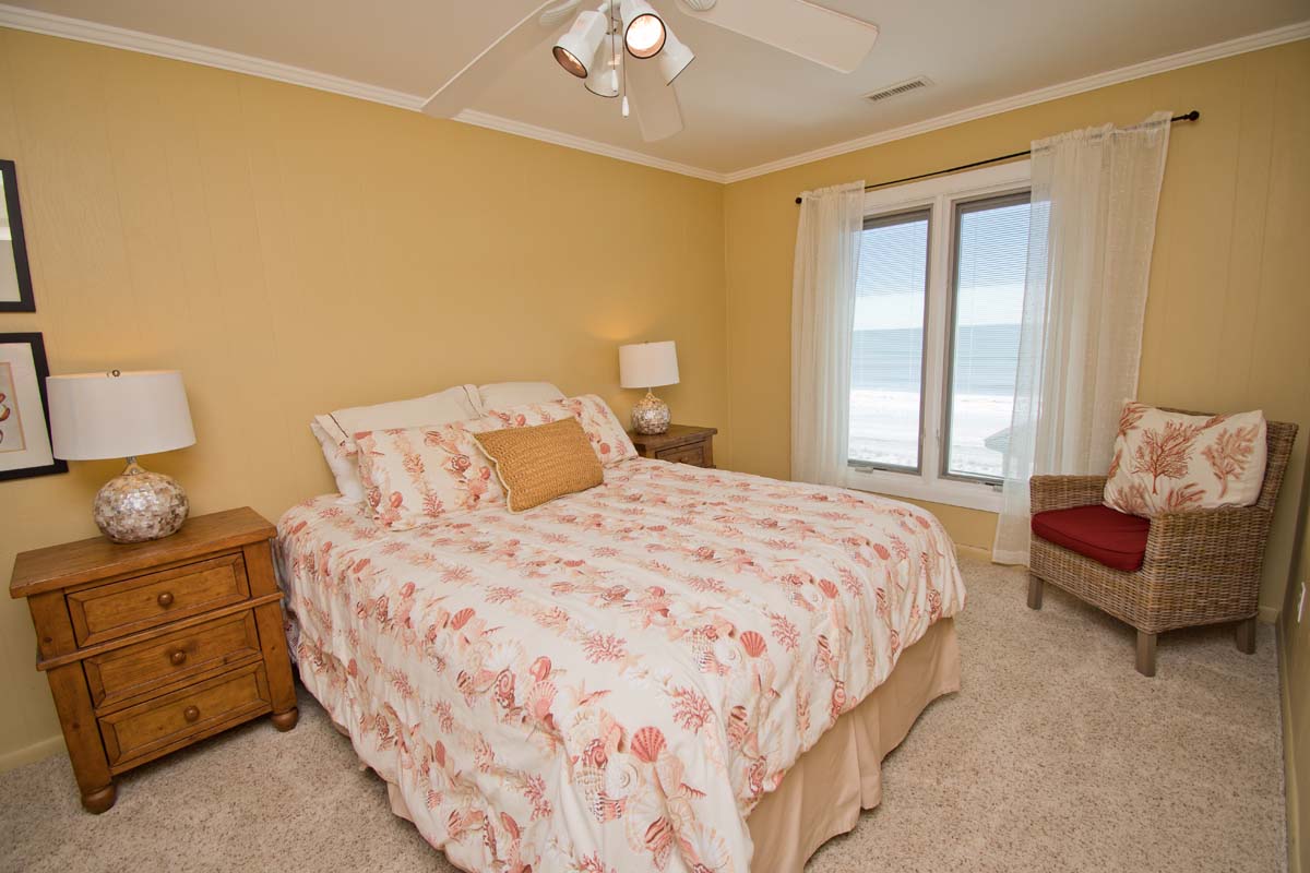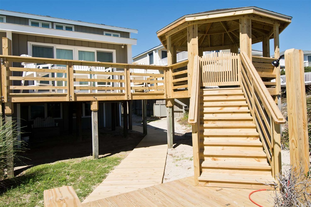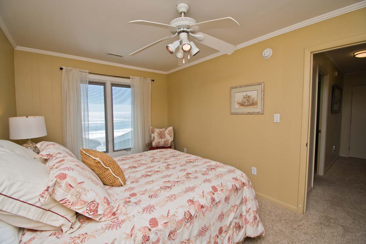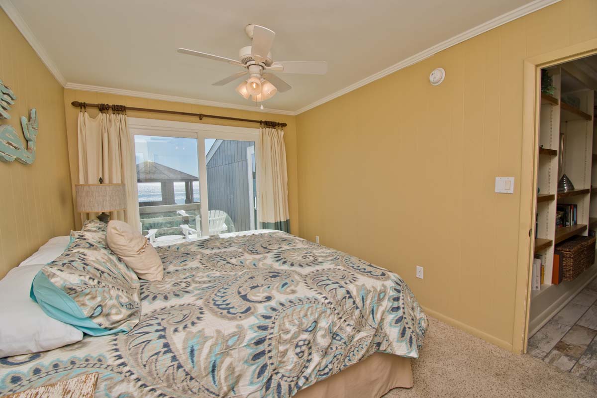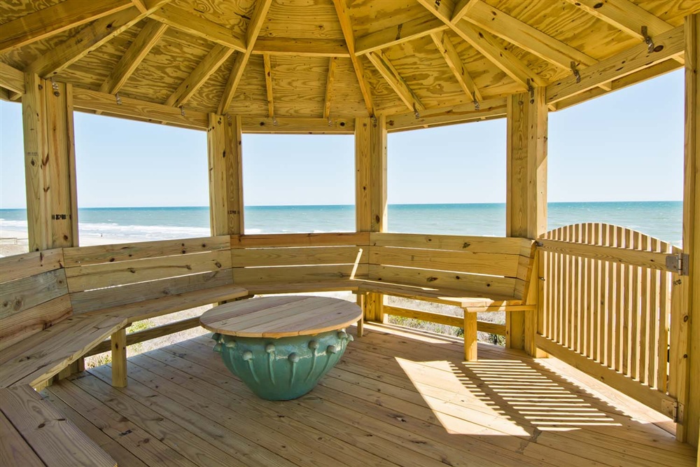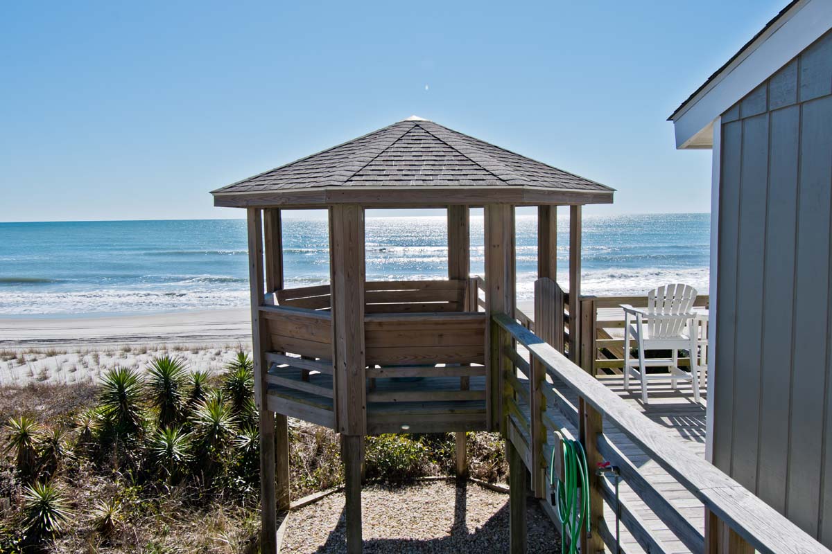 Level One: Bedroom #2 has a King Bed and access to the Oceanfront deck. Bath off of the Hallway. The Kitchen features, among other appliances, a Gas Stove, a Microwave and a Dishwasher. The Dining Area contains a table that seats six. The Living Area has a Flat Screen TV. Doors open to the Deck off of the Living Area. At the end of the Boardwalk to the Beach is a Gazebo for soaking up the ocean breeze.