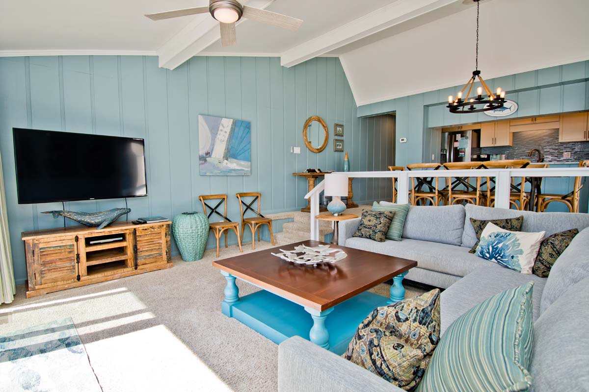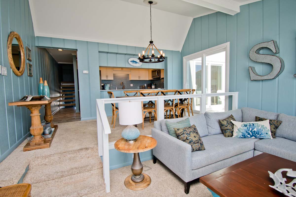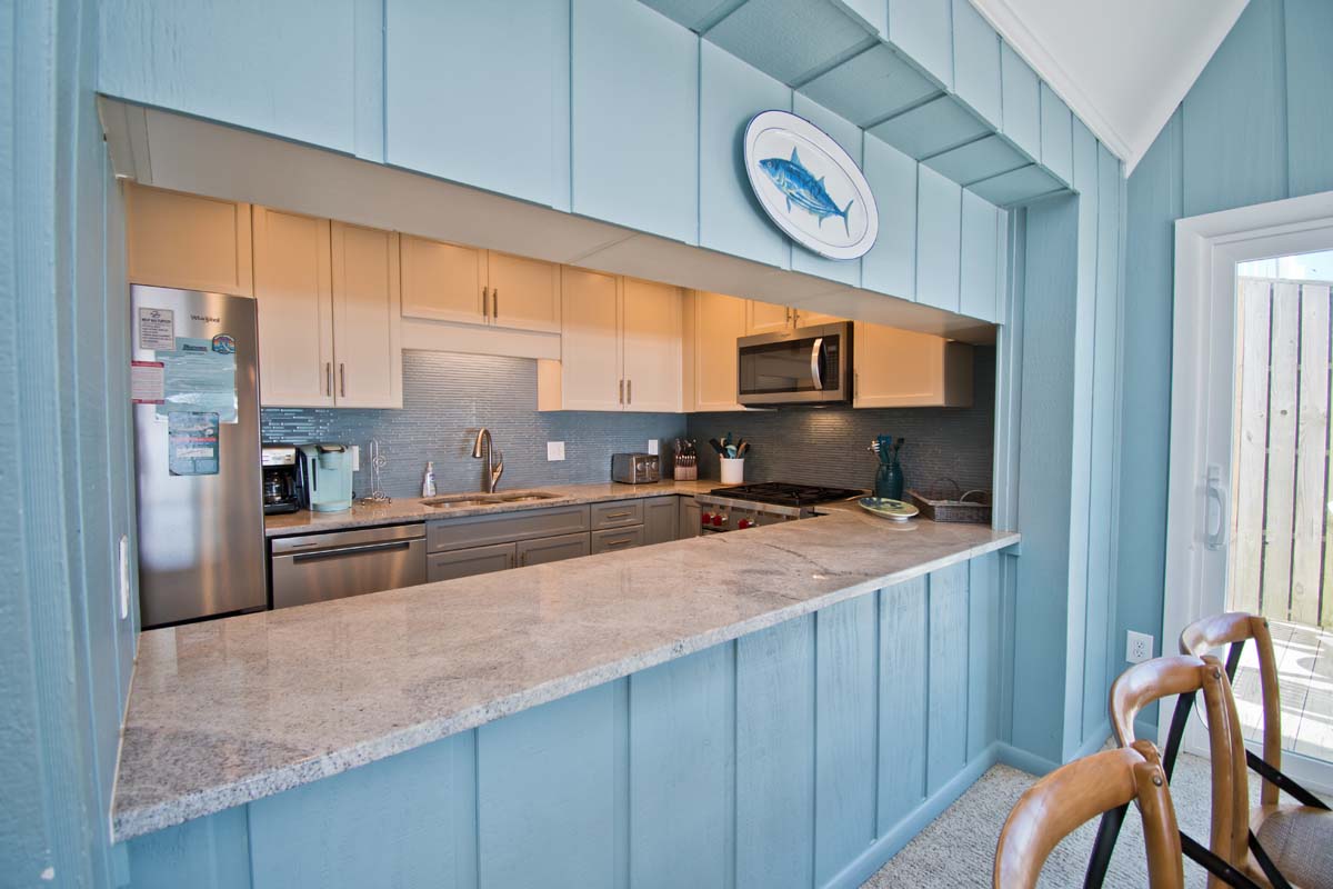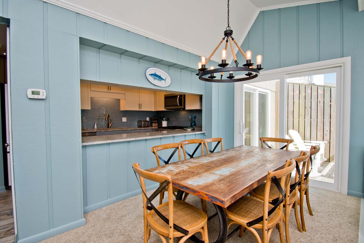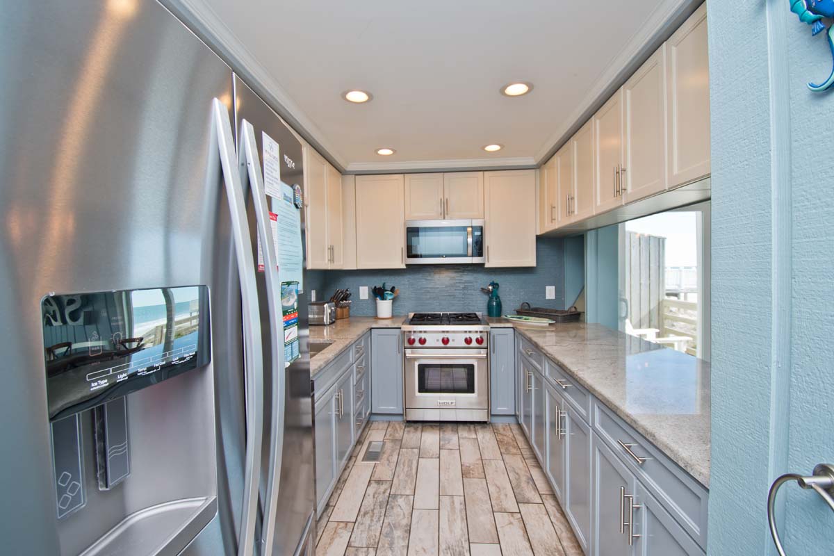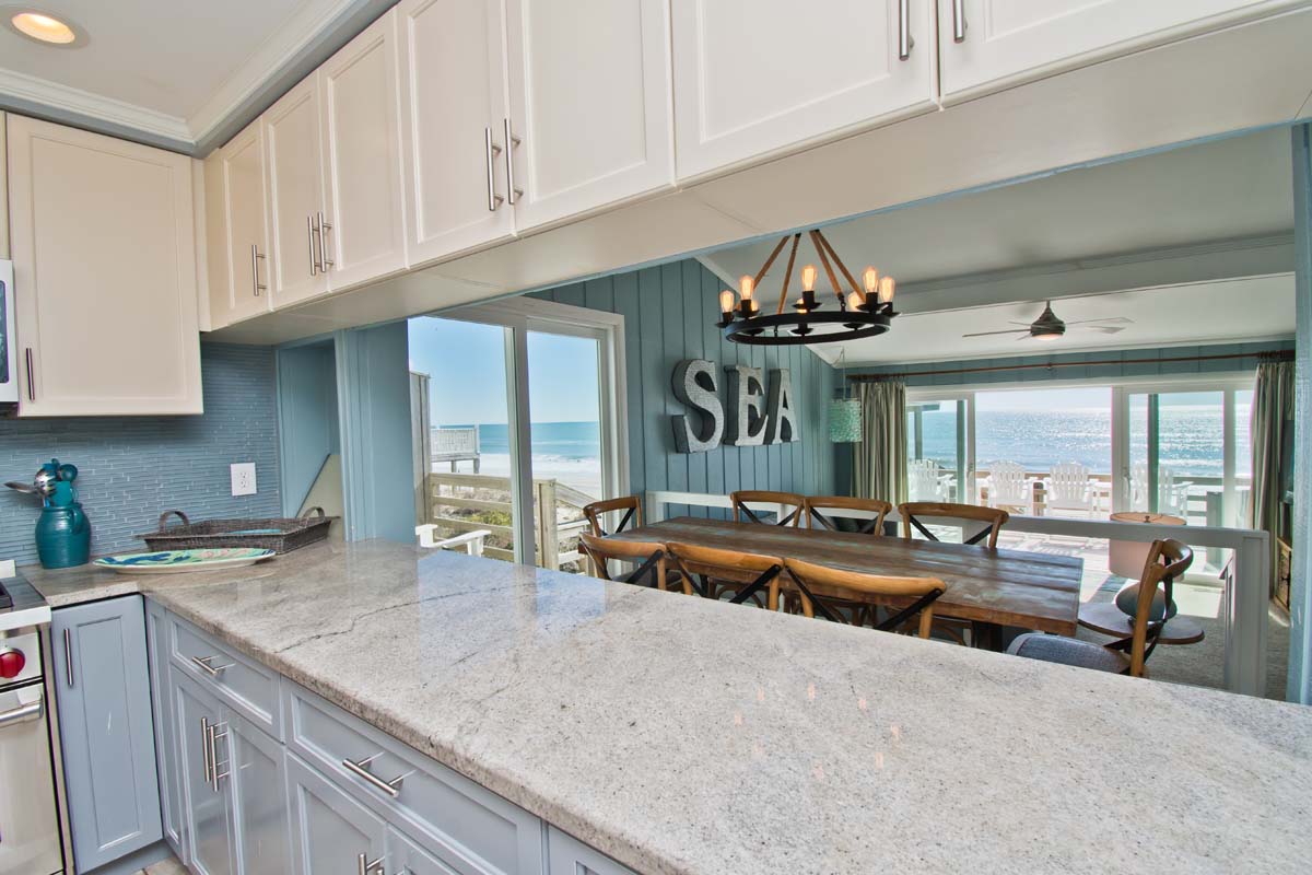 Level One: Bedroom #2 has a King Bed and access to the Oceanfront deck. Bath off of the Hallway. The Kitchen features, among other appliances, a Gas Stove, a Microwave and a Dishwasher. The Dining Area contains a table that seats six. The Living Area has a Flat Screen TV. Doors open to the Deck off of the Living Area. At the end of the Boardwalk to the Beach is a Gazebo for soaking up the ocean breeze.