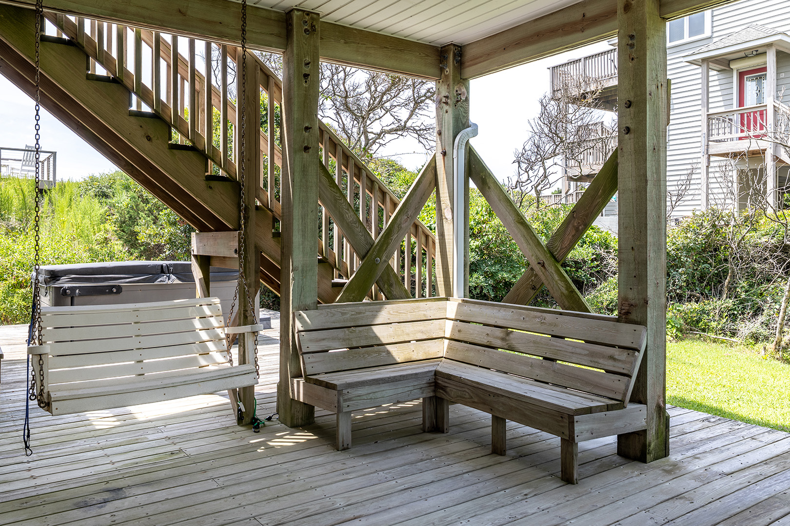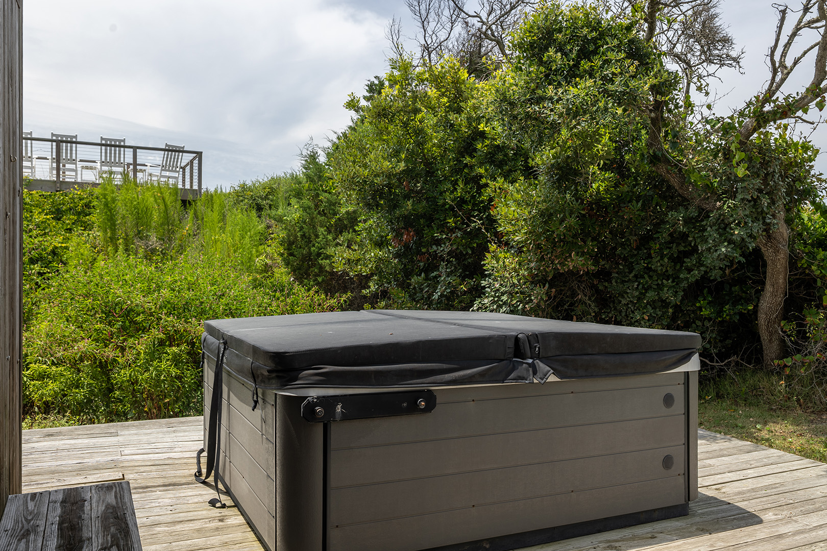 For your convenience and comfort, the home includes an outdoor shower, making it easy to rinse off after a sun-soaked beach day. And when you're ready to relax, sink into the private hot tub for a soothing soak under the sky—whether it's a crisp morning or a starlit evening, it's the perfect way to unwind.