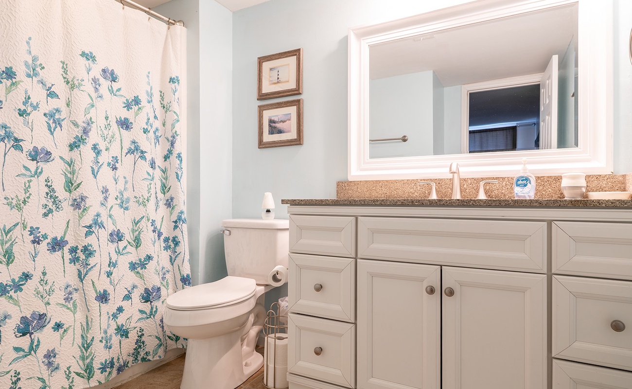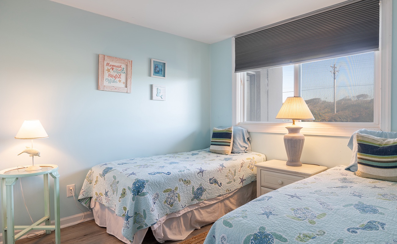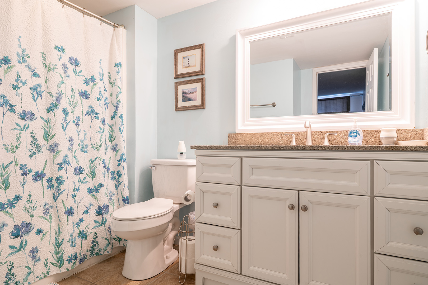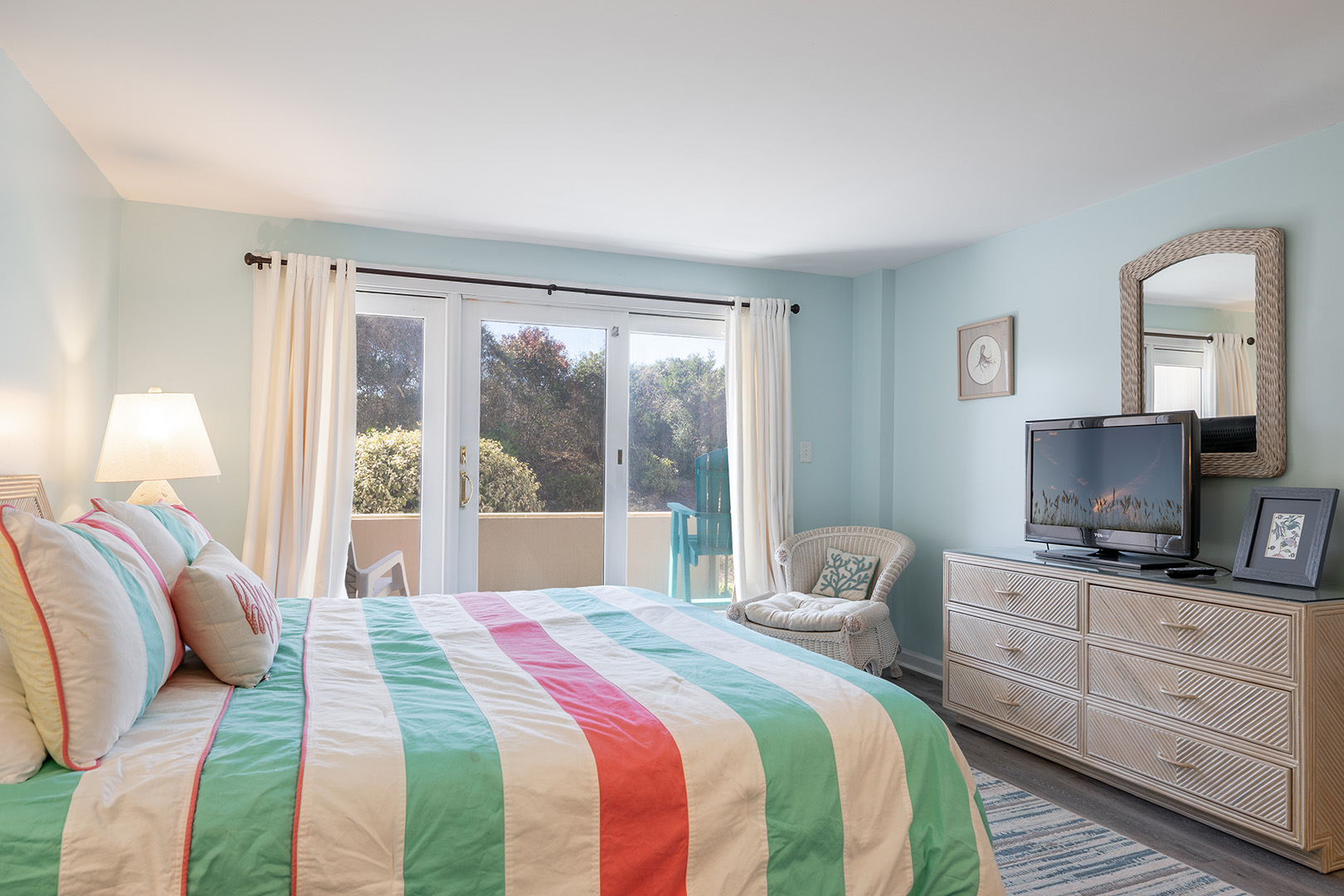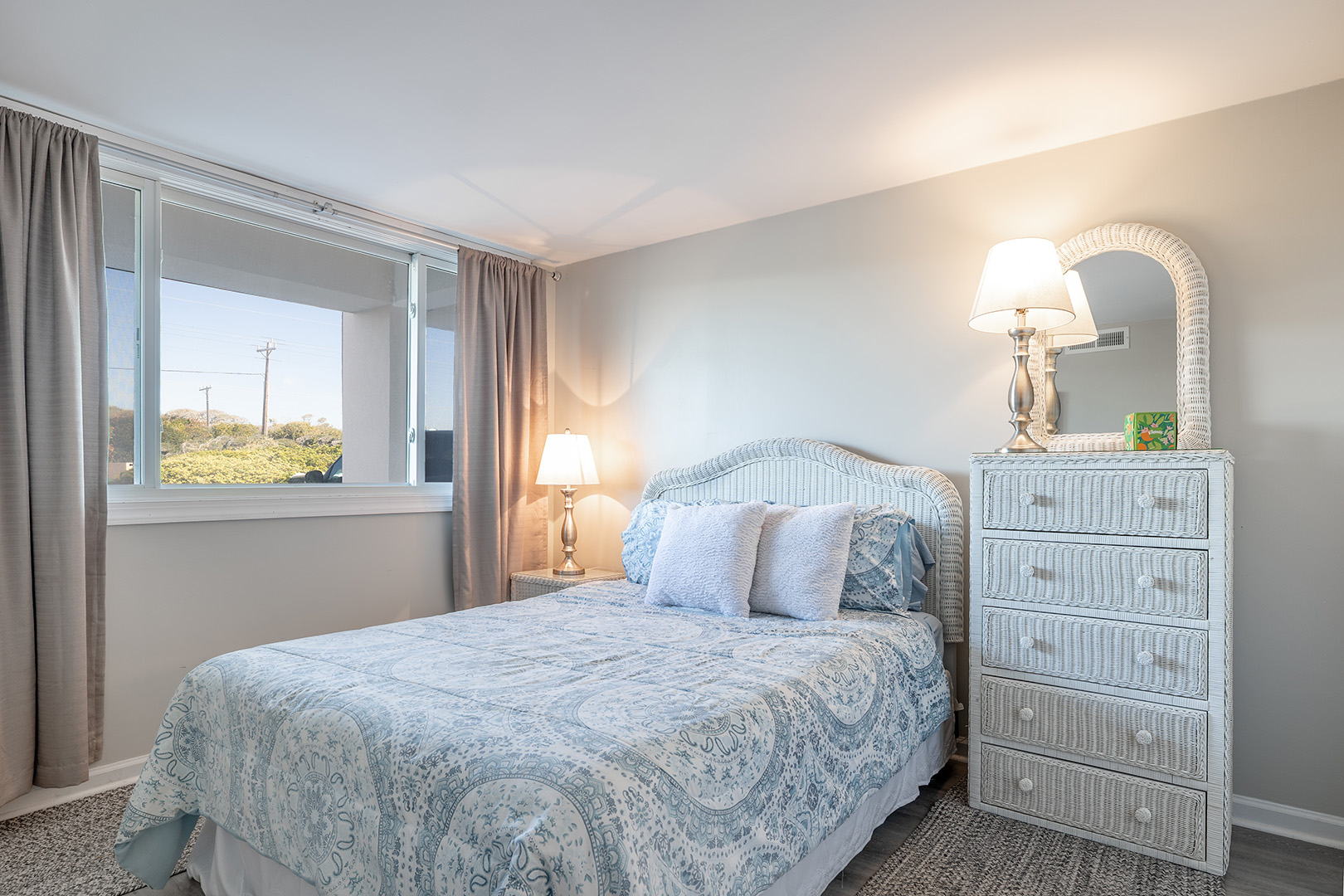 Beachwalk 105 is a First Floor Oceanfront Condo with 3 Bedrooms, 3 Baths. Bedroom #1 is a master suite with King Bed, Private Full Bath, and Deck Access, Bedroom #2 is a master suite with Queen Bed and Private Full Bath, and Bedroom #3 has 2 Twin Beds and a Private Full Bath.