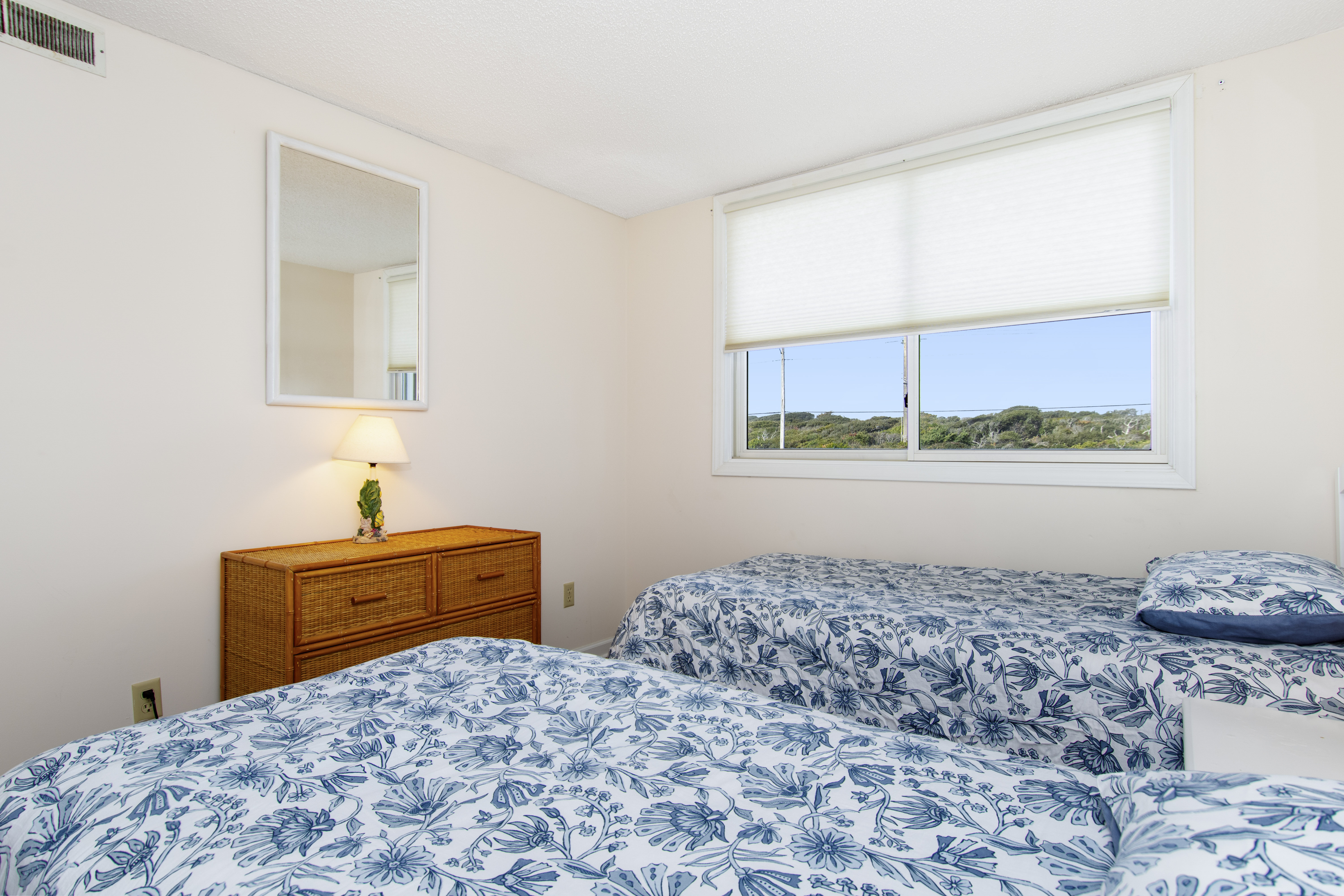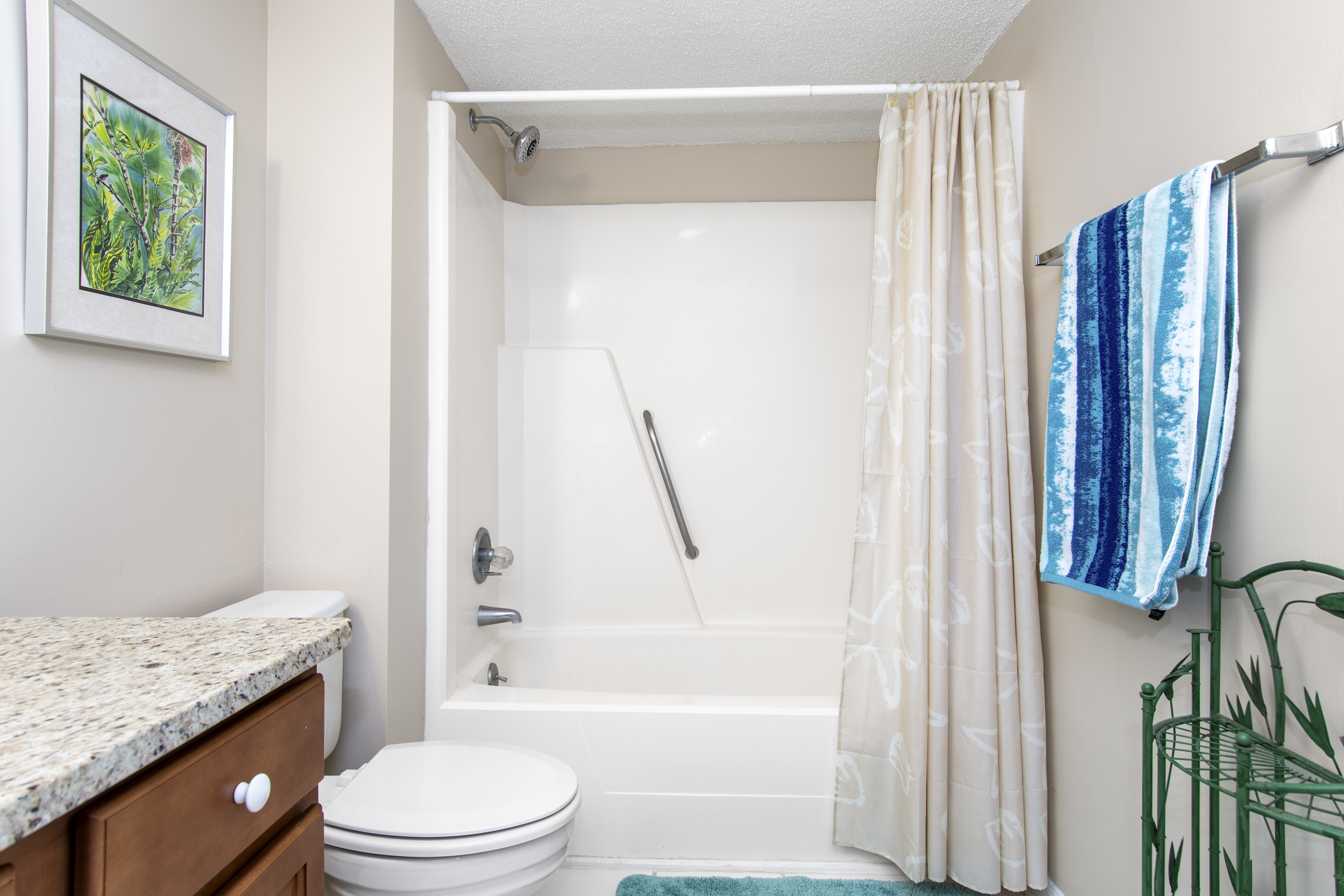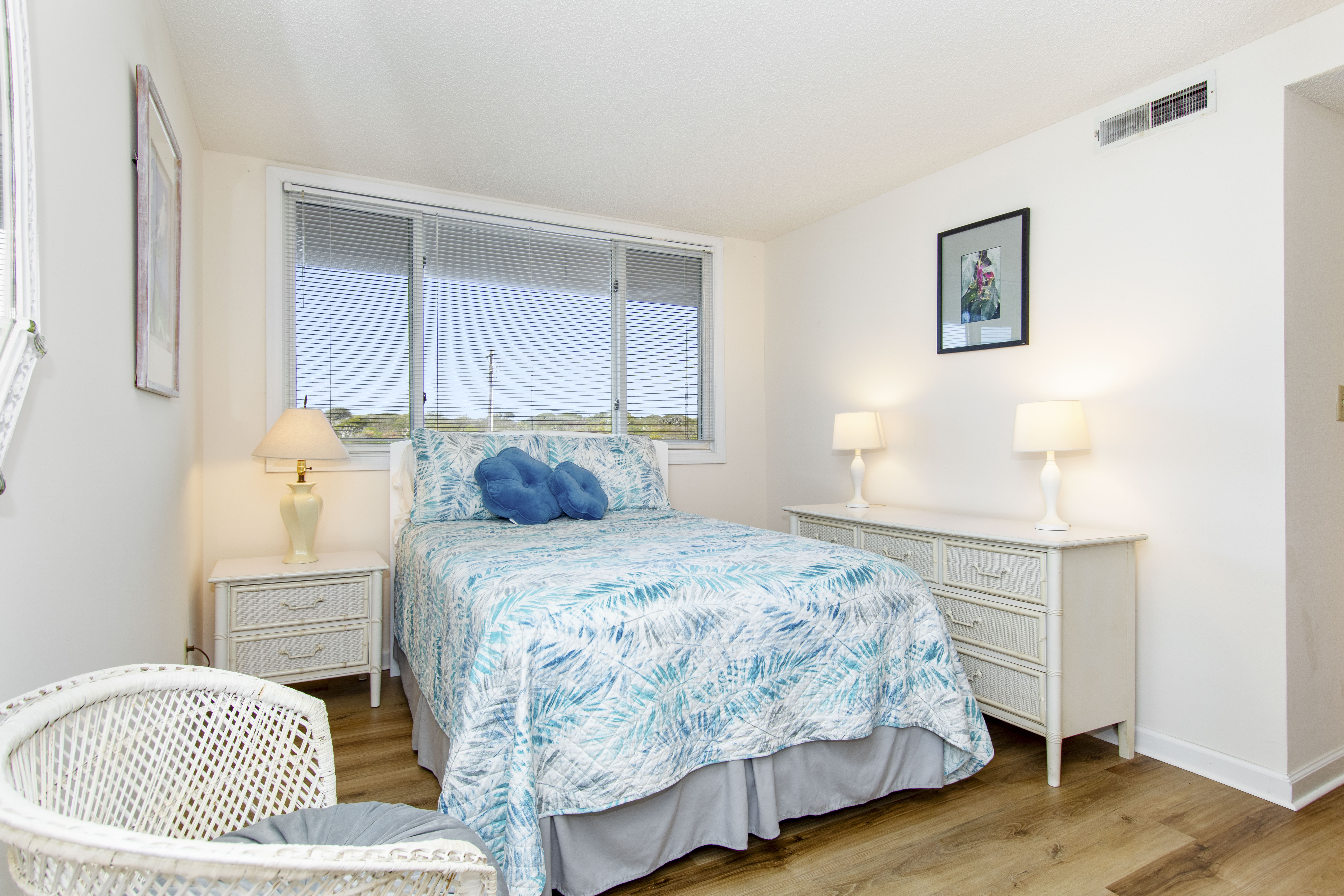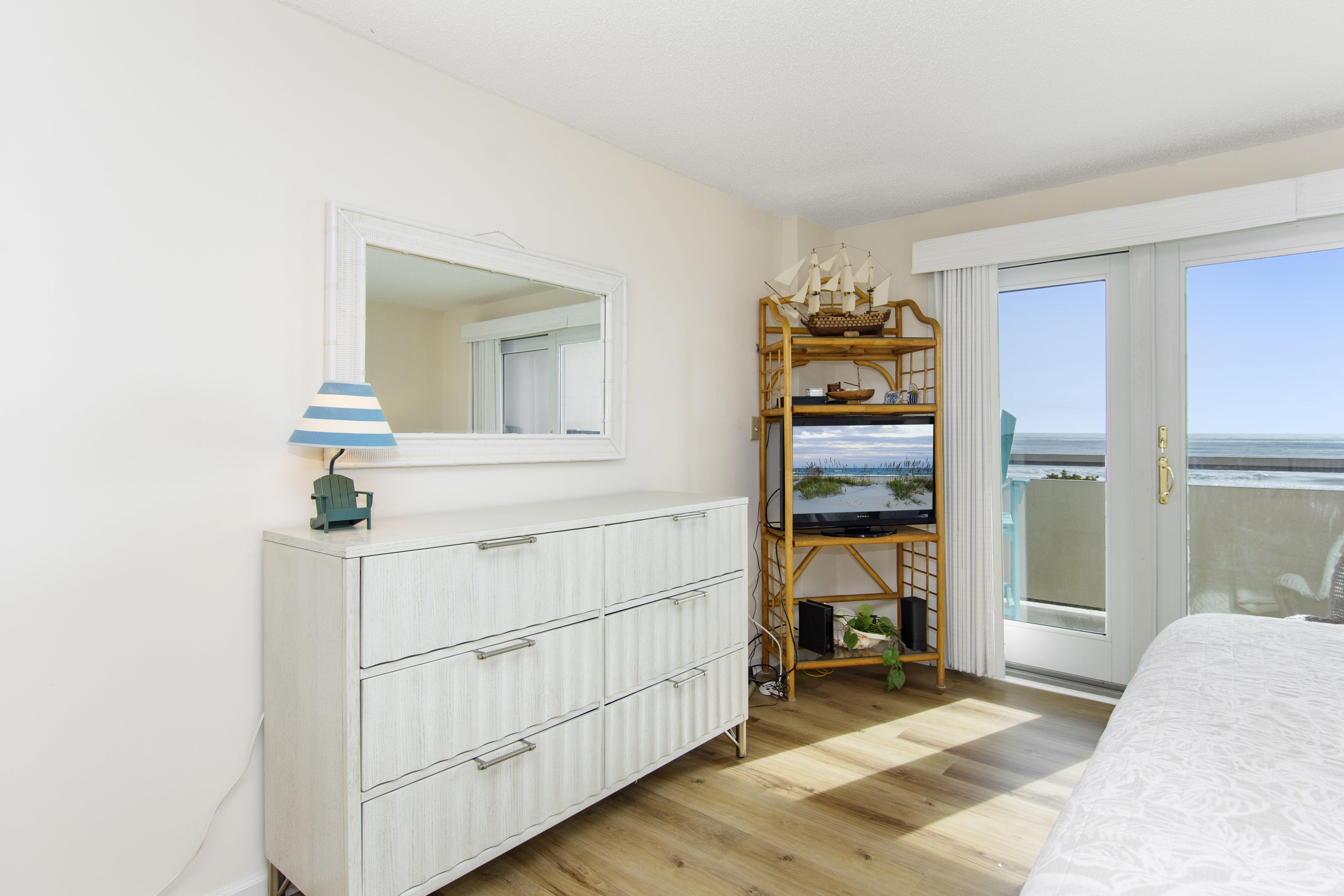 Beachwalk 202 is a bright and beachy, second floor, Oceanfront condo, surrounded by lush foliage. Bedroom #1 has a King Bed, TV, Balcony Access, and a Private Bathroom. Bedroom #2 has a Double Bed, with private bath. Bedroom #3 has 2 Twin Beds, and a Private Bathroom. High Speed Wireless Internet Access Provided!