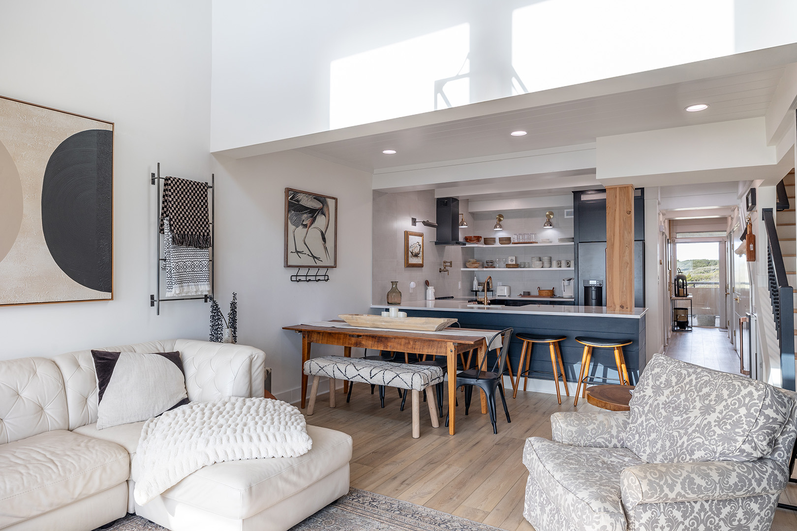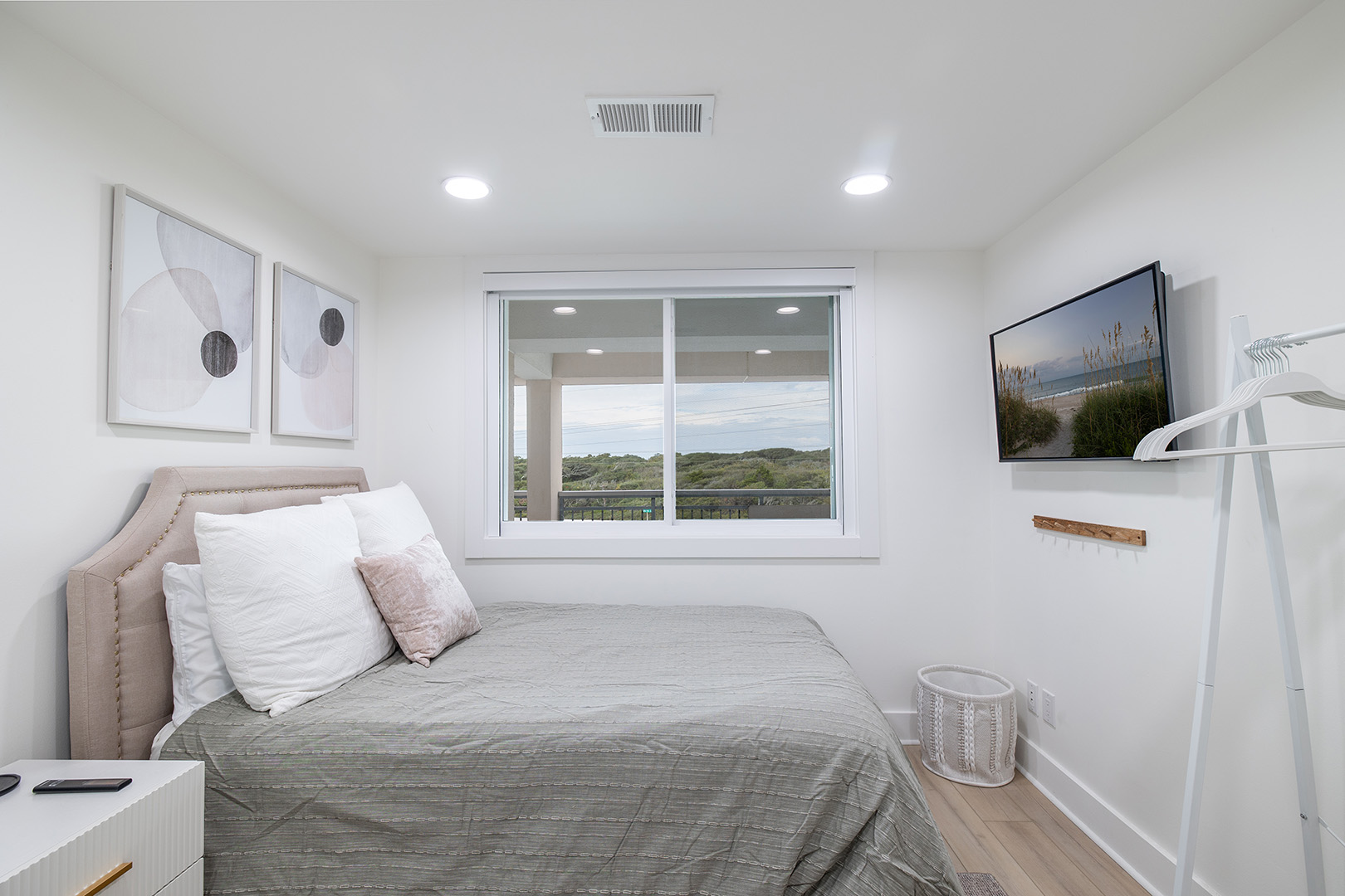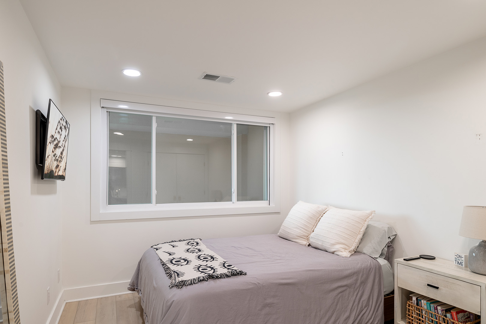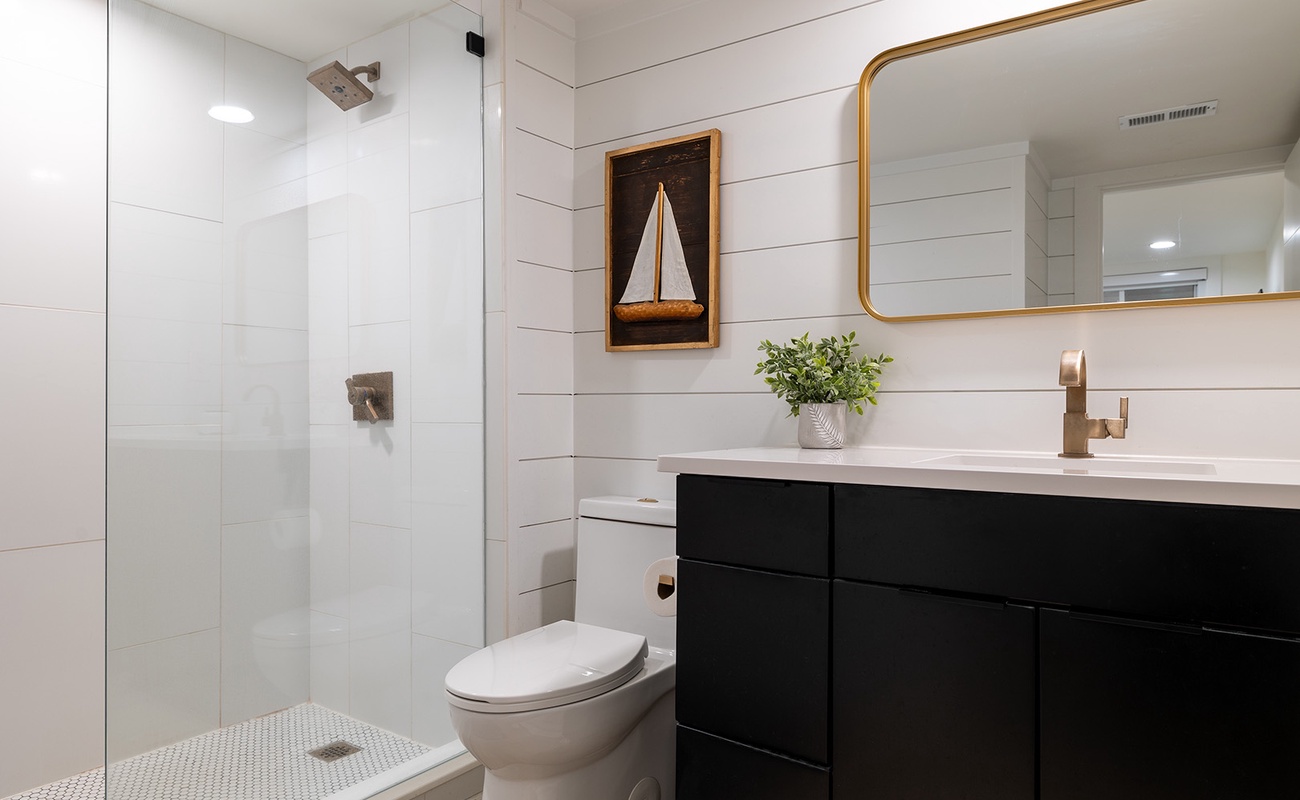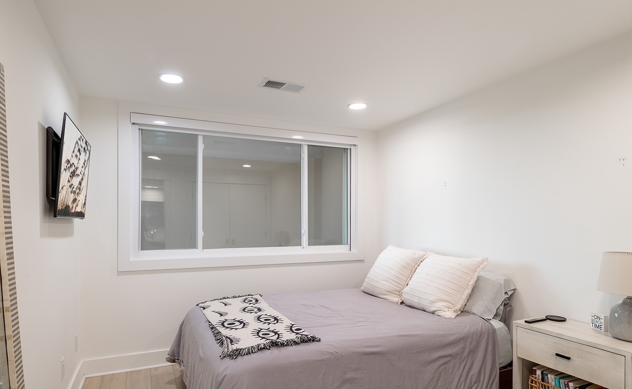 Lower Level: Living area with Smart TV including basic cable and access to streaming apps. Fully Equipped Gourmet Kitchen with everything you need for cooking up your seaside fare. Bedroom #1 has a King Bed, Smart TV, and a Private Bathroom. Bedroom #2 has a Queen Bed, Smart TV, and Private Bathroom. Bedroom #3 has a Double Bed, Smart TV, and access to the Shared Bathroom this level.