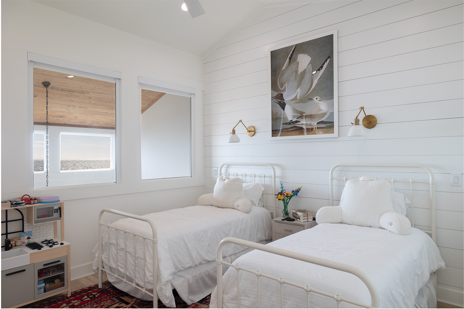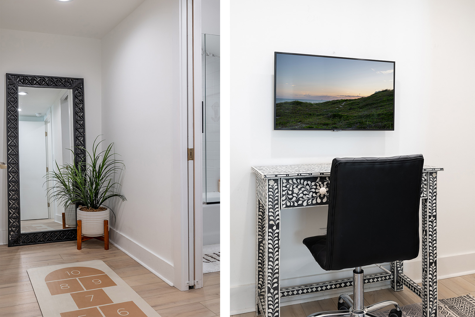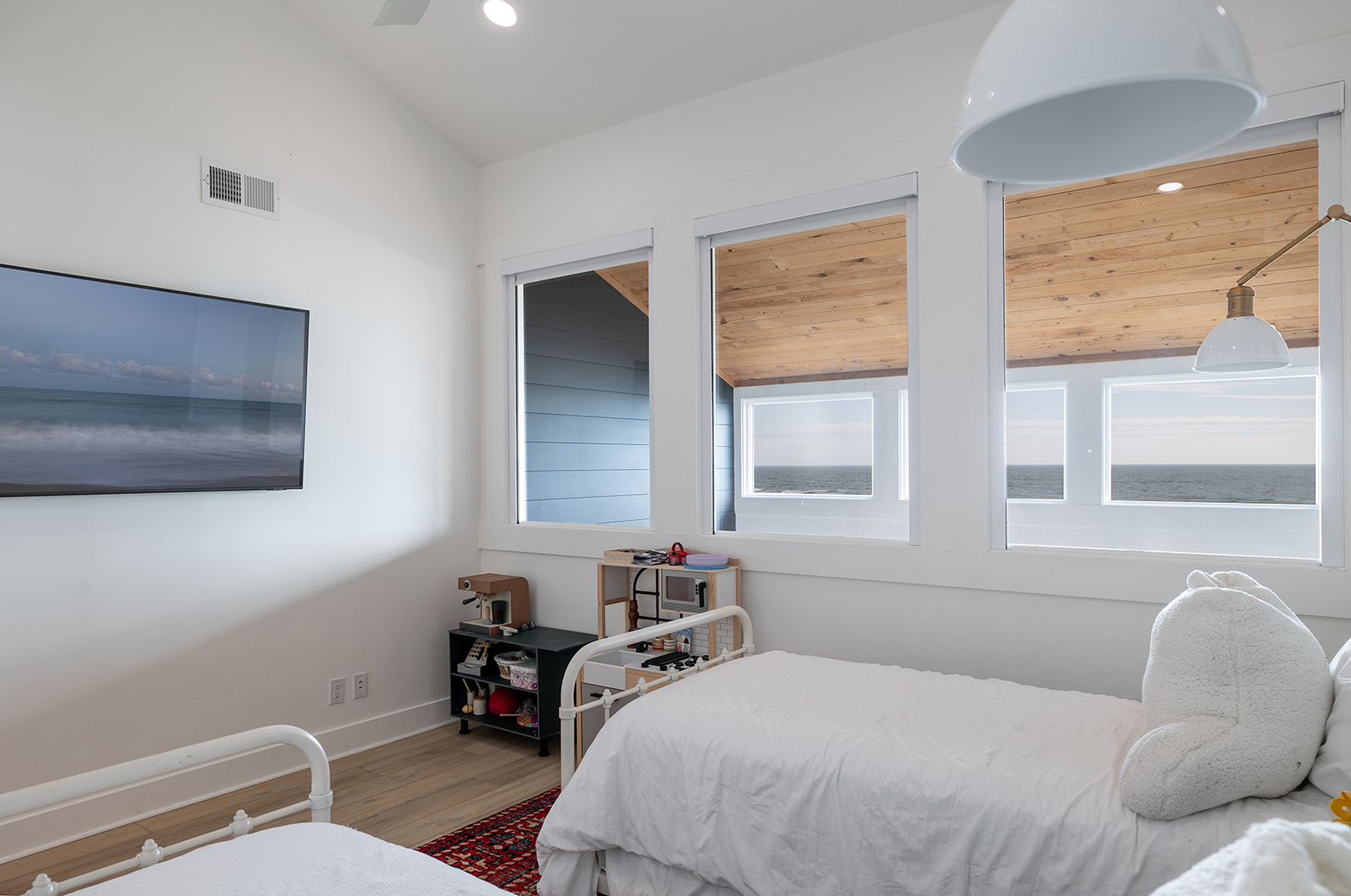 Upper Level: Features a designated Desk area. Bedroom #4 has 2 Twin Beds, Smart TV, and Private Bathroom.