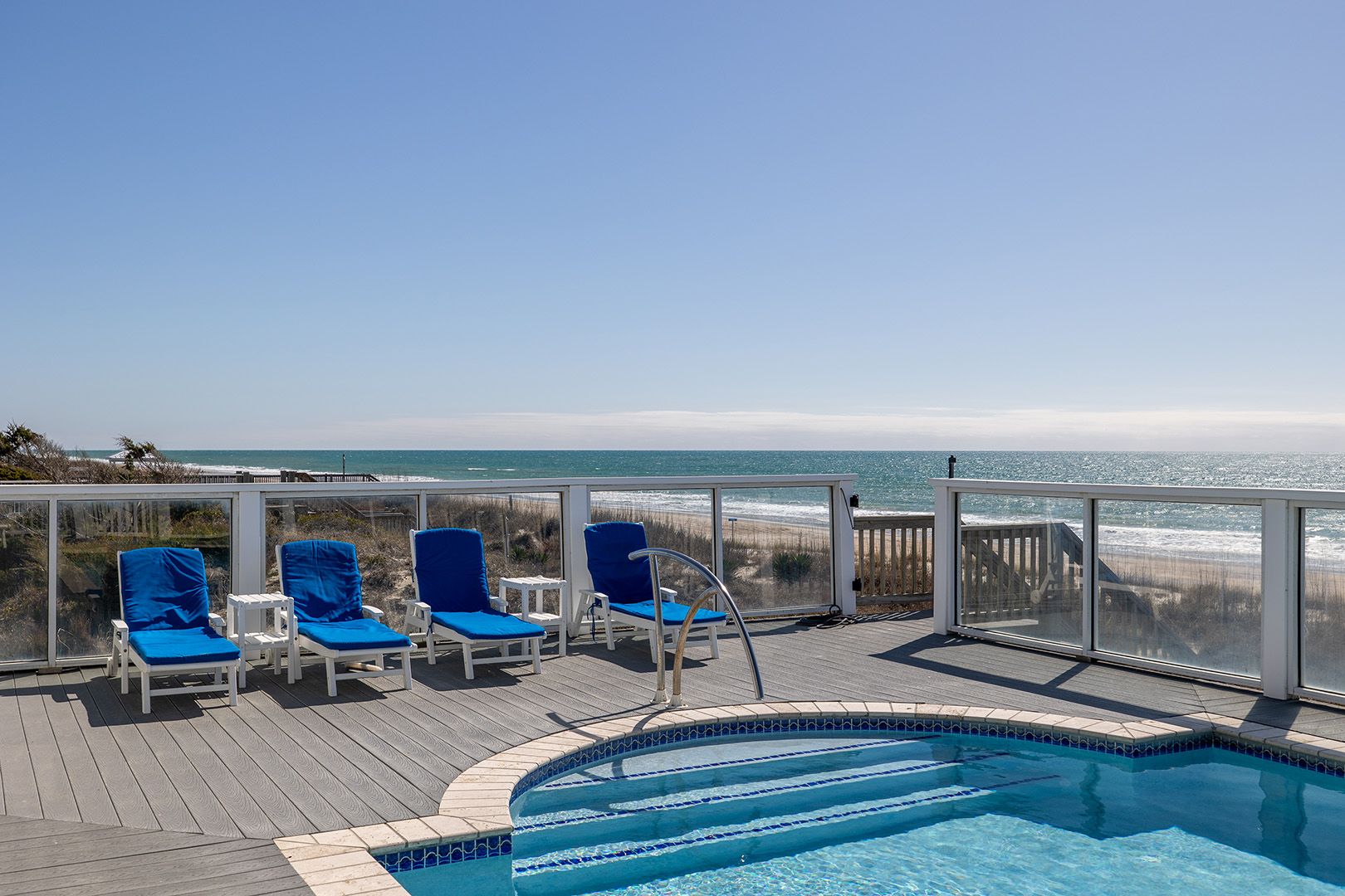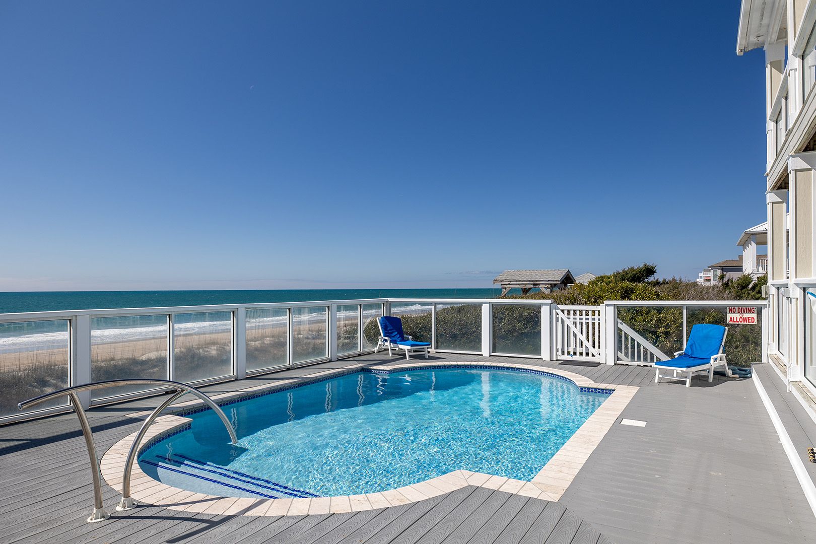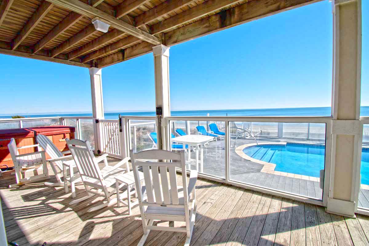 Blue Dolphin is an Oceanfront Home on three living levels with a Private Swimming Pool and Hot Tub! Water Softener throughout home and Water purification system in Kitchen! Enjoy the High Speed Wireless Internet Access with your own computer or device!