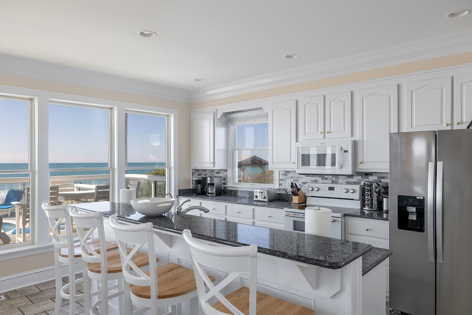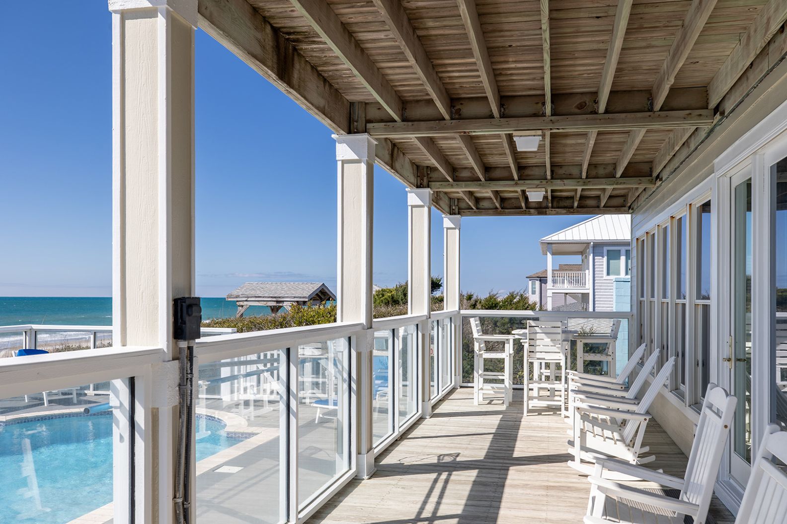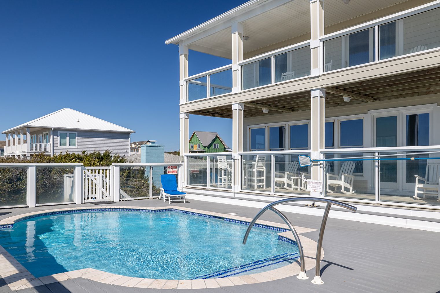 Blue Dolphin is an Oceanfront Home on three living levels with a Private Swimming Pool and Hot Tub! Water Softener throughout home and Water purification system in Kitchen! Enjoy the High Speed Wireless Internet Access with your own computer or device!