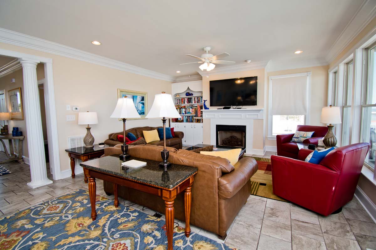 Level Three: Oceanfront Bedroom #3 has a King Bed, a Full-Bath & access to a Covered Deck. Oceanfront Bedroom #4 has a Queen Bed, a Full-Bath and access to a Covered Deck. Oceanfront Bedroom #5 has a King Bed and access to a Covered Deck. Bedroom #6 has 2 Twin Beds. Bedroom #7 has a Queen Bed. There is a Full Bath in the Hall.