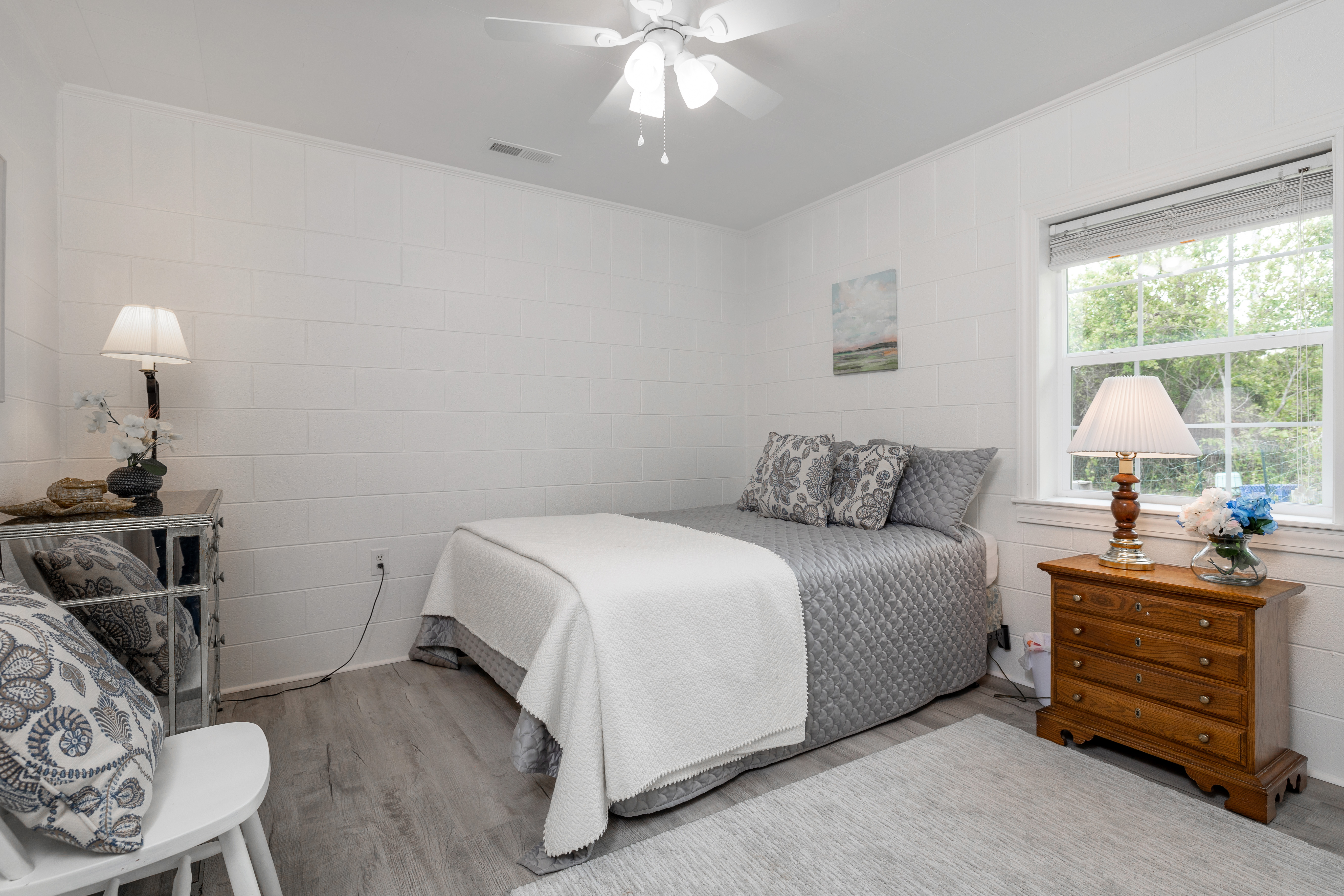 Central Heat and Air, Ceiling Fans. Living Area with Roku TV giving access to streaming apps. High Speed Wireless Internet. Fully Equipped Kitchen with Coffee Maker, Oven, Refrigerator, Microwave, and Blender.