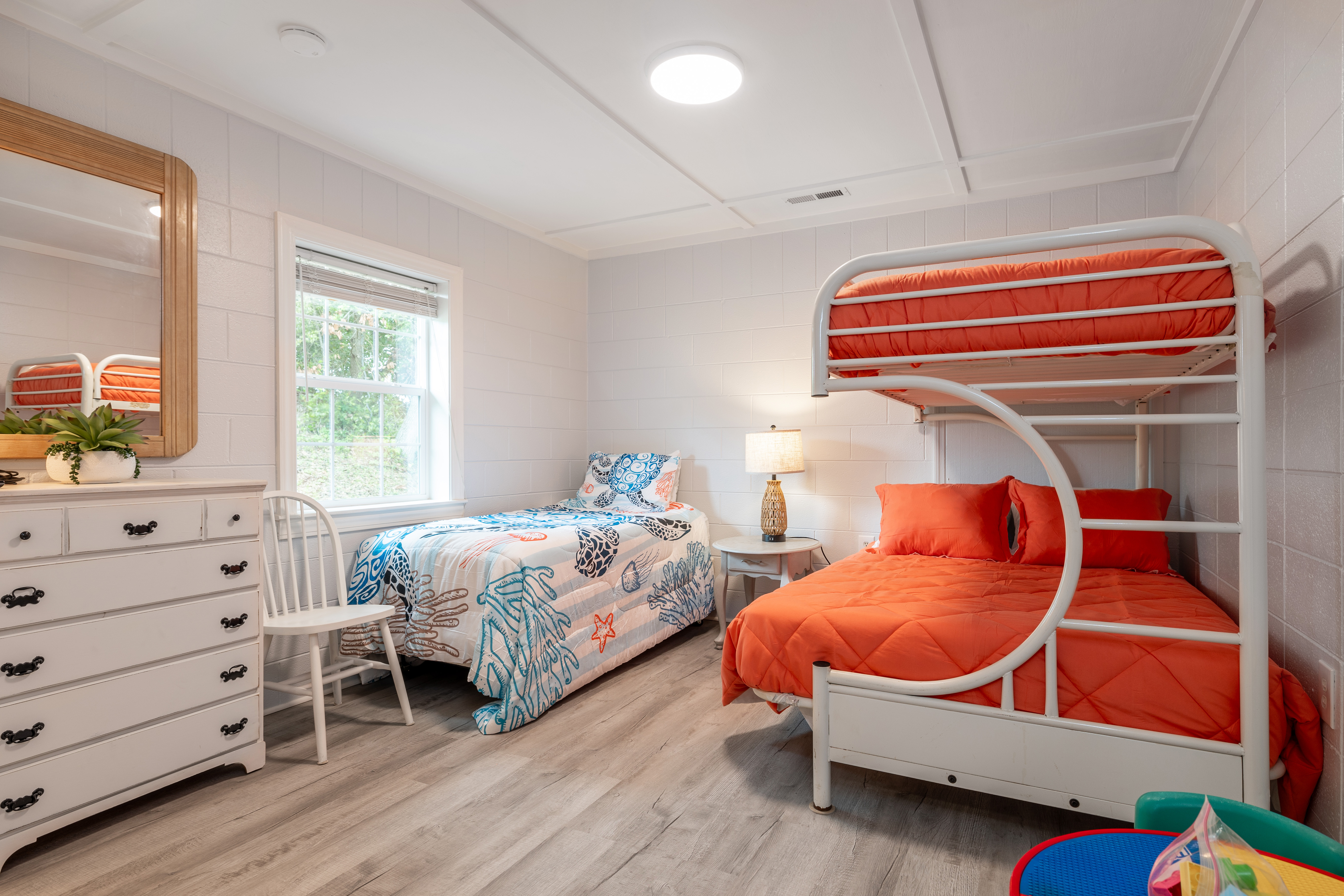 Bedroom #1 offers a King Bed, Bedroom #2 offers a Queen Bed, and Bedroom #3 offers a Twin Bed + Twin/Double Bunk Bed.