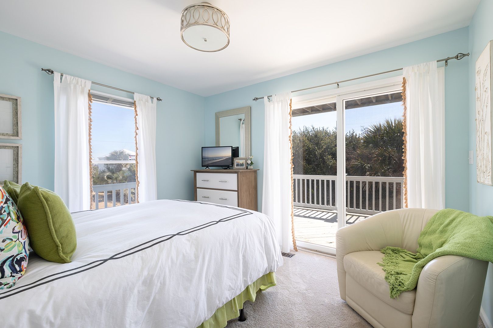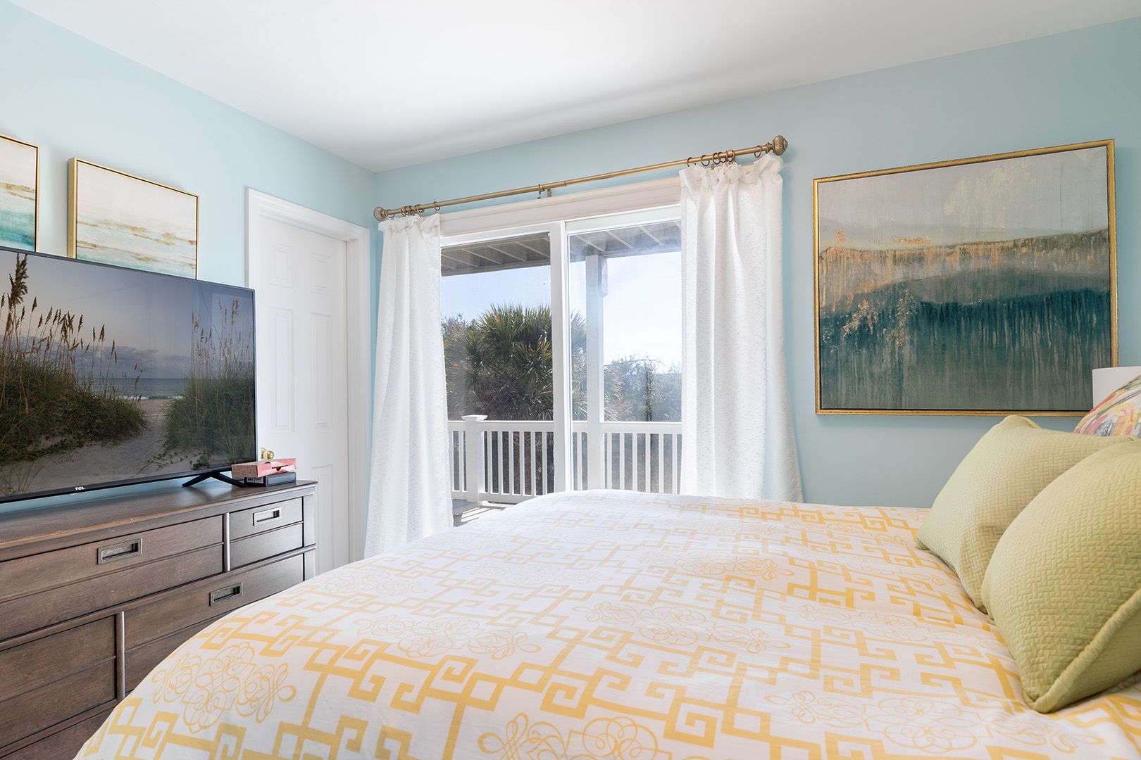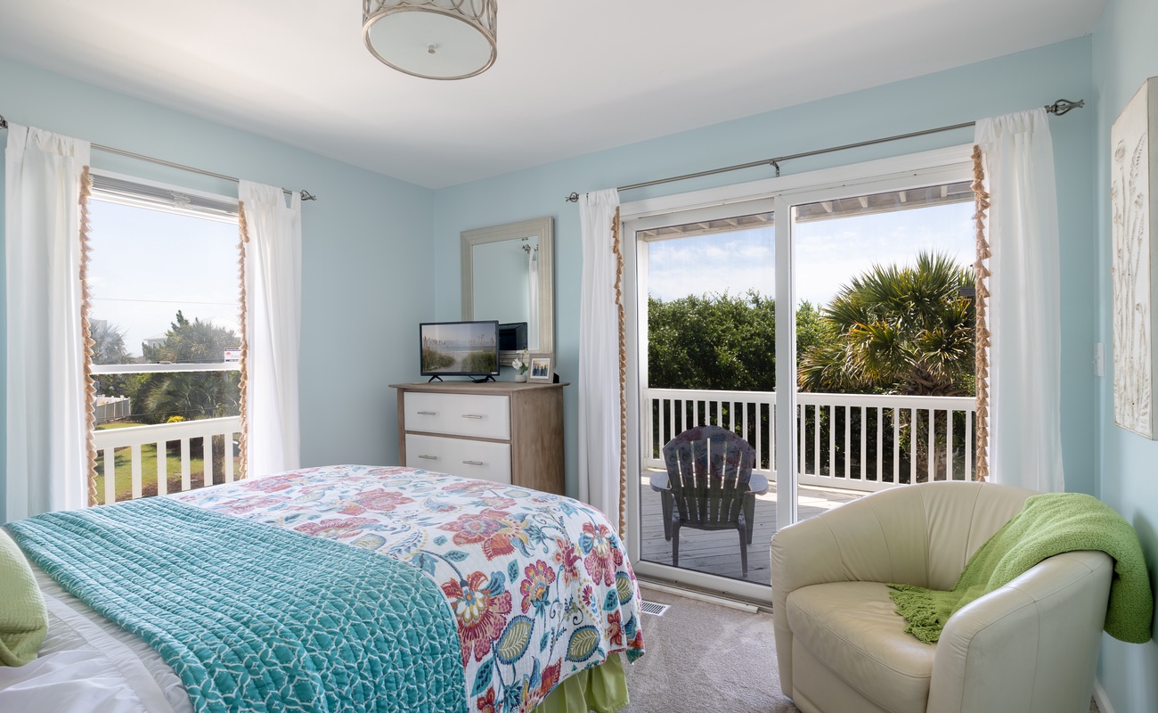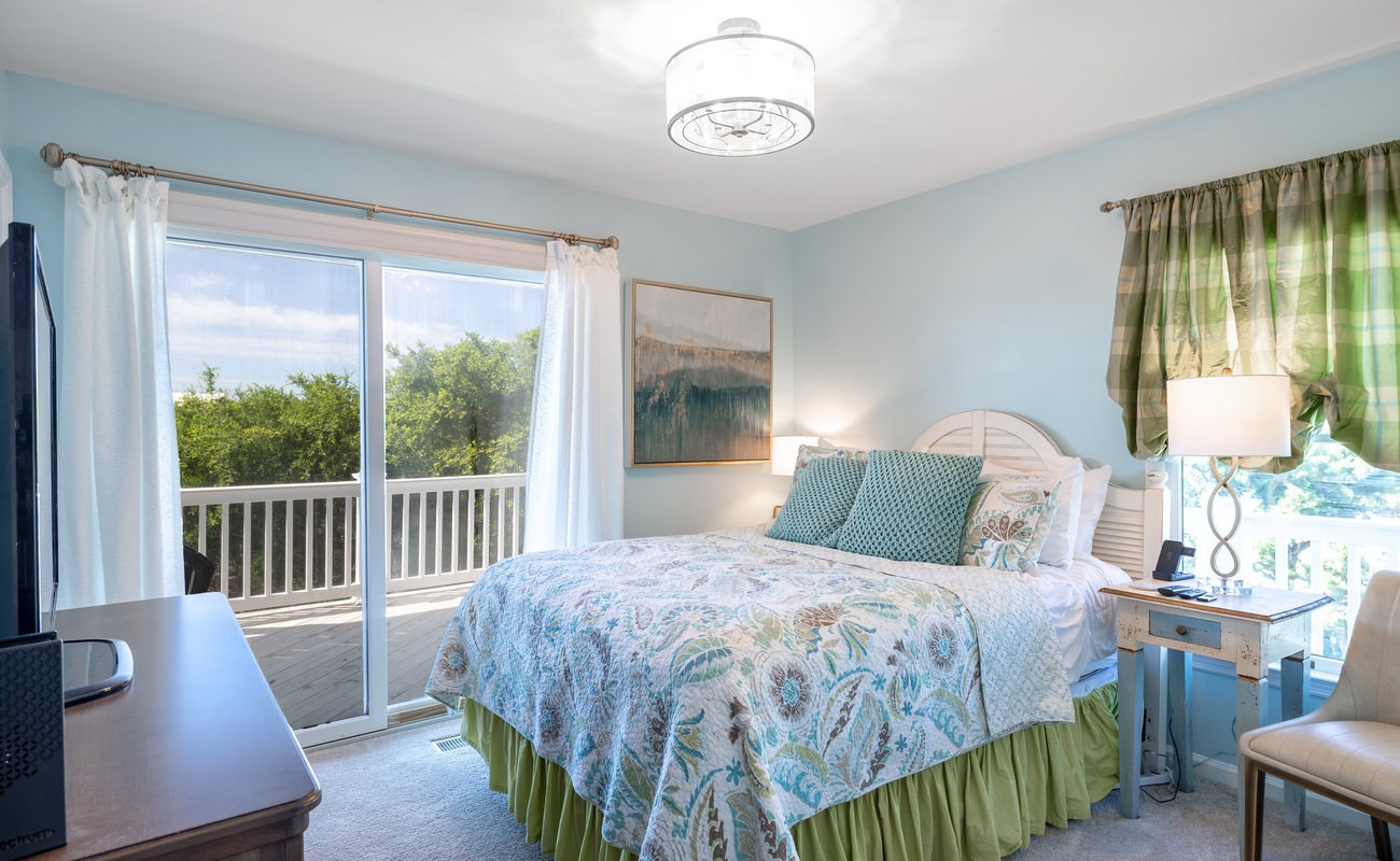 Floor #2 - Bedroom #1 Attached Bathroom Queen - TV - Deck Access - Shared Bath |