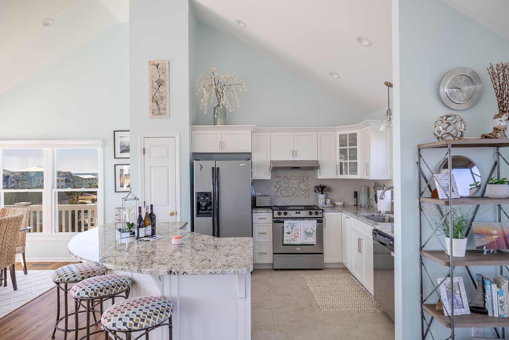 Floor 3: Living room with Smart TV, Apple TV. Fully-equipped cook's kitchen with island, stools, dining table, wine refrigerator, and pantry closet. Gas grill located on back deck, located off the kitchen. More Games, books and Wi-Fi router located on this floor.