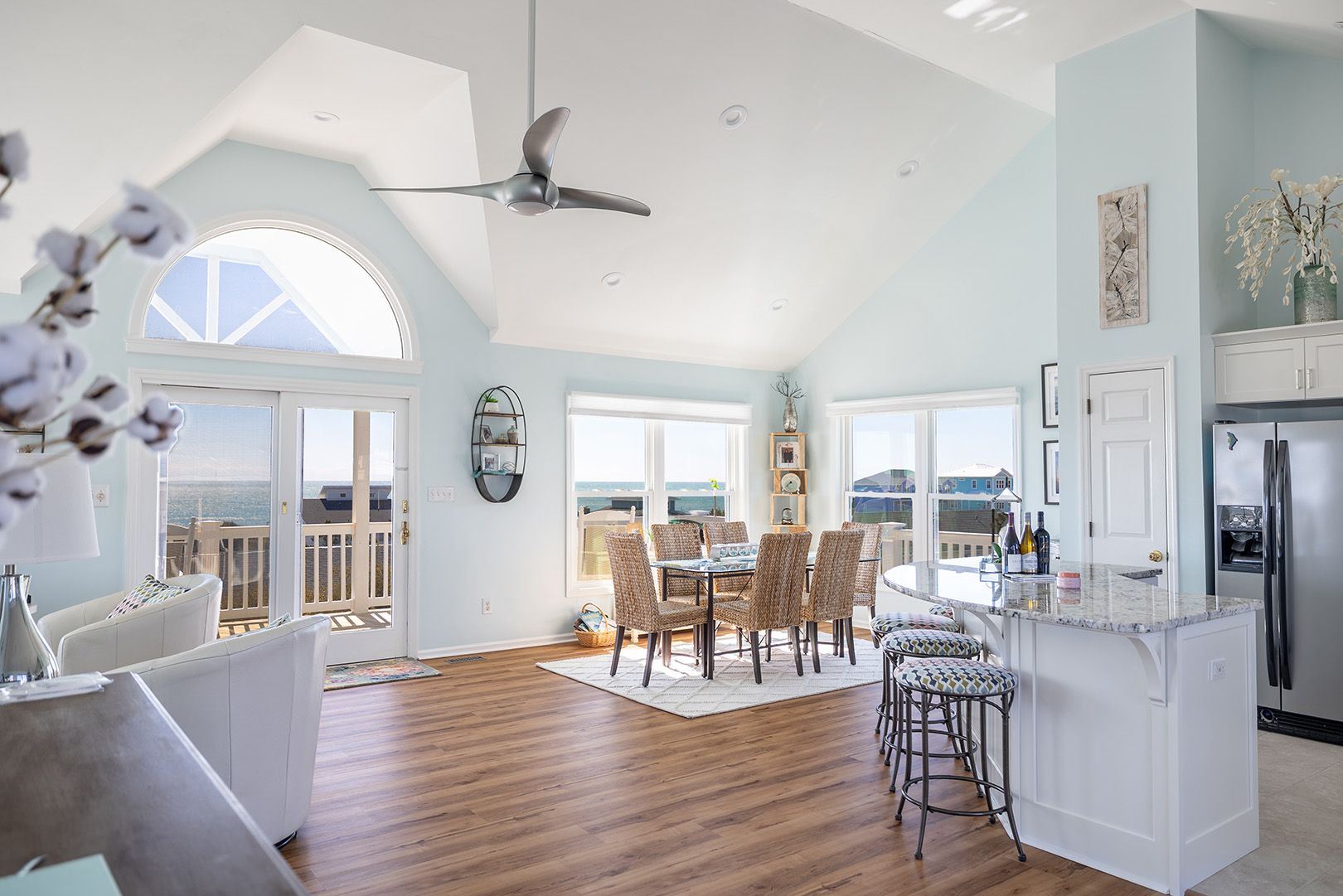 Bogue's Retreat is an Oceanview Home with 4 Bedrooms, 3 Bathrooms and 1 Half Bathroom. Enjoy the beautiful ocean scenery while taking in the smells of the fresh salt air from the covered outdoor decks! The Lawn at this property is perfect for outdoor games. Pool basketball available. There are also other Games and books available at the property and it is just a two minute walk to the beach (beach access directly in front of the house in front of us).