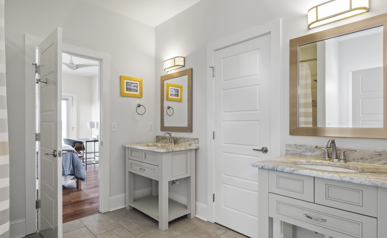 Floor #2 - Bedroom #1 Attached Bathroom Queen Bed - Deck Access - Attached Shared Bath |