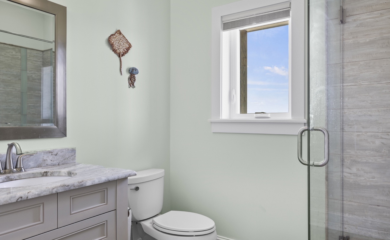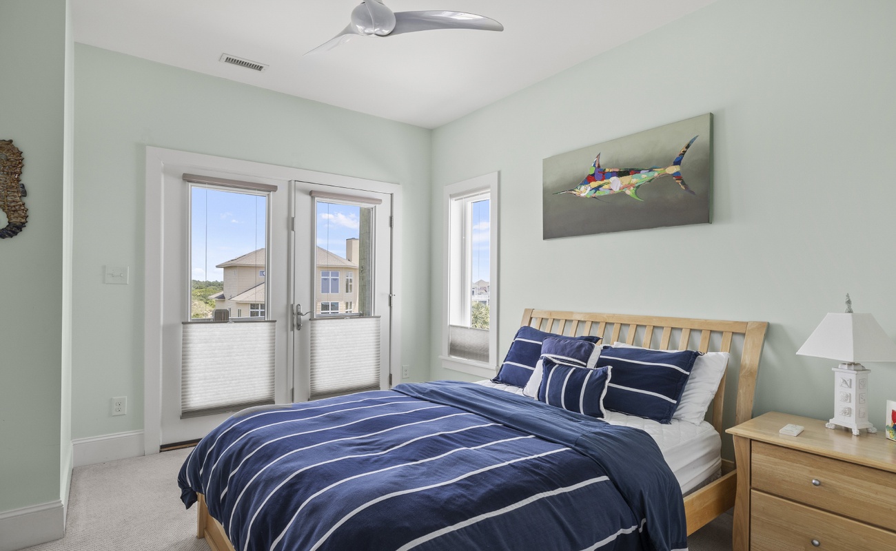 Floor #2: Bedroom #2 - Queen Bed, Deck Access, Ocean Views, and Shared Bath