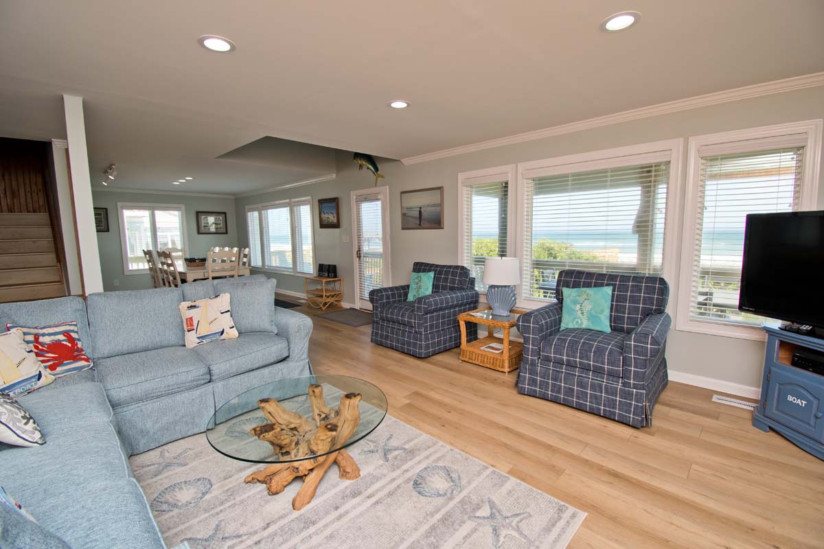 Inside, Breaking Rollers is designed for laid-back beach living. Kick off your flip-flops in the spacious living area on the first level and settle in for family game nights or movie marathons. The fully equipped kitchen makes whipping up beach snacks or gourmet meals a breeze. Plus, when you're ready to catch your favorite shows, there's 4 TVs throughout the house equipped with cable & streaming!
