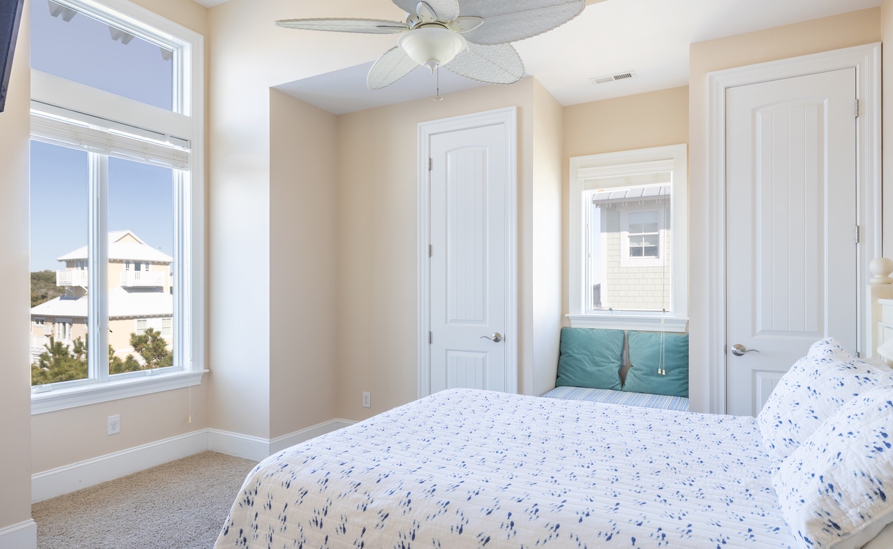 Floor #3 - Bedroom #5 Attached Bathroom Queen Bed, TV, Deck Access, Attached Bath |