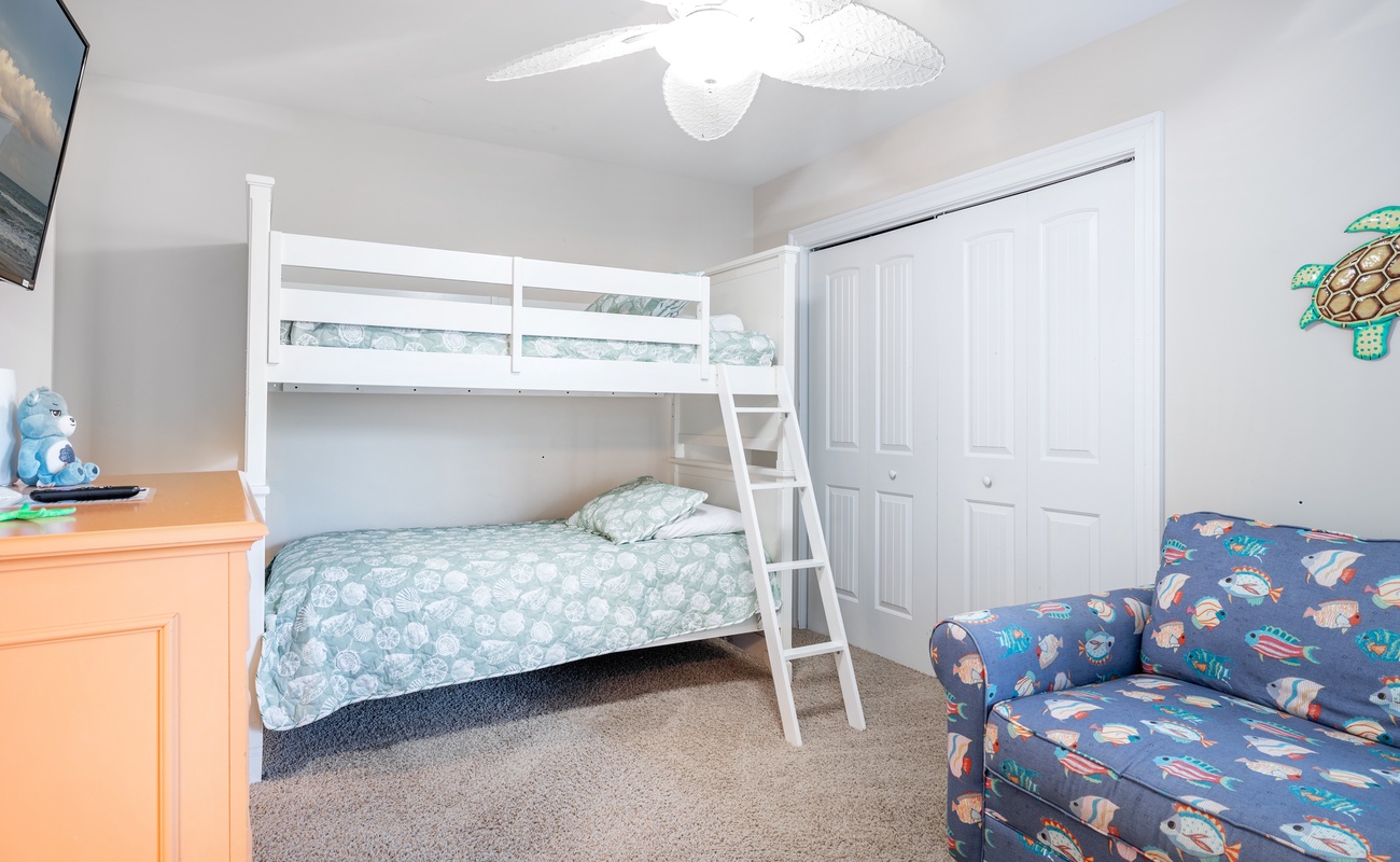 Floor #1 - Bedroom #2 Attached Bathroom Twin Bunk Beds, TV, Attached Bath, Sofa |