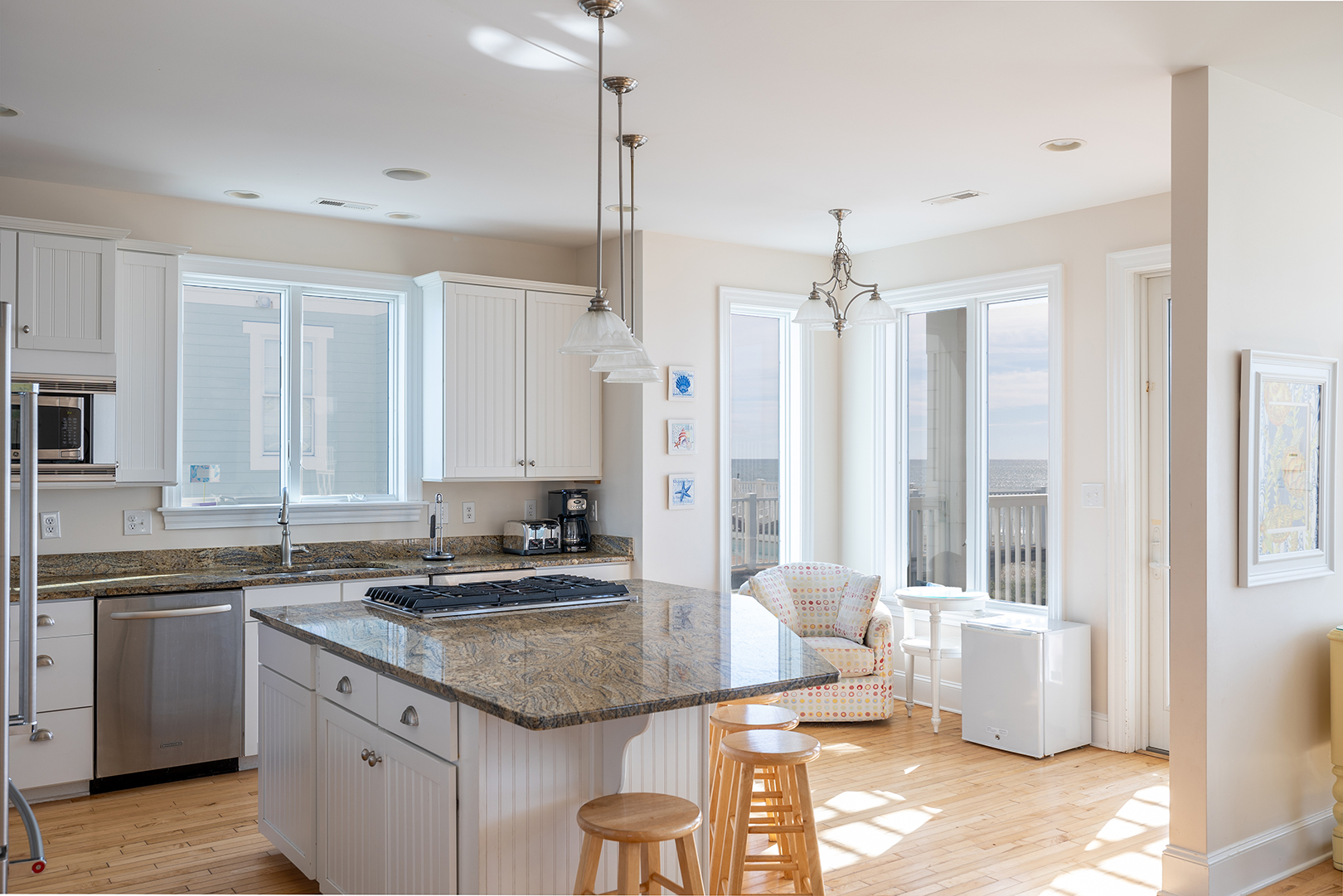 Amenities include: Highspeed Wireless Internet; Private Elevator; 9 Flat Smart TVs, Netflix, Hulu, Amazon Prime Video, Roku, Indoor Stereo System; Fully Equipped Gourmet Kitchen with Drip Coffee Maker, Keurig Coffee Maker, Oven, Double Oven, Refrigerator with Attached Ice Maker, Microwave, 2 Dishwashers, Blender; Ceiling Fans; Card/Poker Table; Interior Washer/Dryer; Covered Decks, Deck Furniture, Outdoor Decks, Observation Deck; Garage; Enclosed Hot/Cold Outdoor Shower; Gas Grill; Private Pool; Private Beach Walkway; Gated Community, Community Outdoor Showers, Community Outdoor Pool Access.