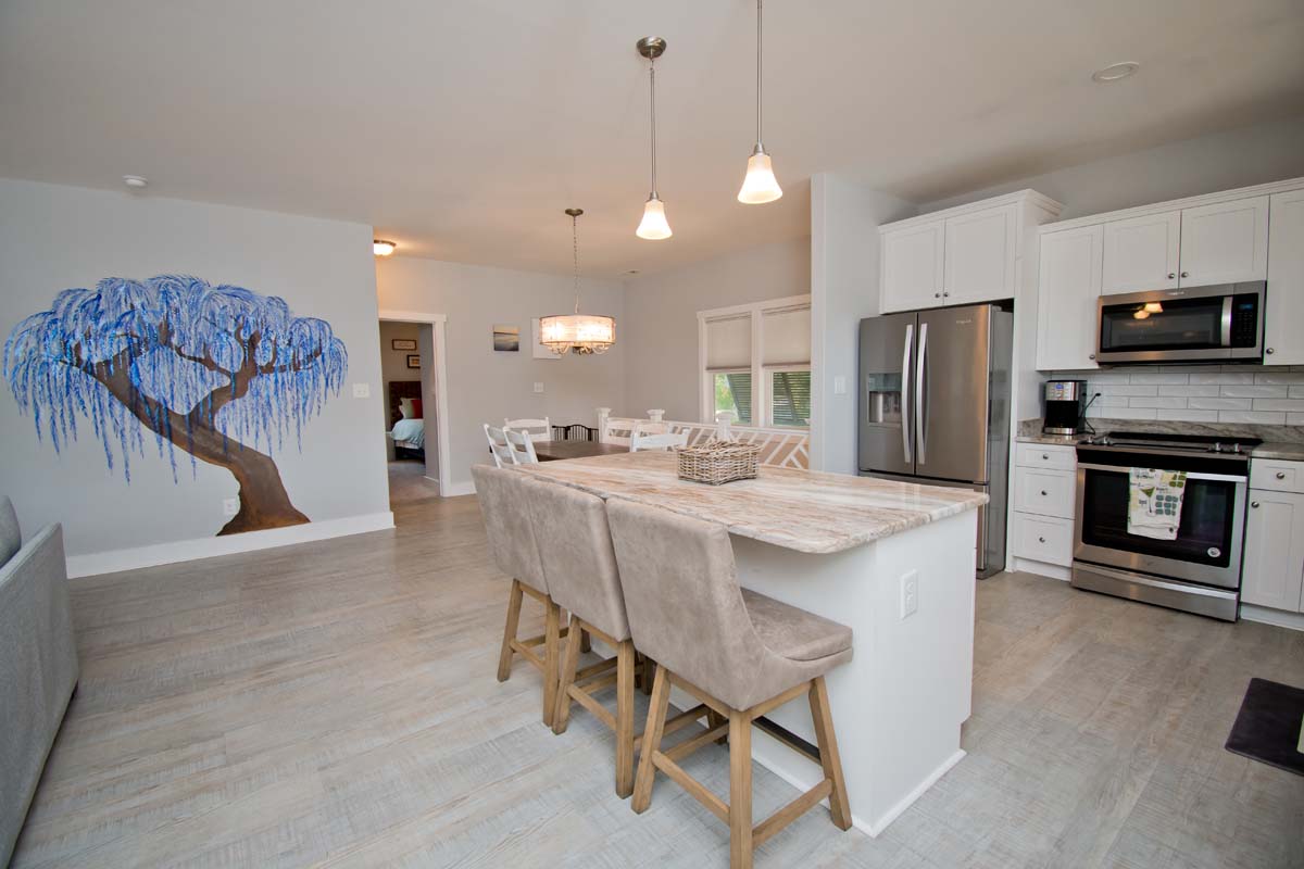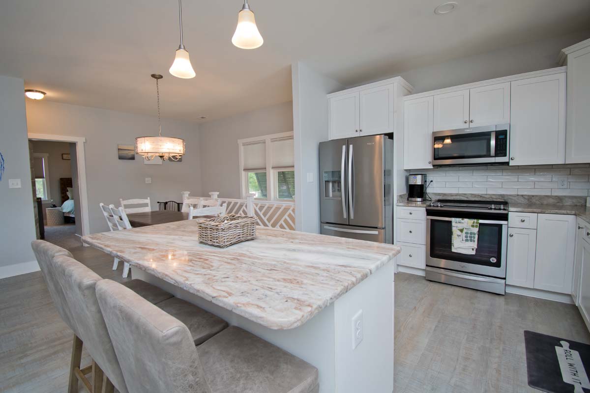 The fully-equipped gourmet kitchen has everything you could possibly need from appliances that include an oven, refrigerator, microwave, and dishwasher, to convenient extras like a Keurig coffee maker, a slow cooker, and a blender!