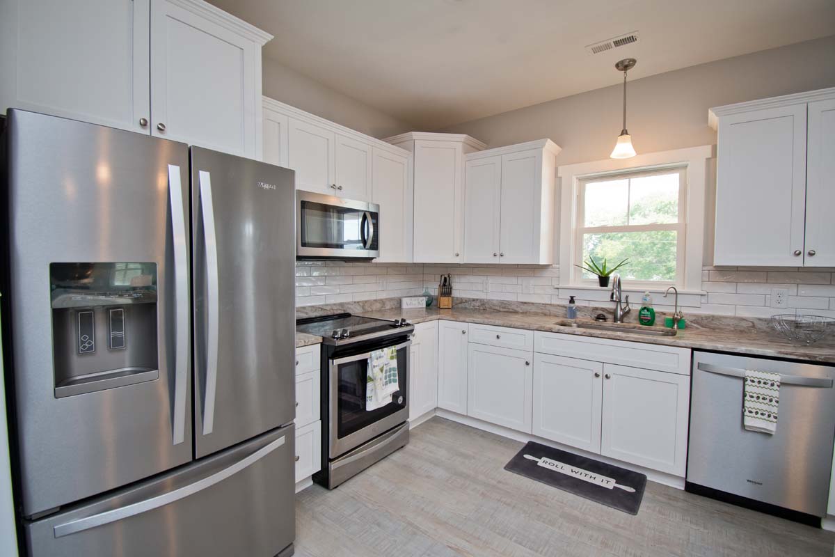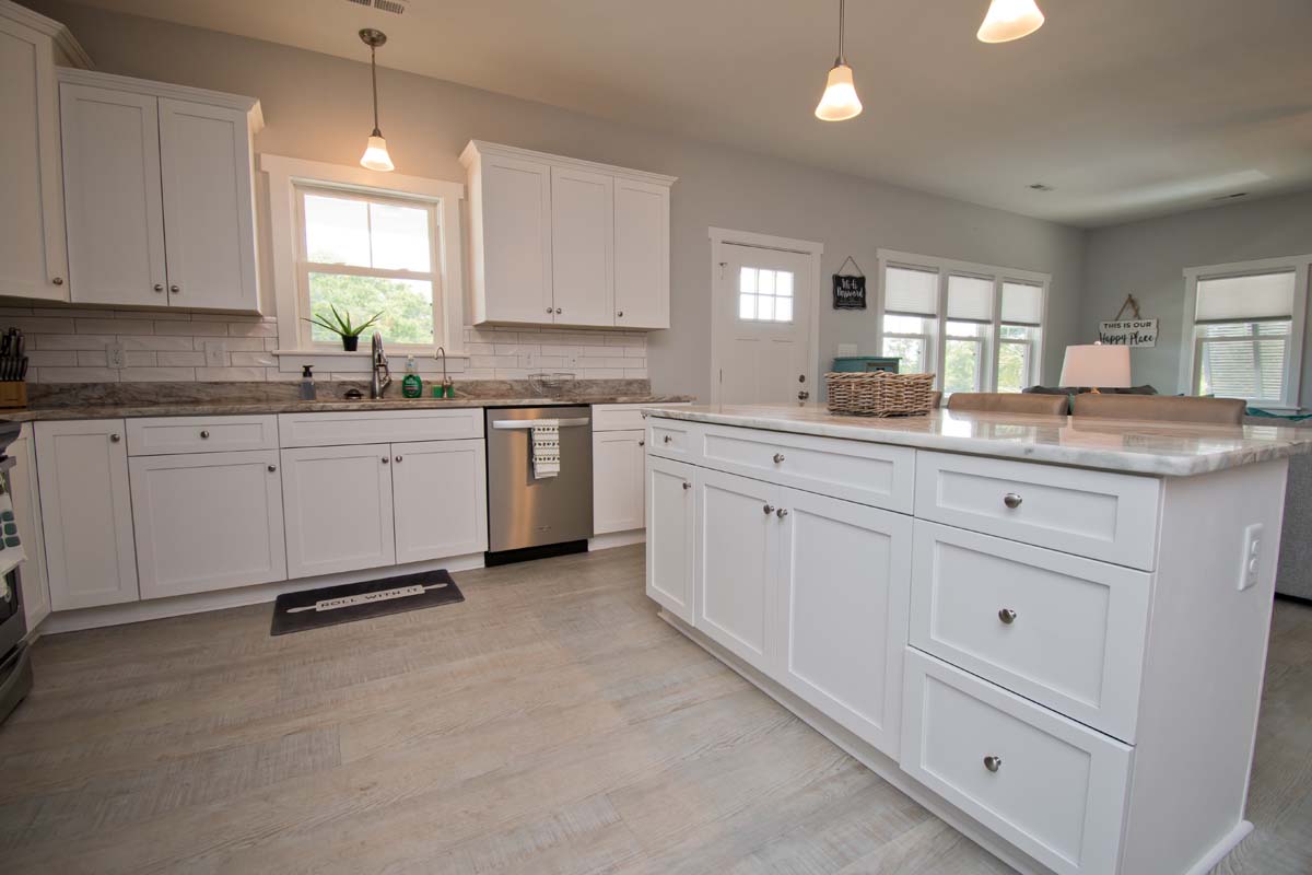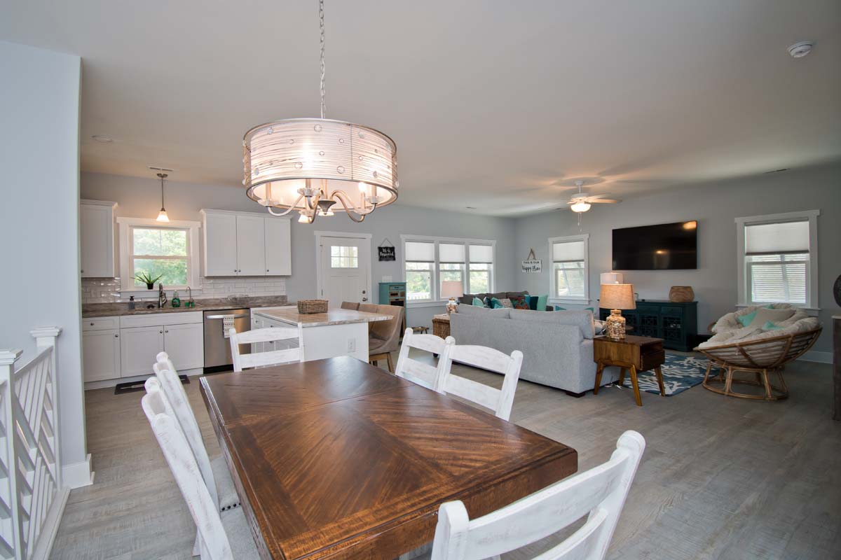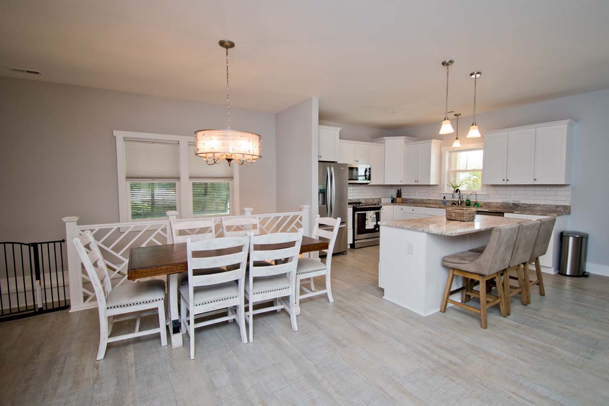 Level One: This floor of the home houses the main living area with a TV, access to a half bathroom, and deck access as well as the kitchen and dining area. Bedroom #2 has a queen bed, a TV, and its own private bathroom. Bedroom #3 has a king bed, a TV, and a private bathroom.