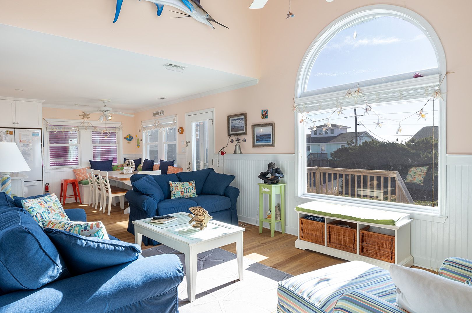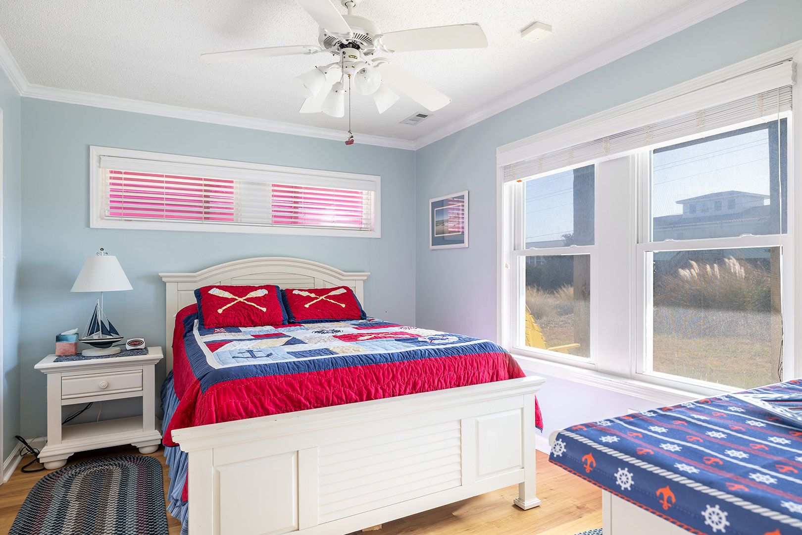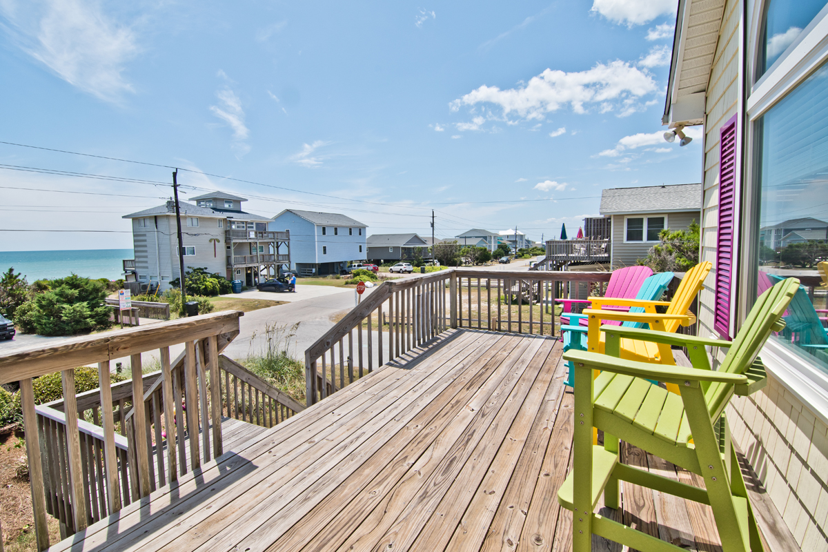 Cardinal's Landing is a gorgeous 4-Bedroom, 3-Bath Almost Oceanfront home. Walk out the front door three steps from this home and you will be at the beach! This beautifully decorated home offers unforgettable views of the ocean. You can either enjoy these views sitting on the screened- in porch or off the private balcony from the upstairs bedroom. While visiting with your family or friends you can look out the array of windows from the Living Room overlooking the Atlantic Ocean. This home offers the perfect setting for a family vacation!