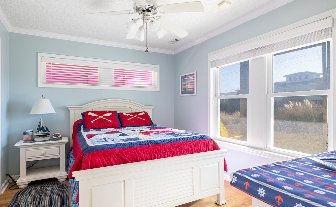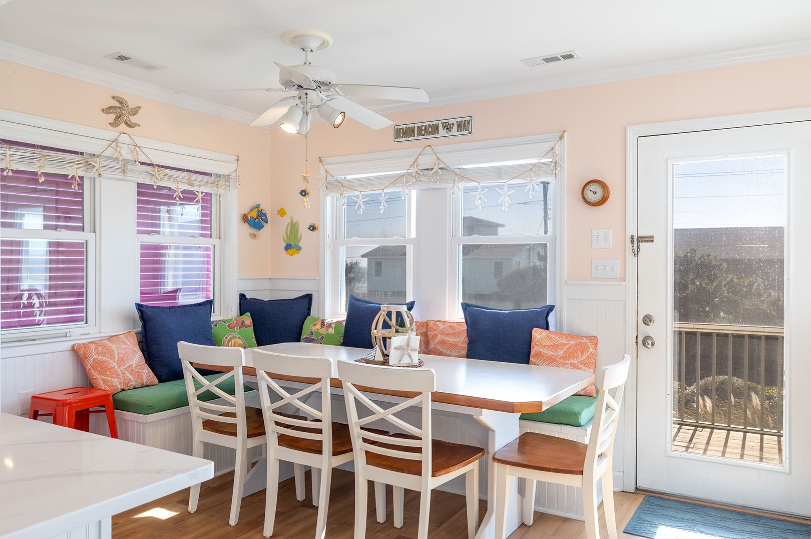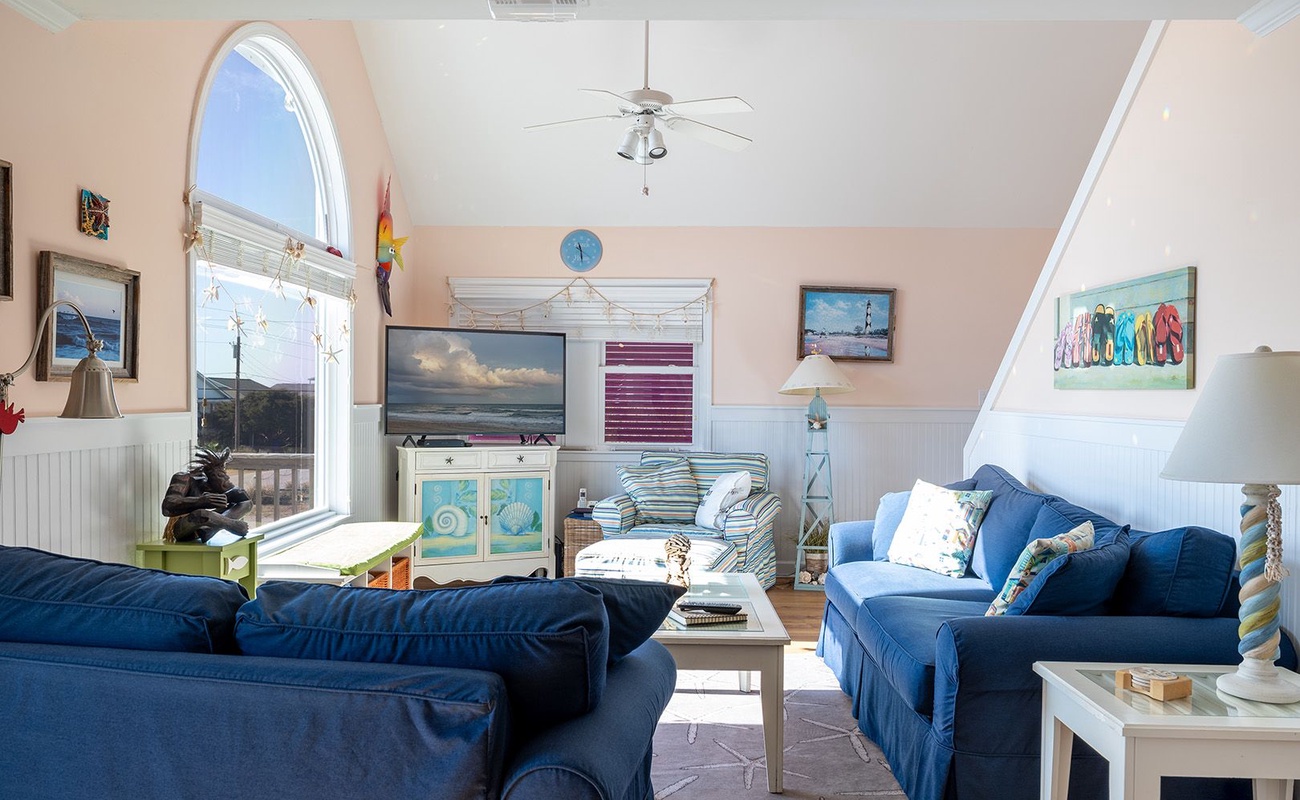 Cardinal's Landing is a gorgeous 4-Bedroom, 3-Bath Almost Oceanfront home. Walk out the front door three steps from this home and you will be at the beach! This beautifully decorated home offers unforgettable views of the ocean. You can either enjoy these views sitting on the screened- in porch or off the private balcony from the upstairs bedroom. While visiting with your family or friends you can look out the array of windows from the Living Room overlooking the Atlantic Ocean. This home offers the perfect setting for a family vacation!
